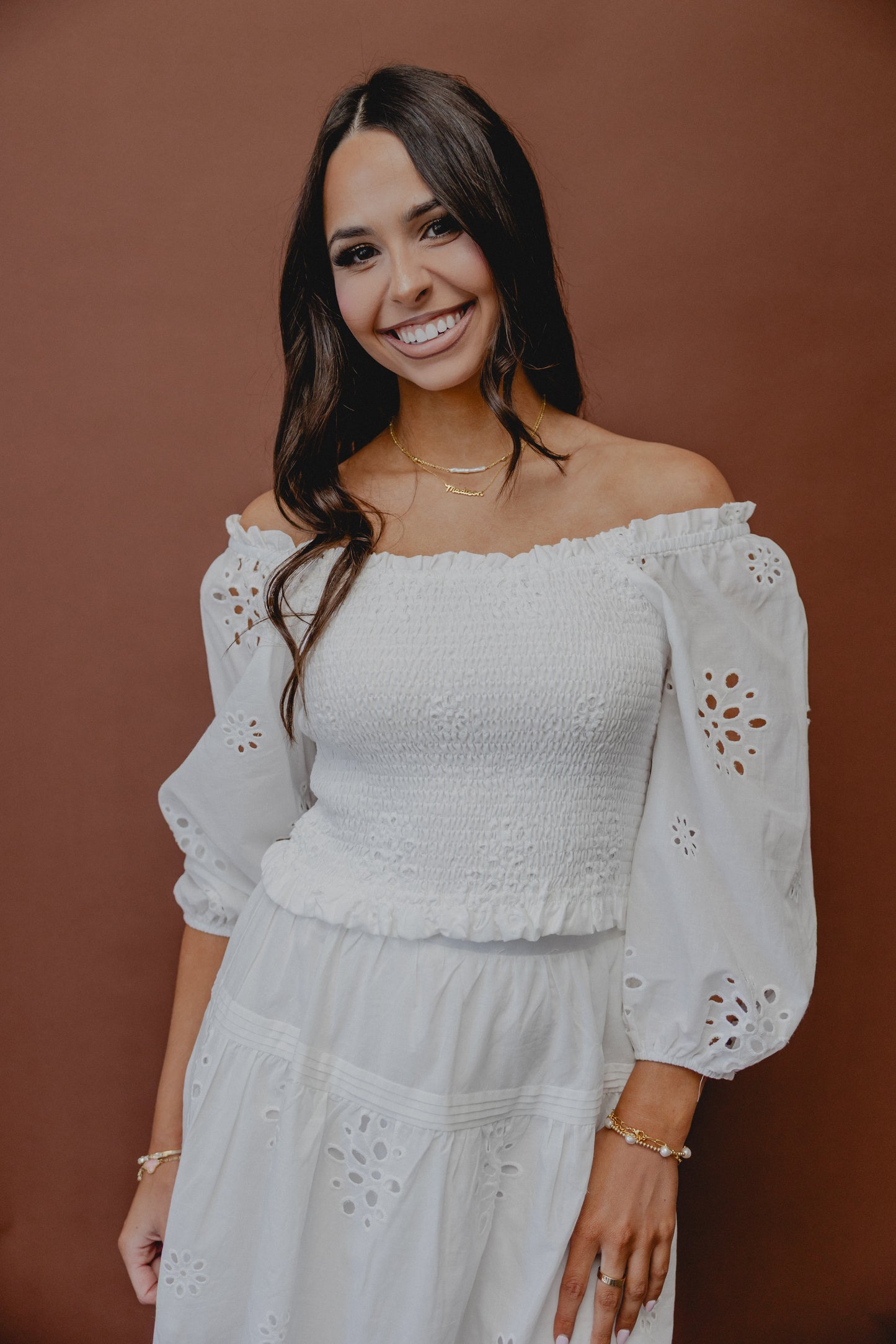 Bloomfield Smock Eyelet Blouse White