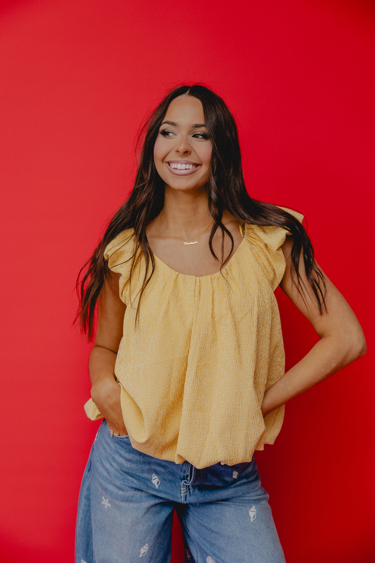 Marcy Gingham Babydoll Top Yellow