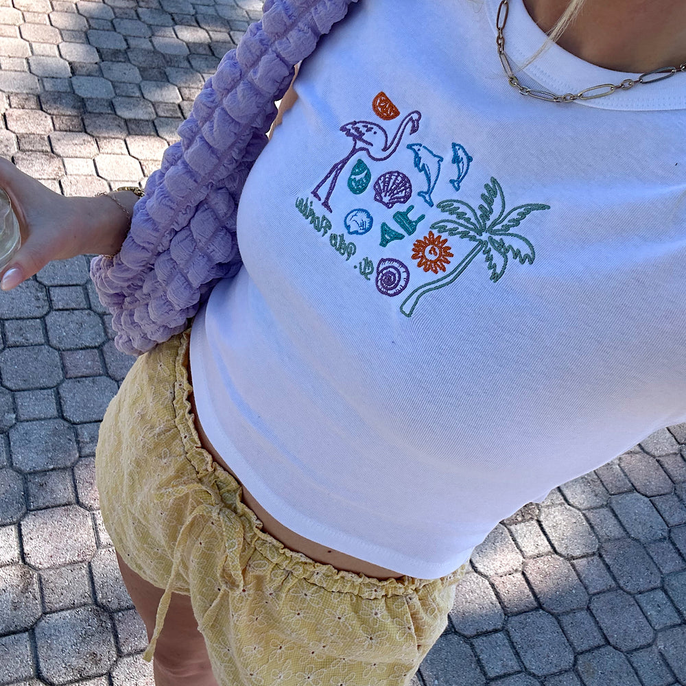 This is a baby tee style and is meant to be form fitting. Runs true to size, but size up for a looser fit.