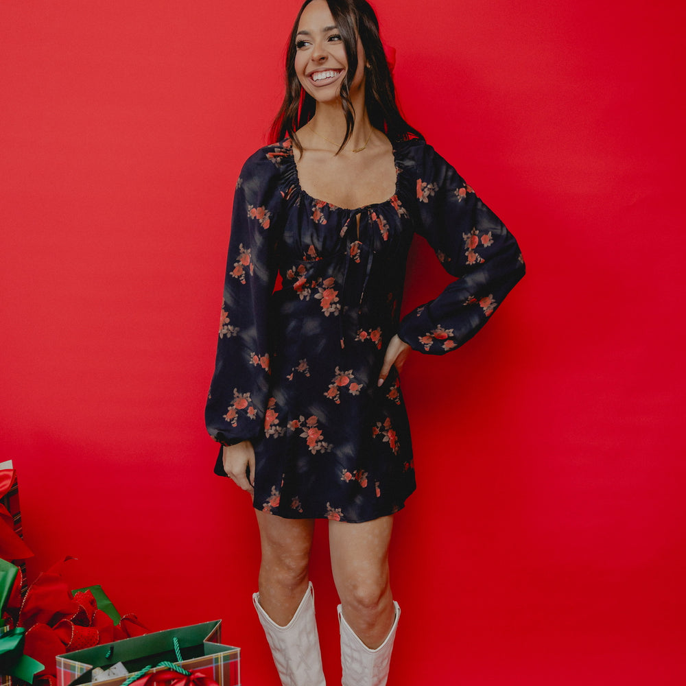 Happy Days Floral Babydoll Dress Black