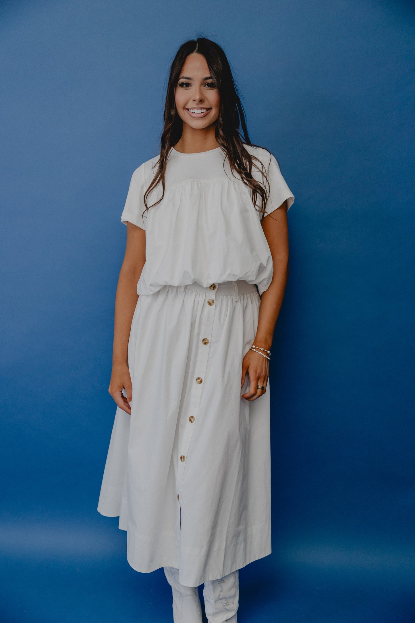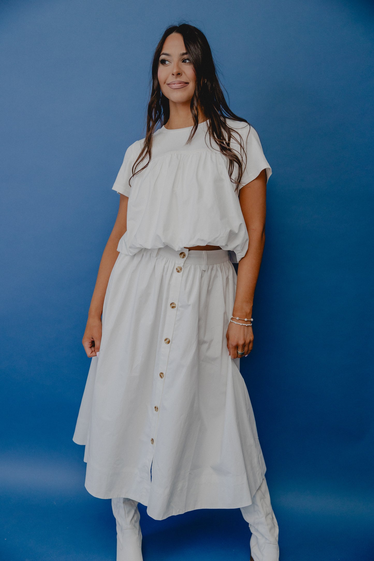 Lily Pond Button Midi Skirt White