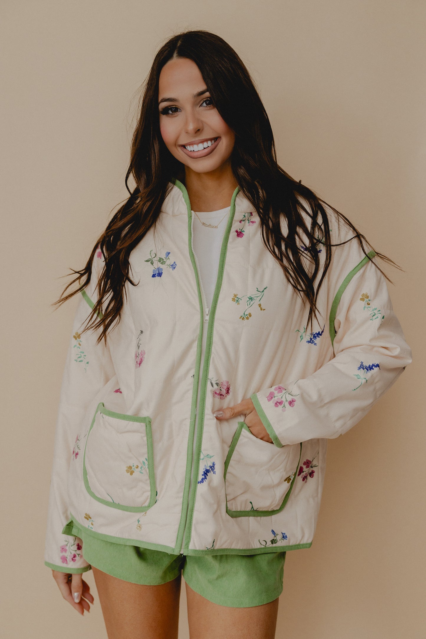 Real Big Energy Floral Puffer Coat Cream