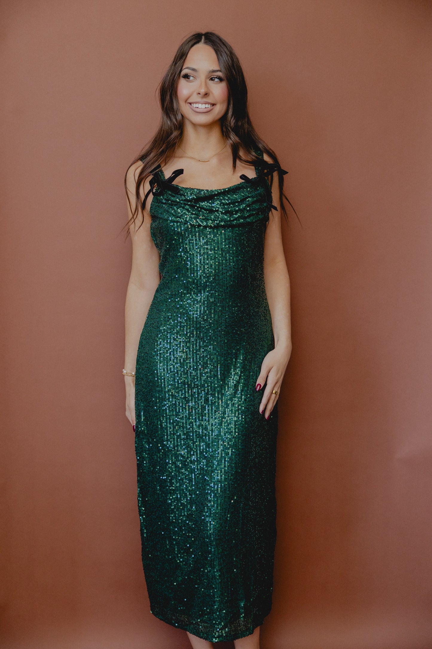 Chocolatier Asymmetric Cowl Neck Midi Mocha