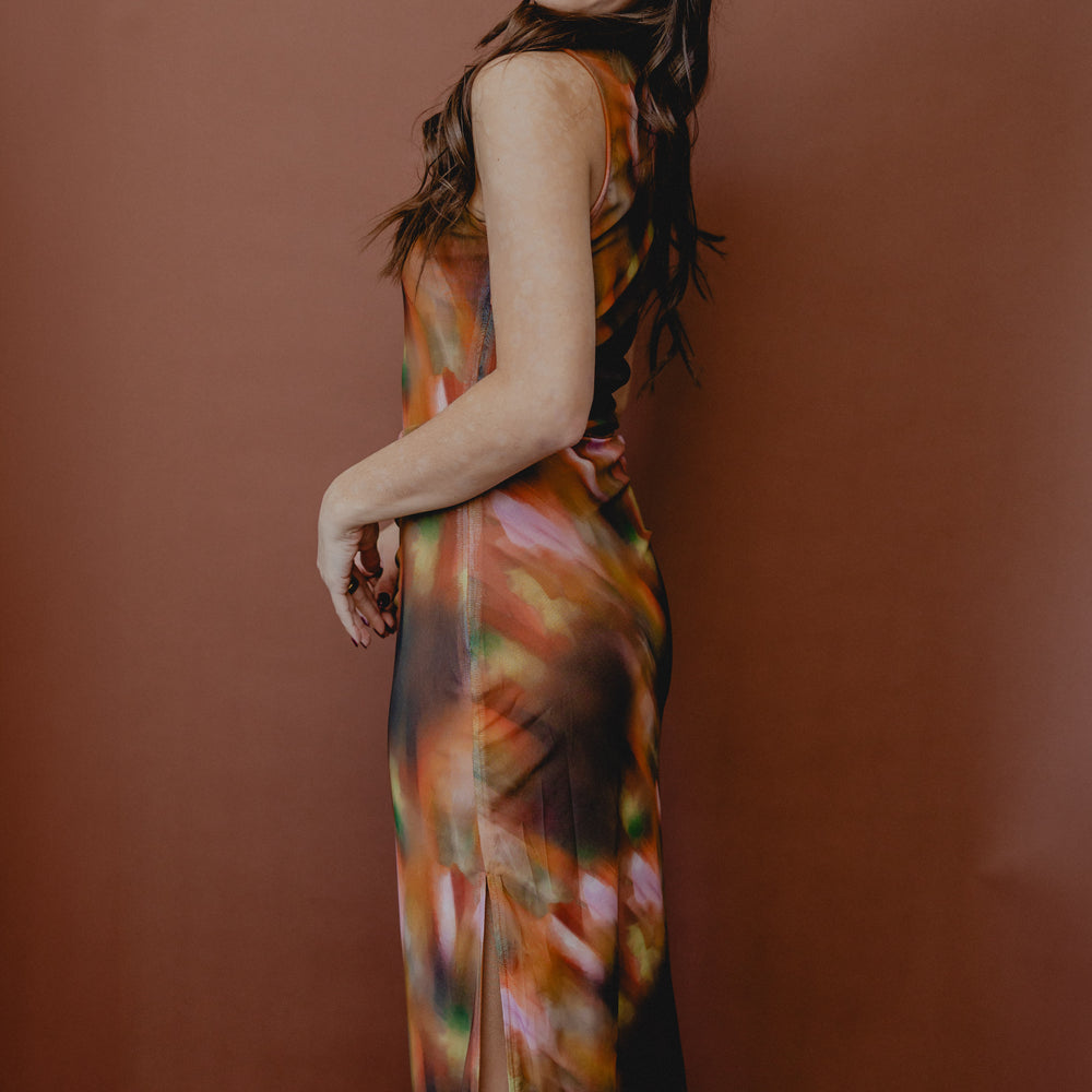 Paris Texas Bias Cut Midi Dress Maroon/Multi