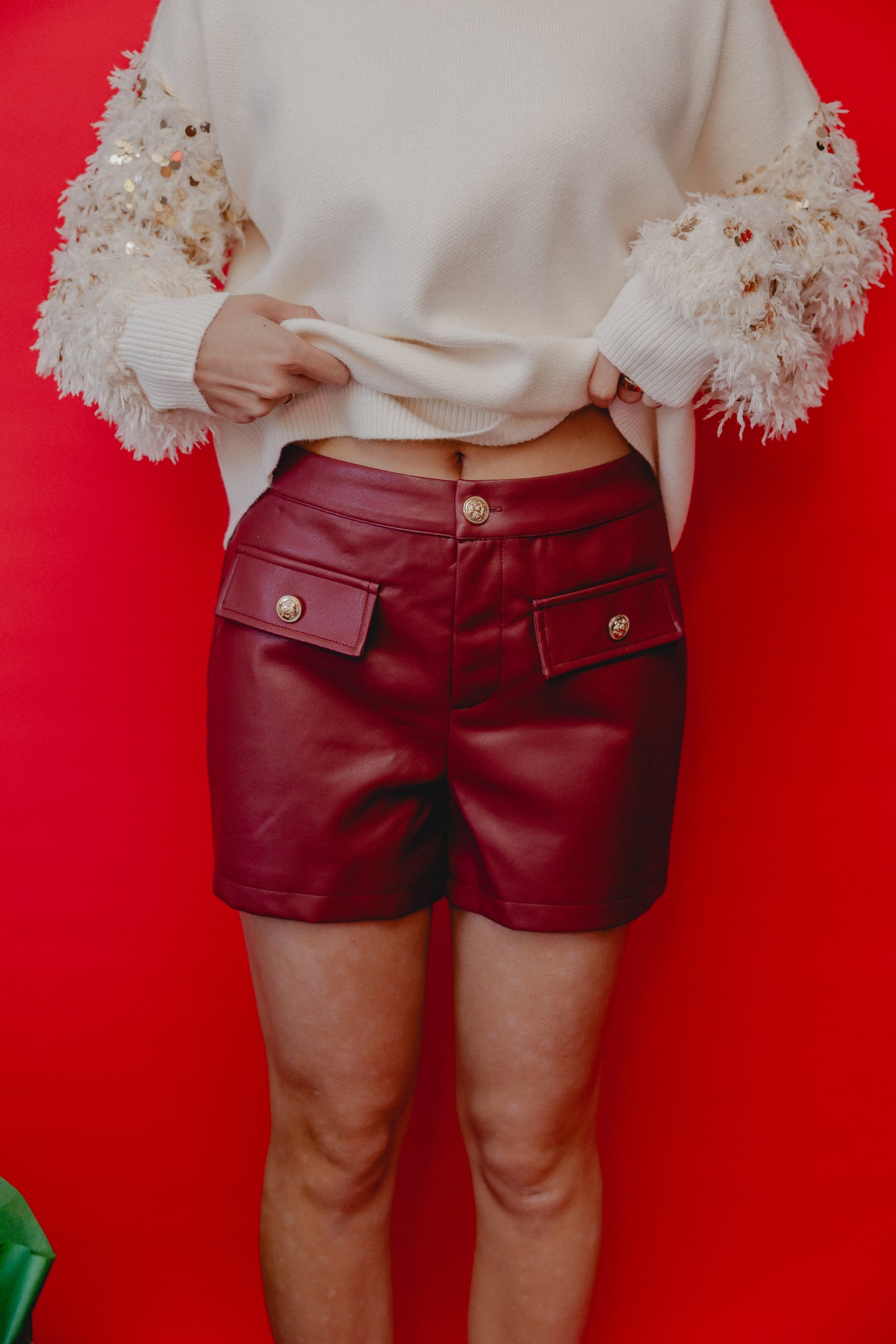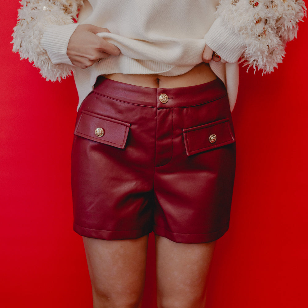 Reindeer Games Faux Leather Shorts Burgundy