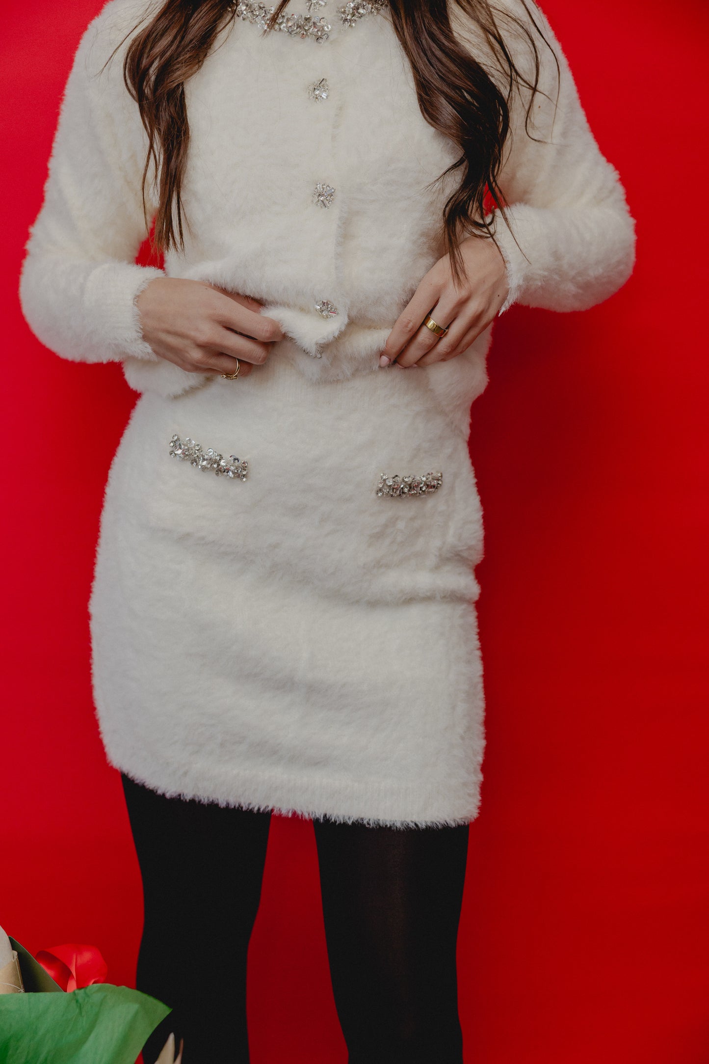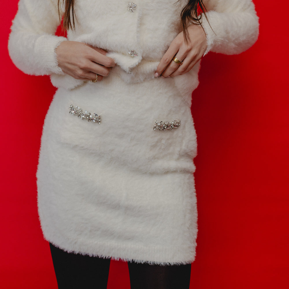 Ice Queen Rhinestone Trim Skirt White