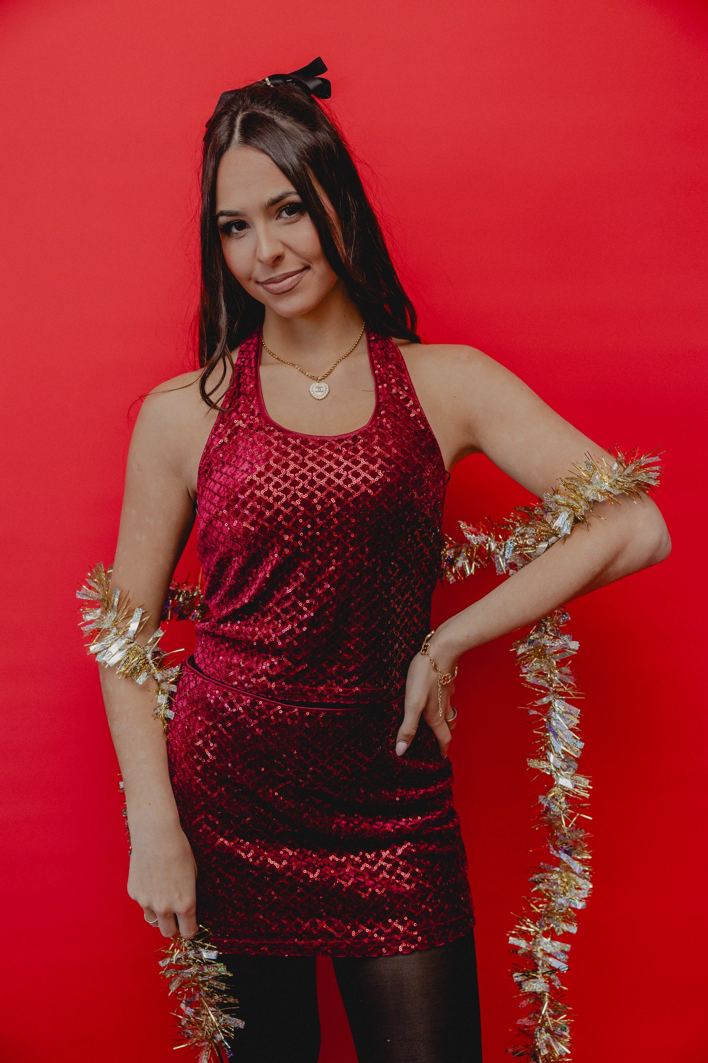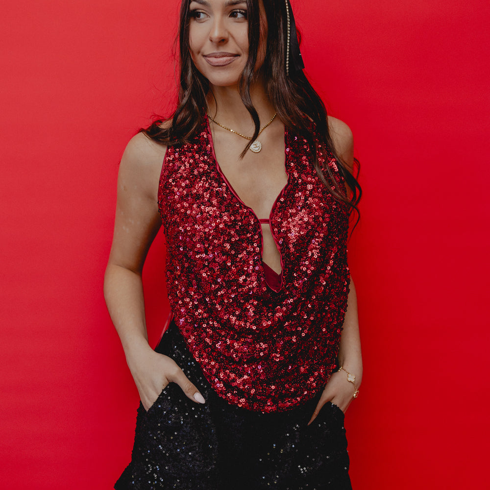 Hollywood Nights Sequin Skirt Burgundy