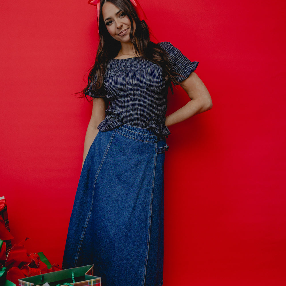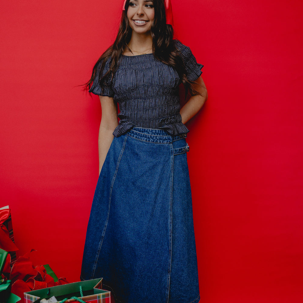 Cause Mischief Double Buckle Skirt Denim