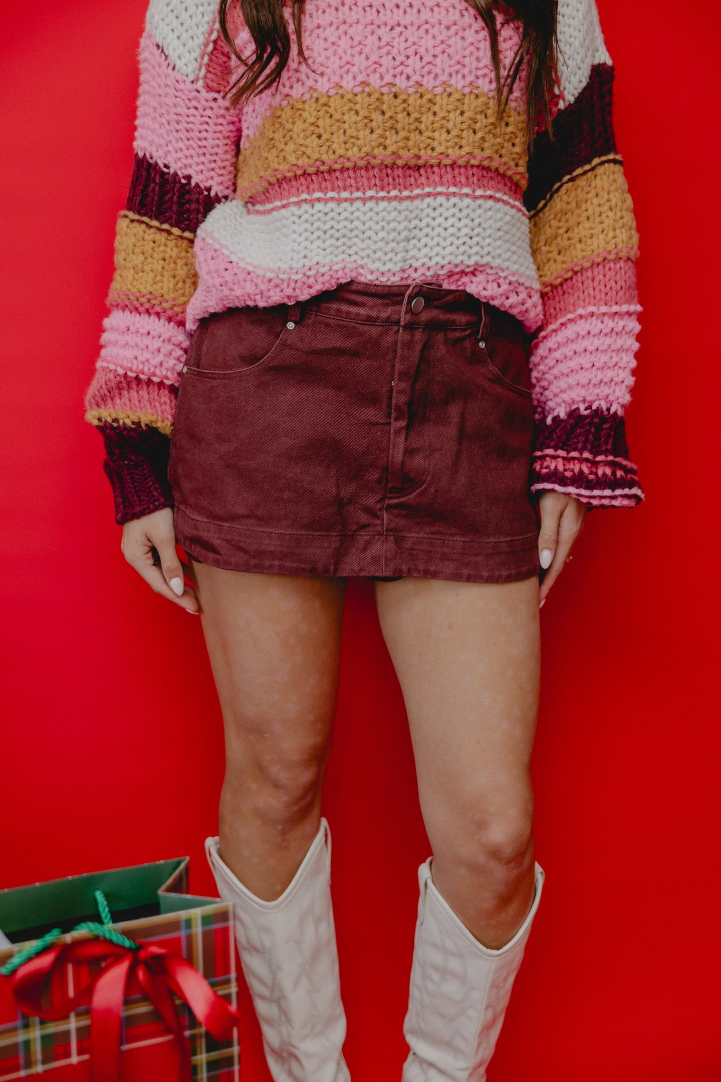It's A Mystery Polka Dot Skirt Burgundy