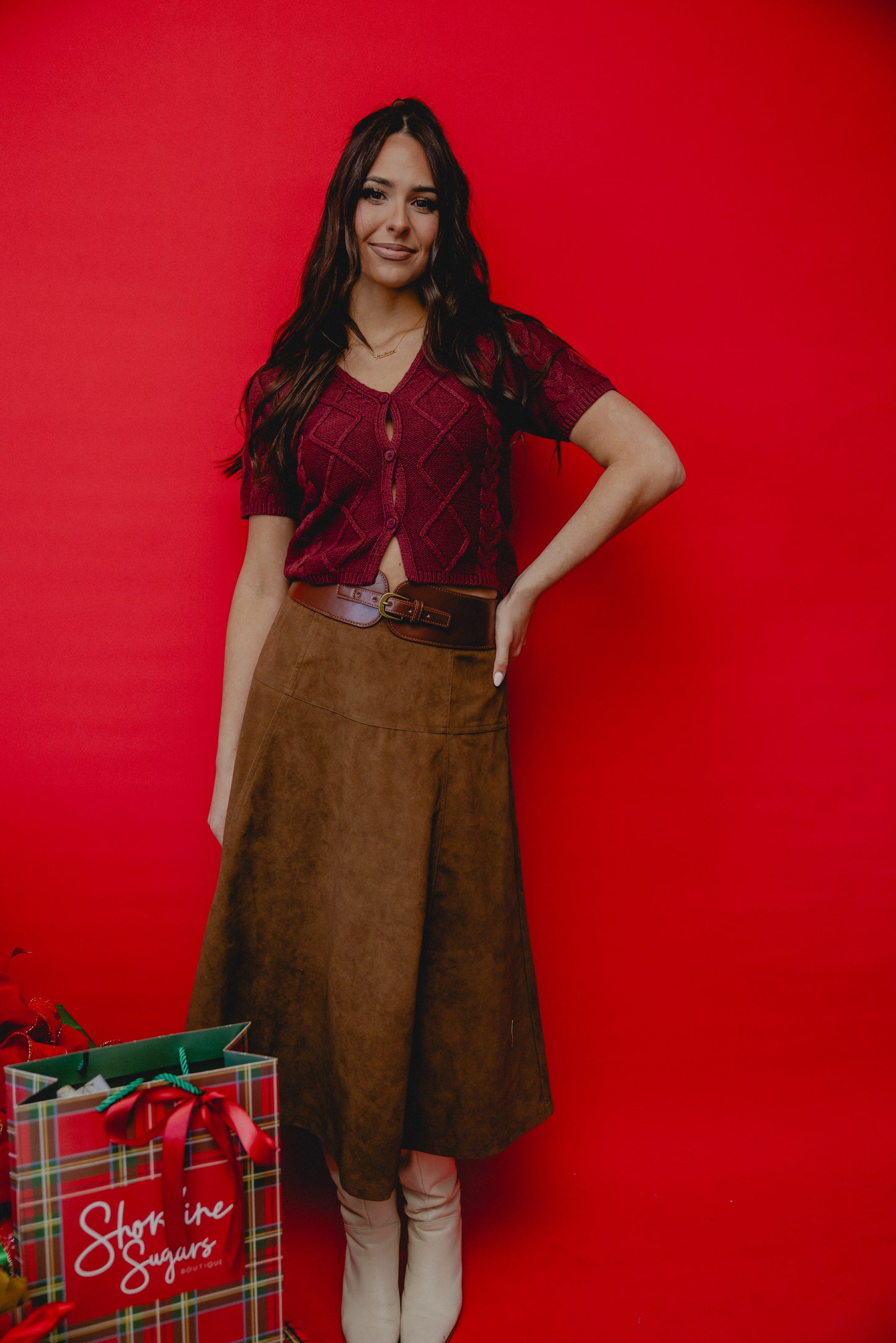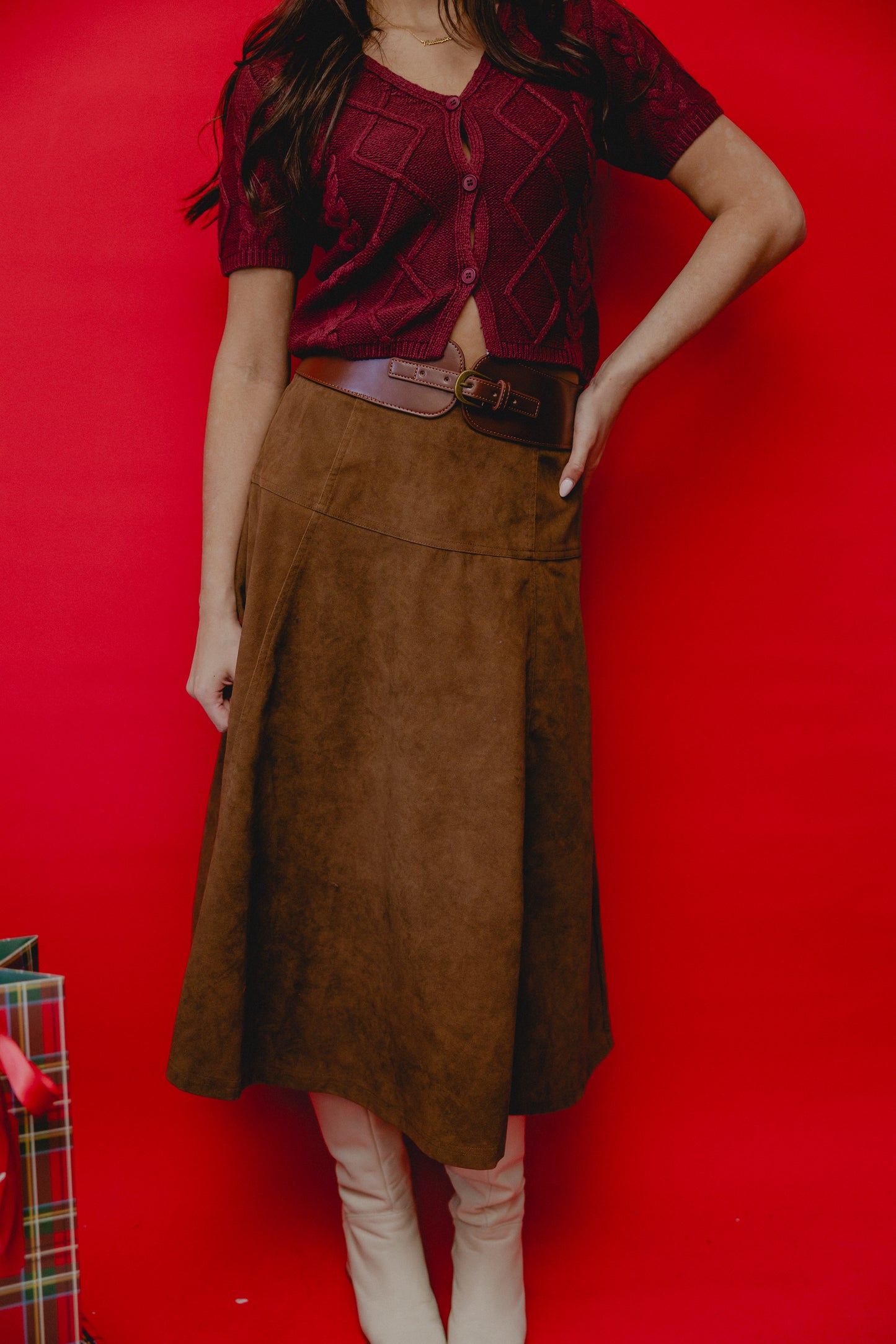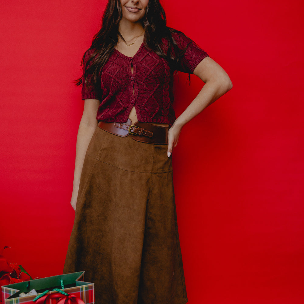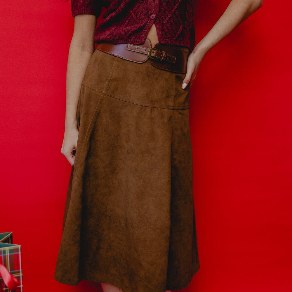 Ryder Belted Suede Midi Skirt Brown