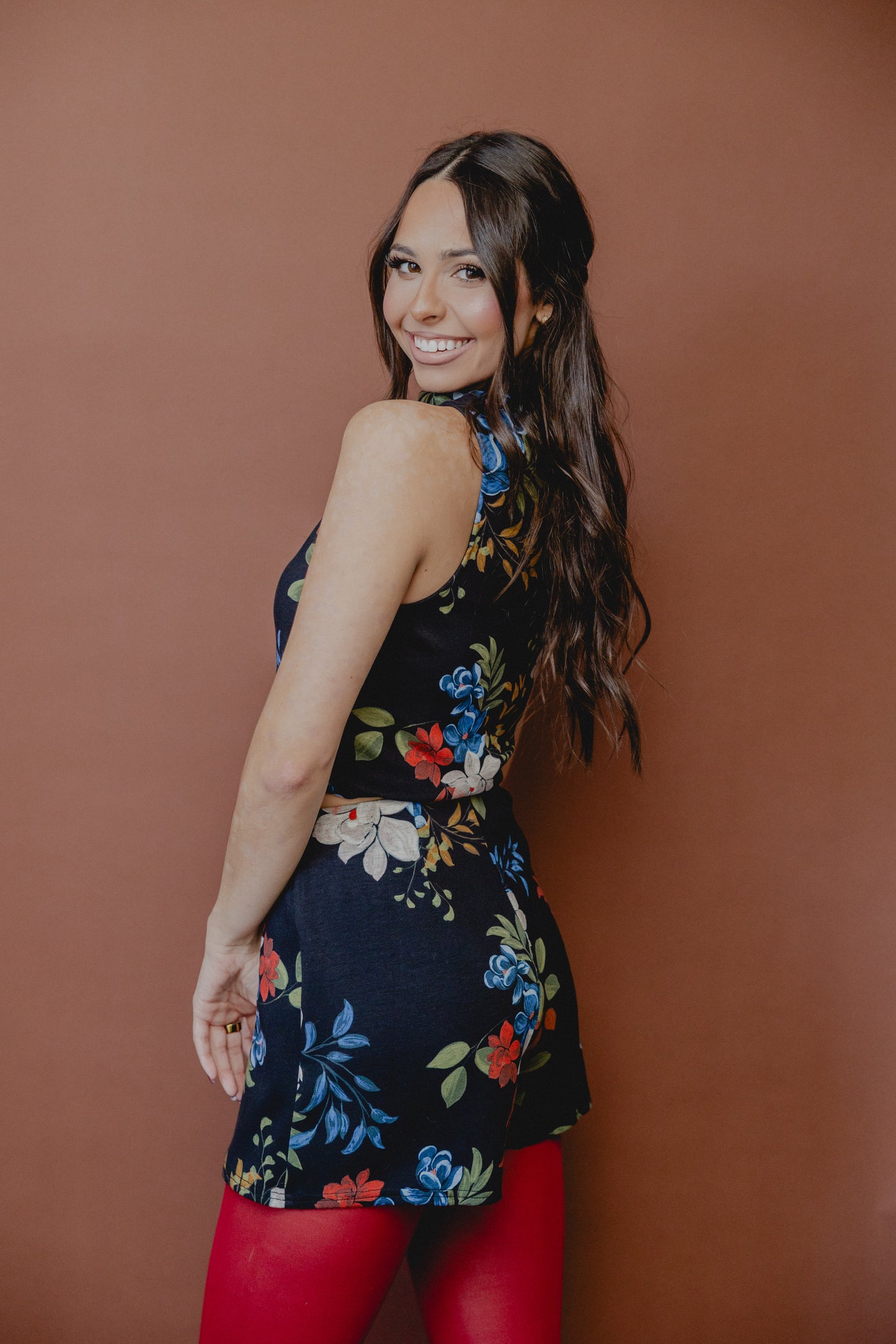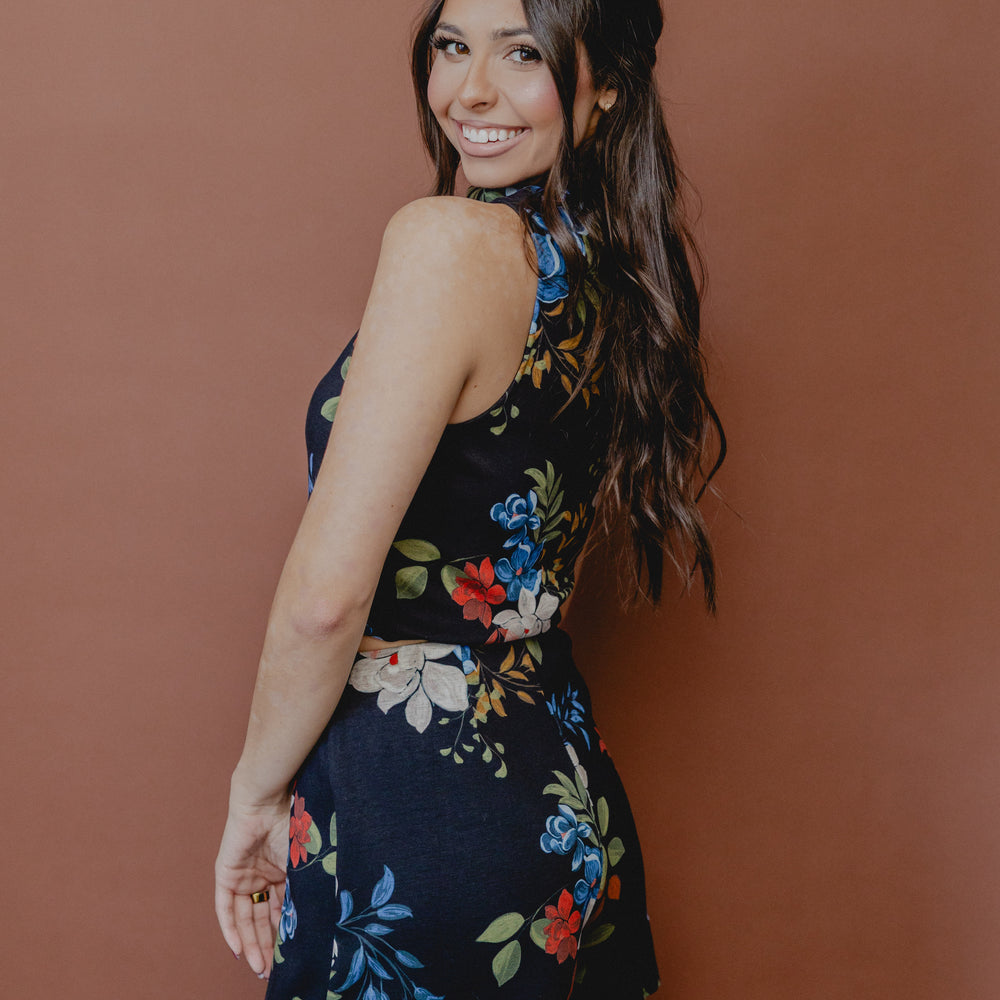 Four Seasons Floral Crop Tank Black Multi