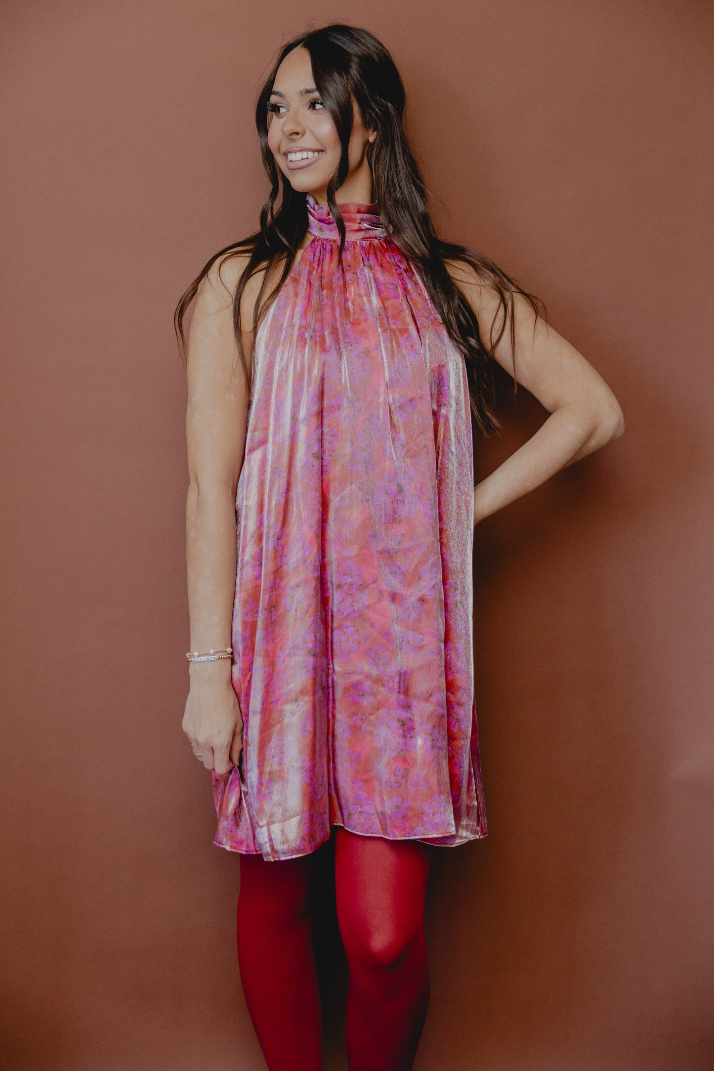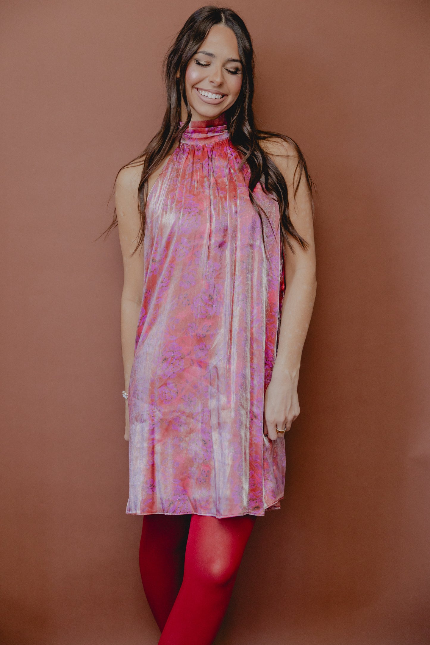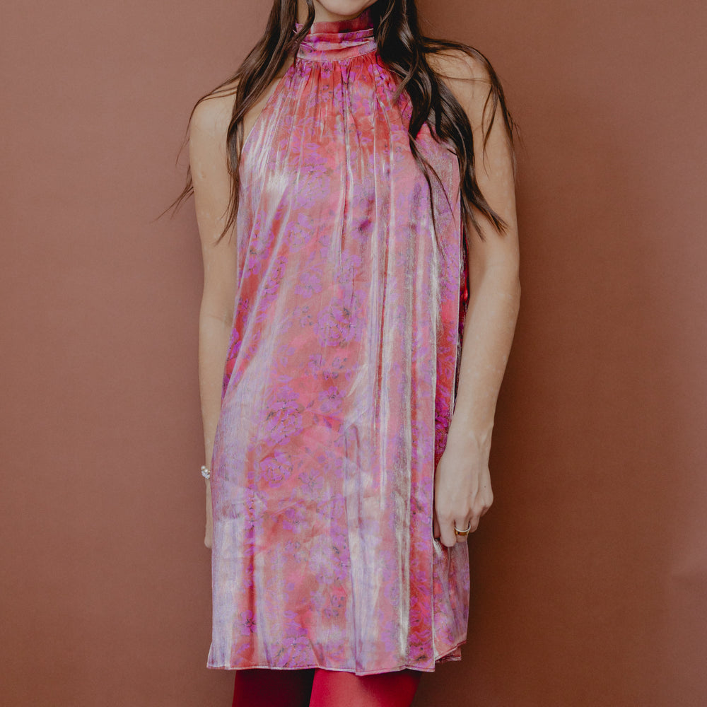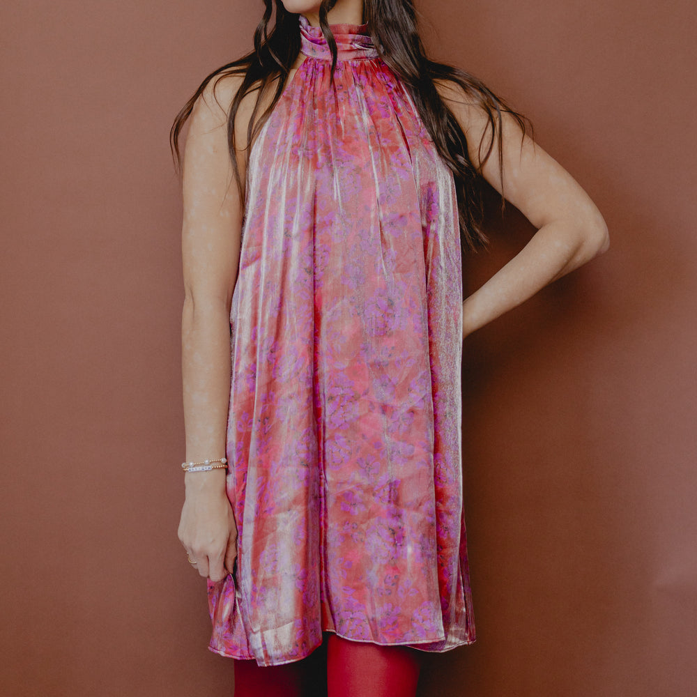 Floral Glow High Neck Dress Magenta