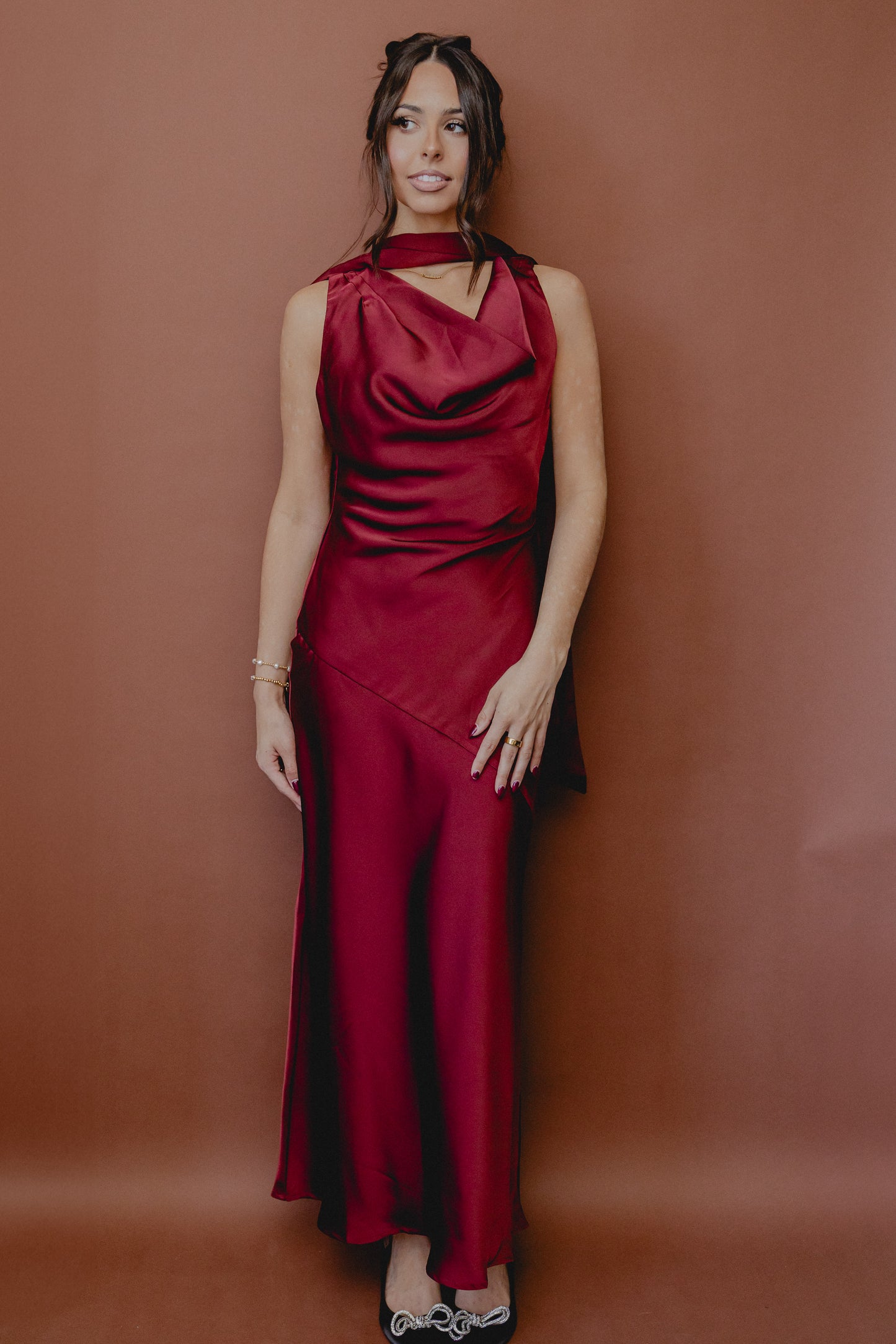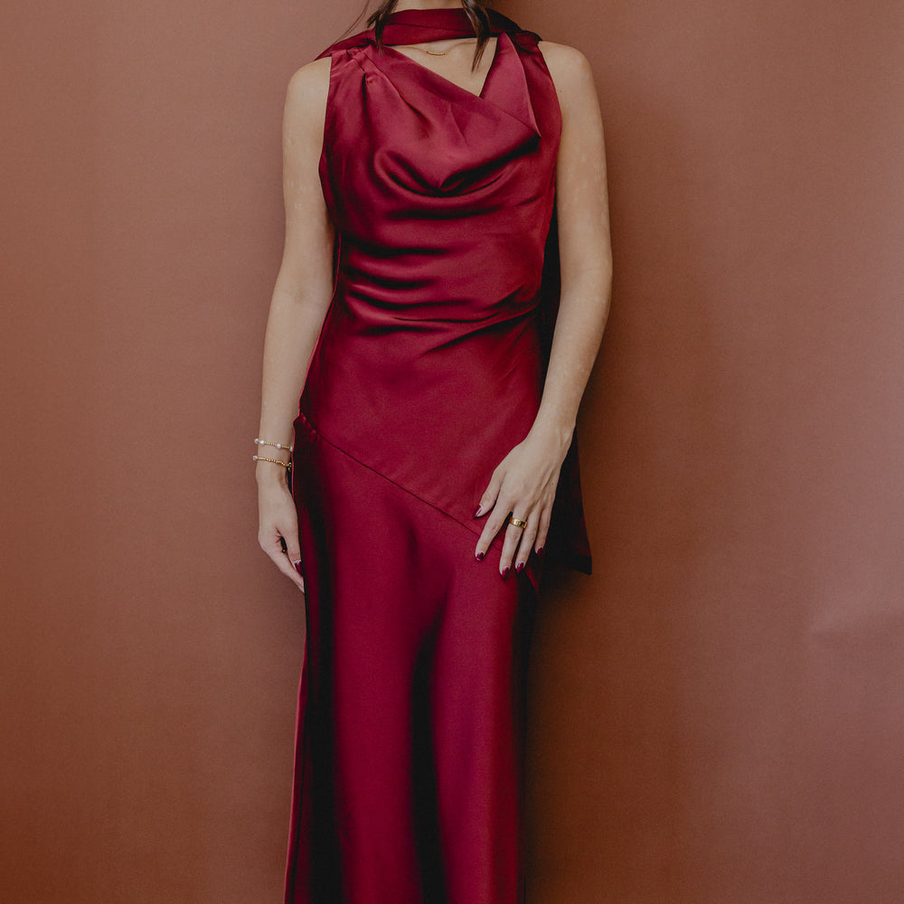 Cabaret Cowl Neck Scarf Dress Wine