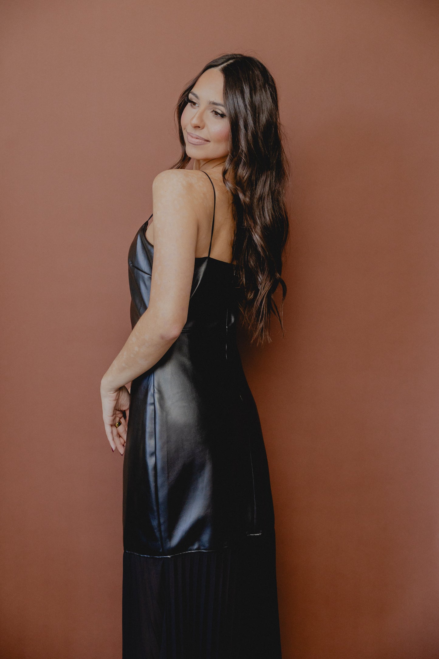 Fete Faux Leather Pleated Maxi Black