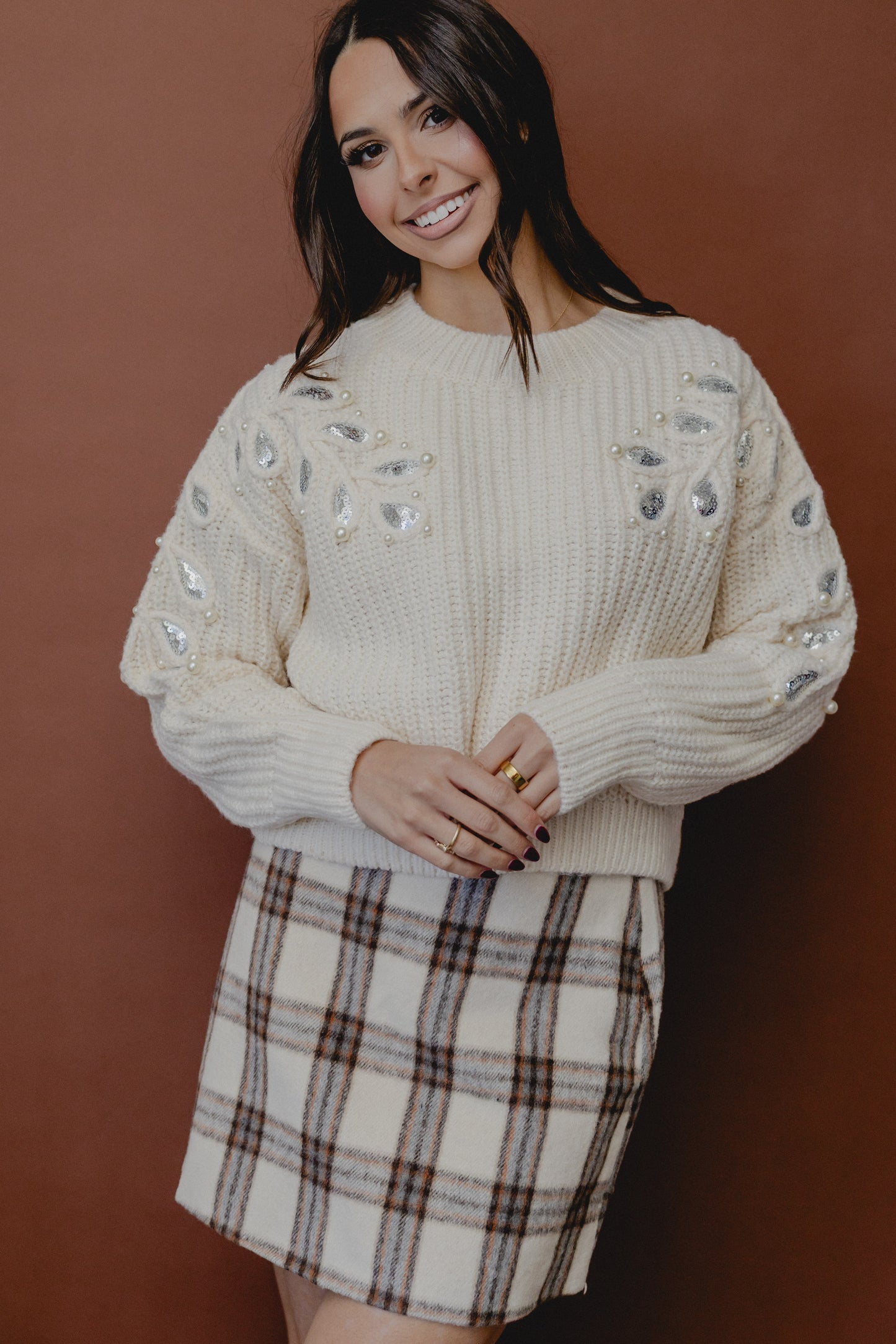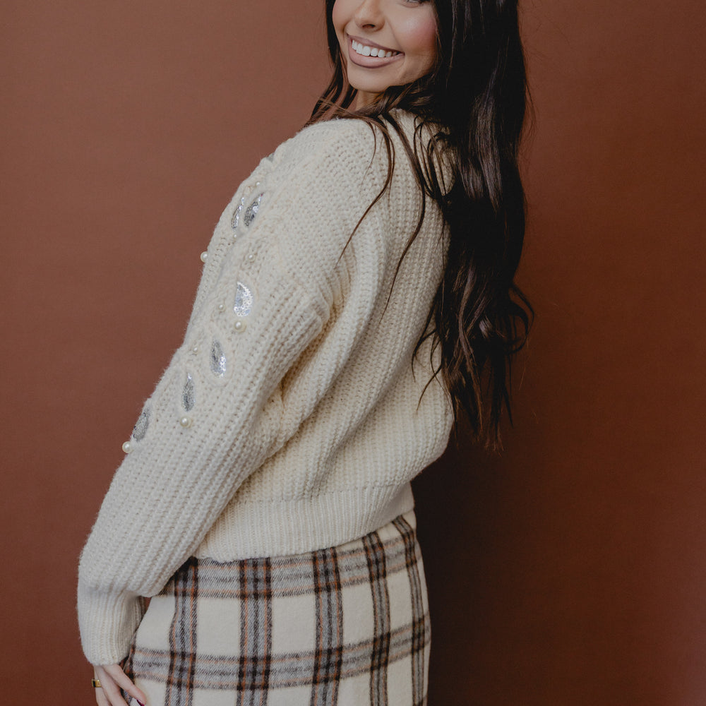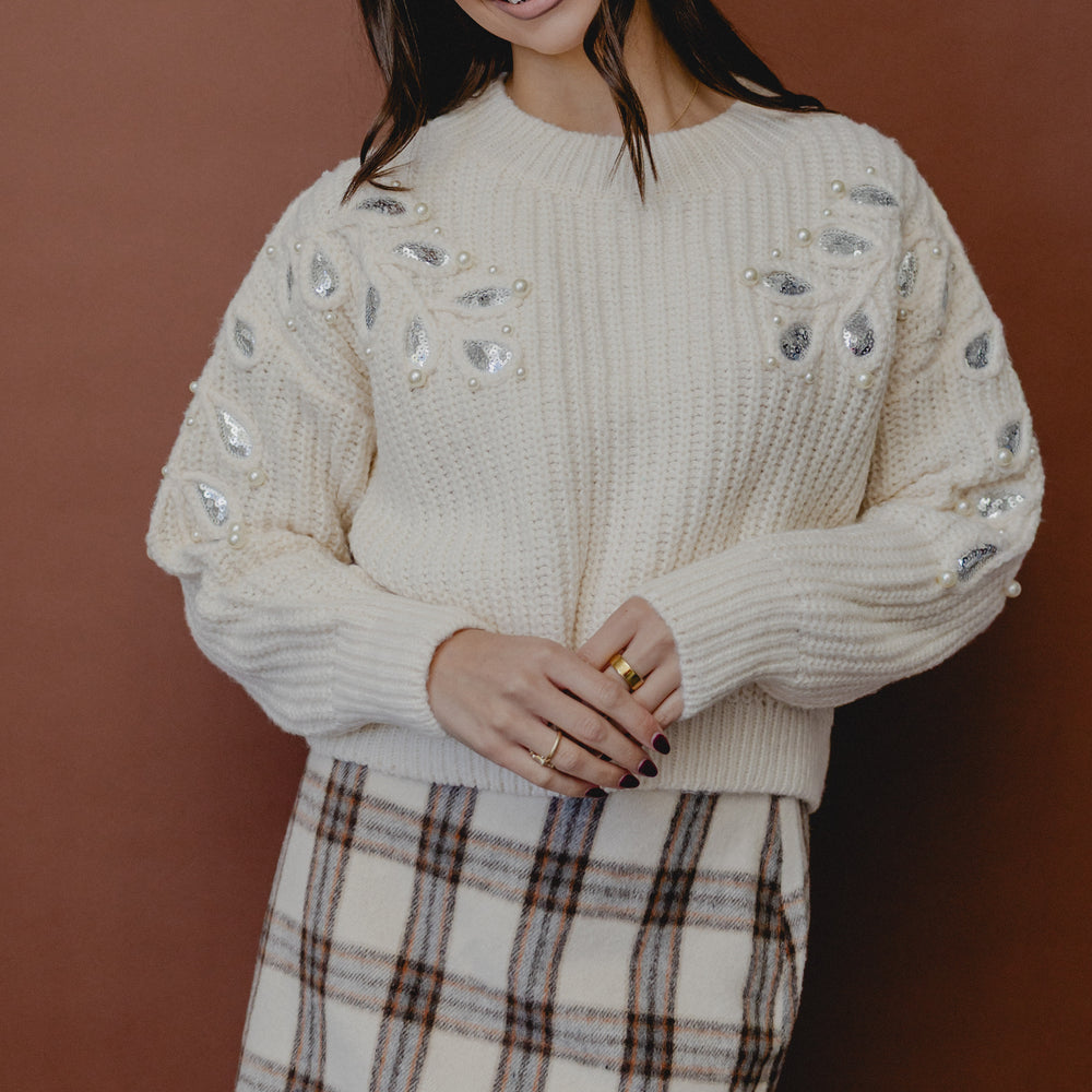 Monroe Leaf Cut Out Sweater Ivory/Silver