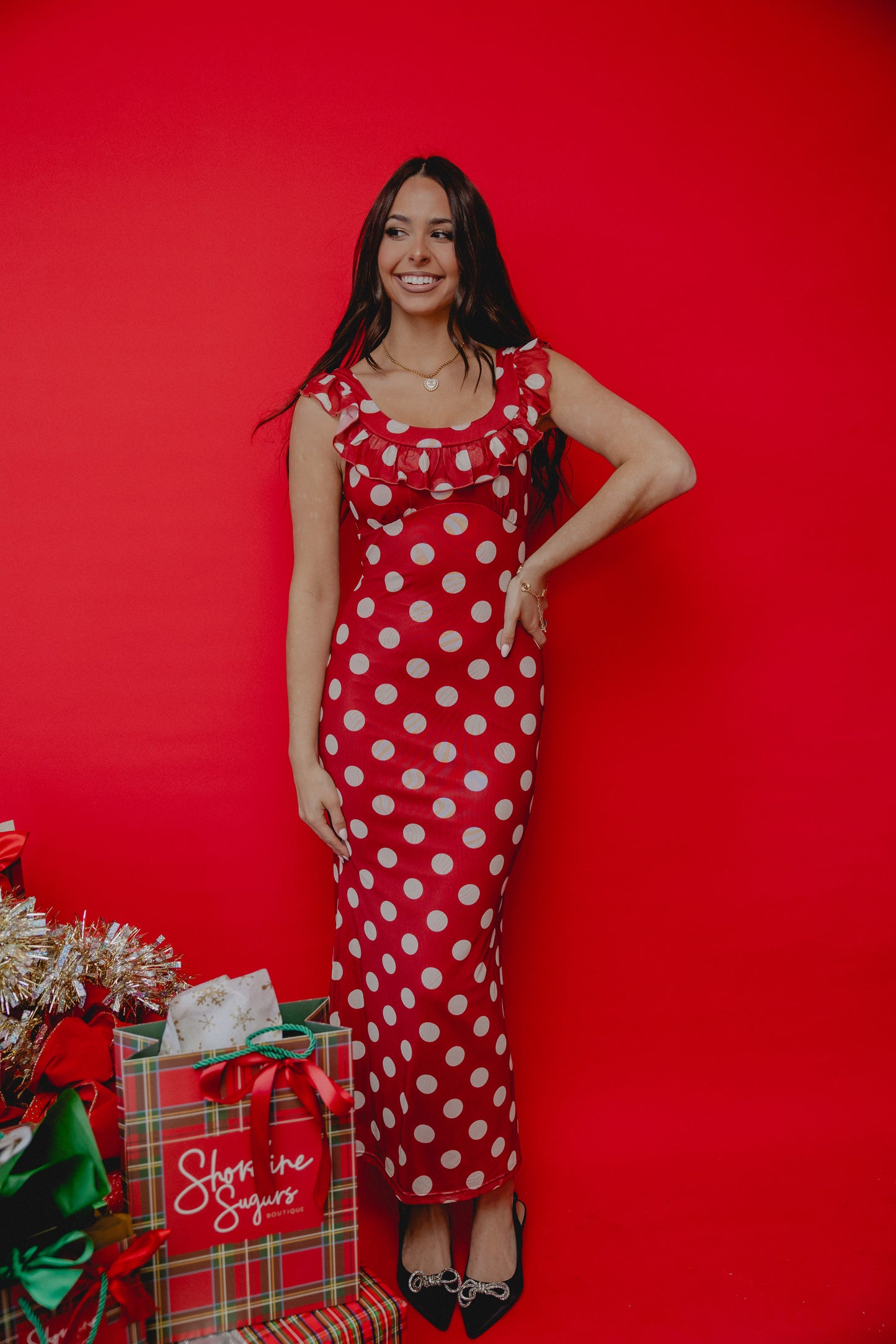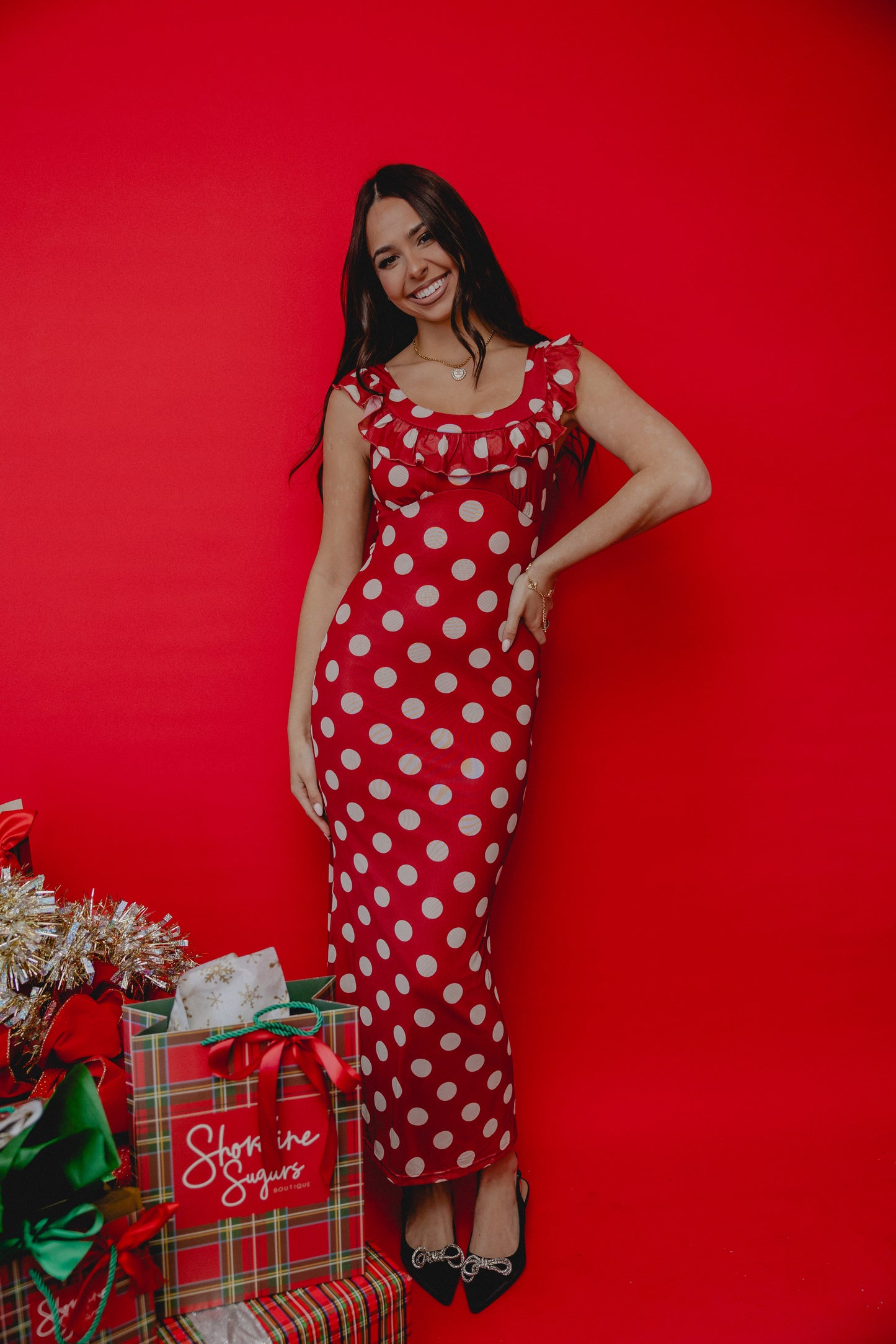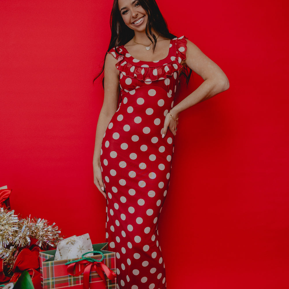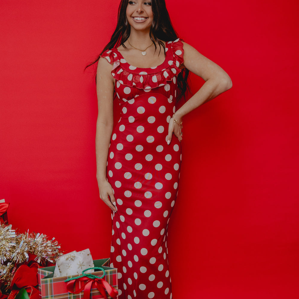 Best Intentions Polka Dot Ruffle Maxi Wine