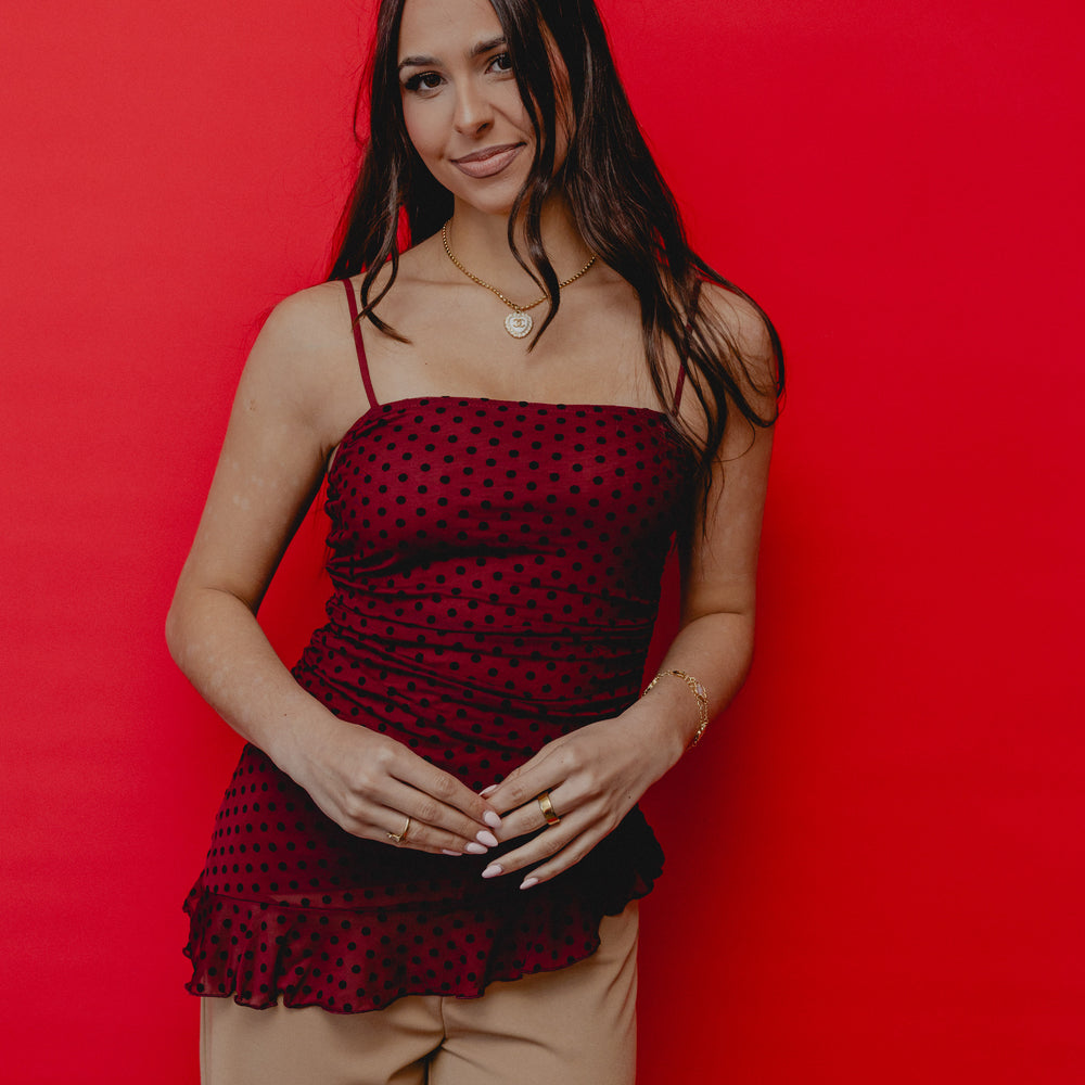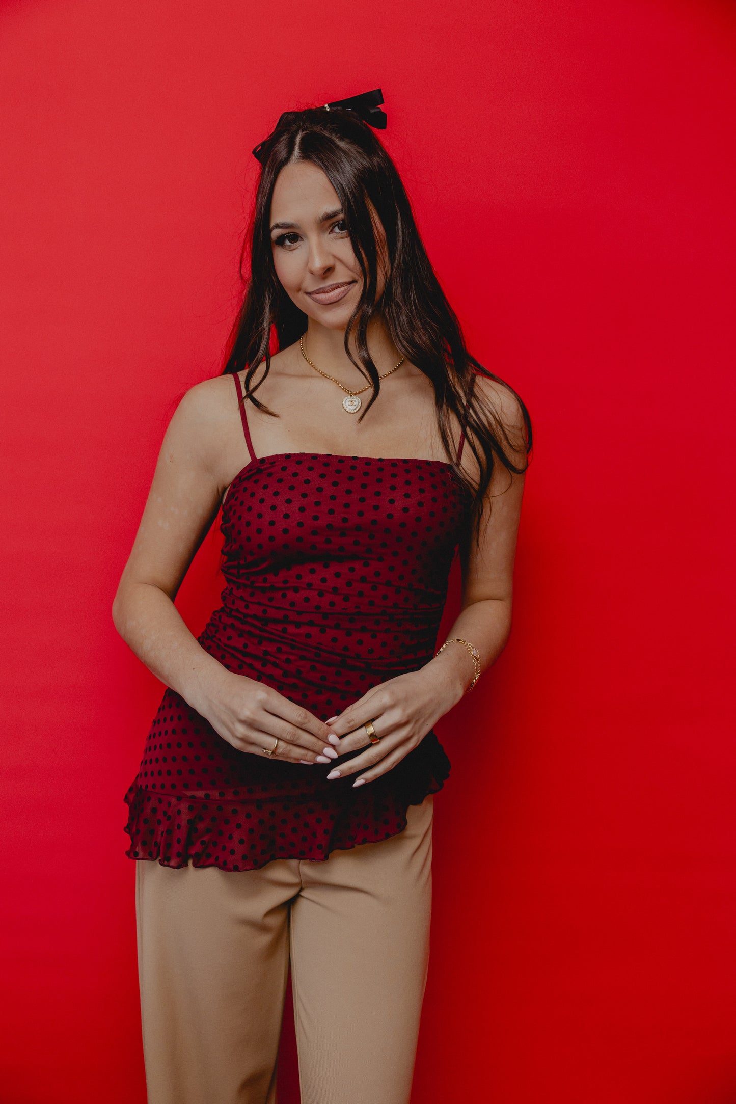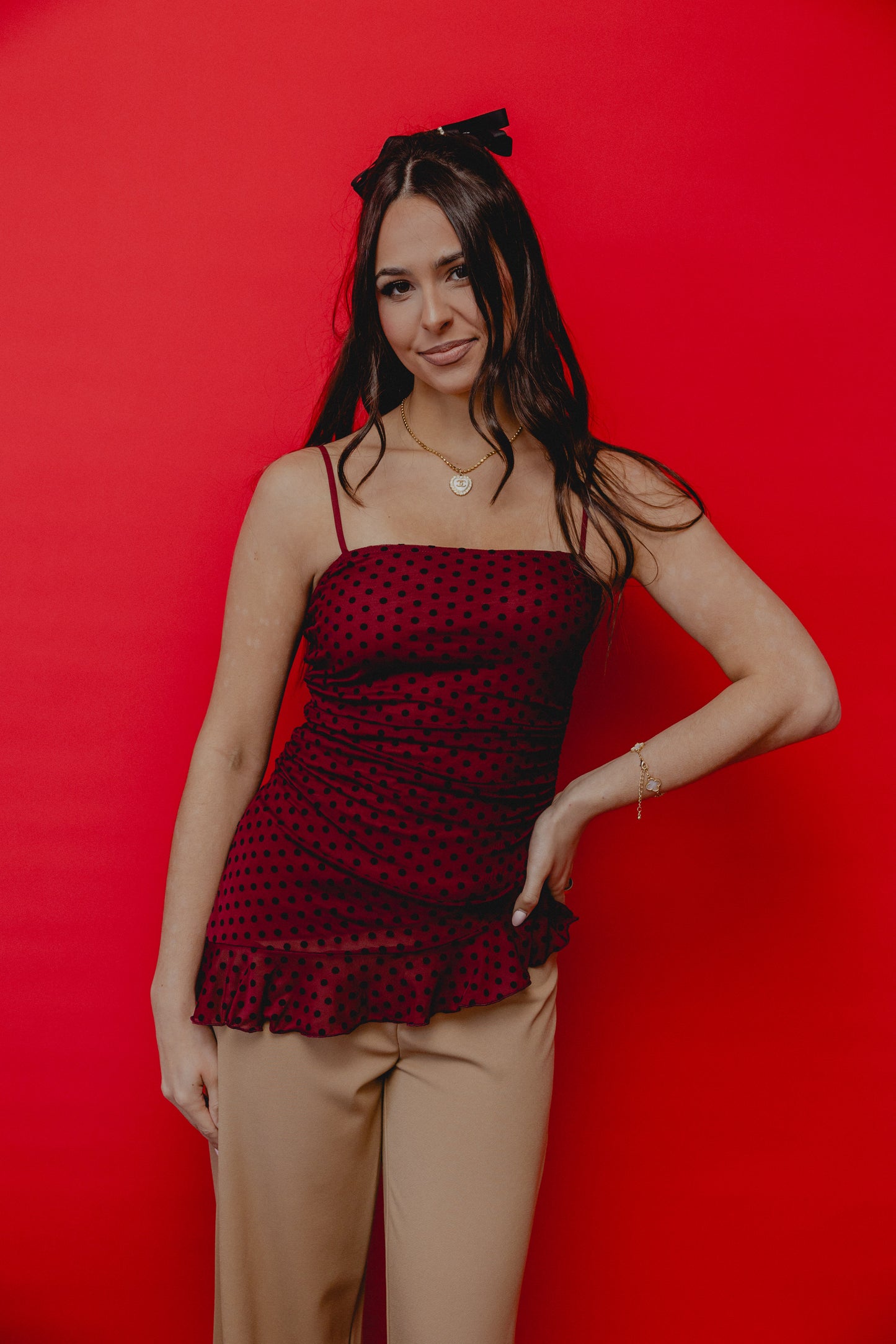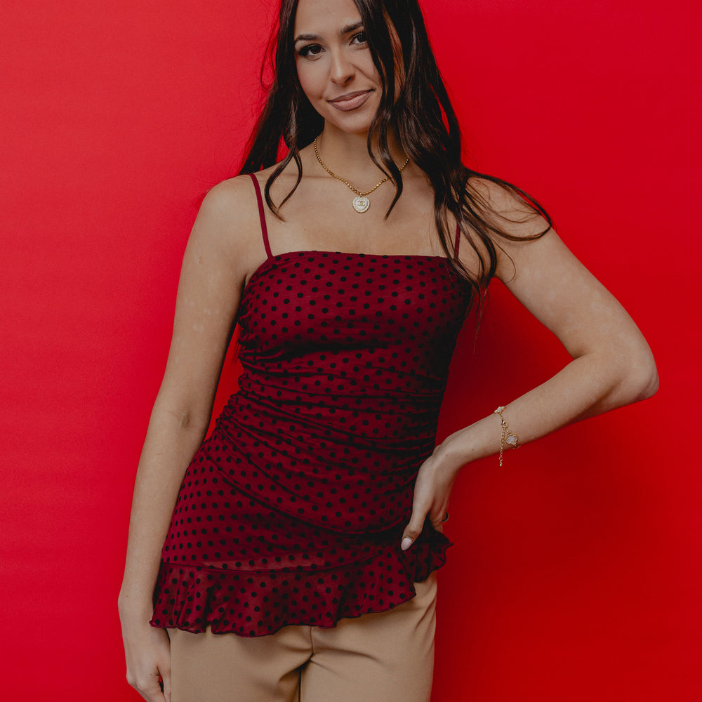 Best Intentions Polka Dot Ruffle Maxi Wine