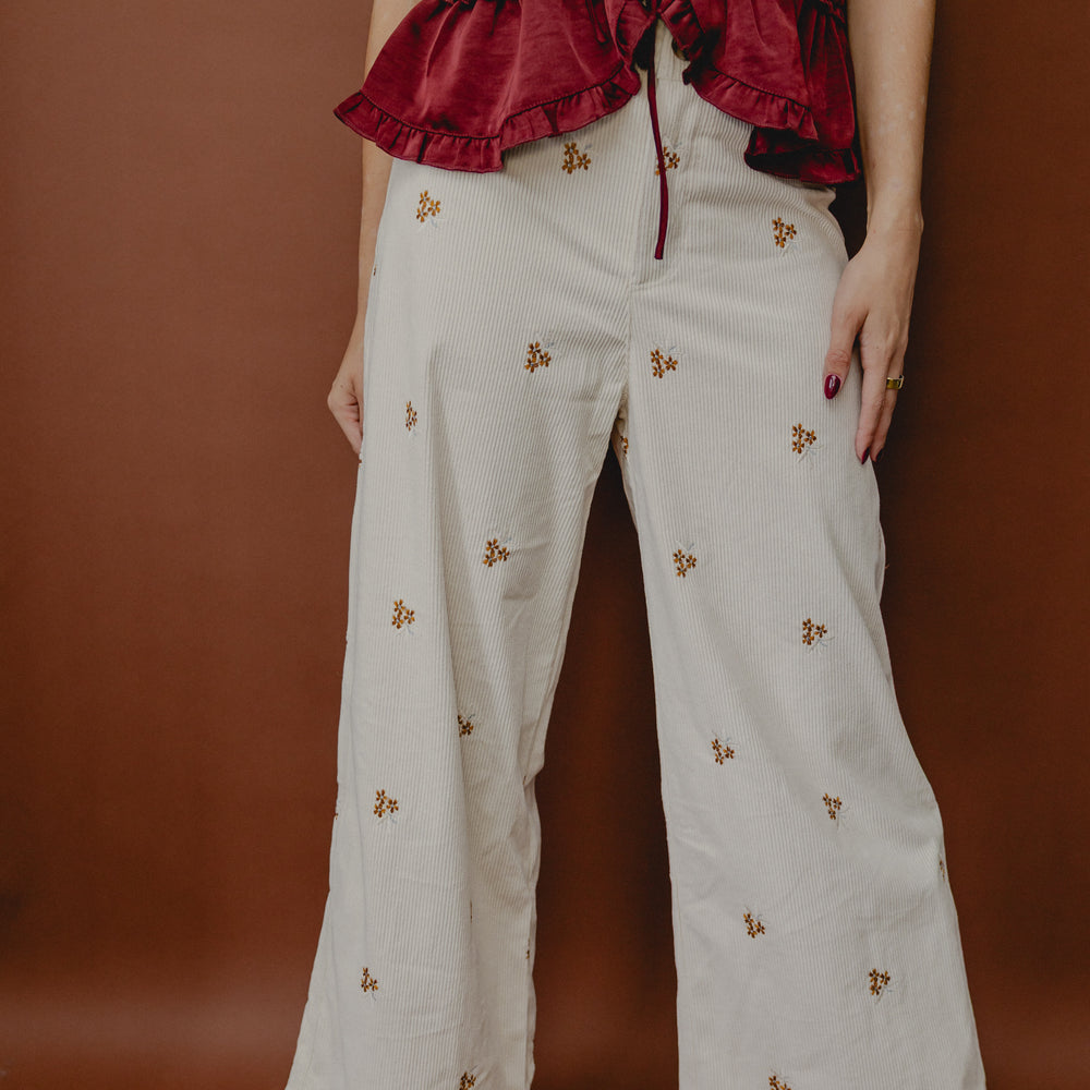 Reoccuring Dream Embroidered Cord Pants Dusty Rose
