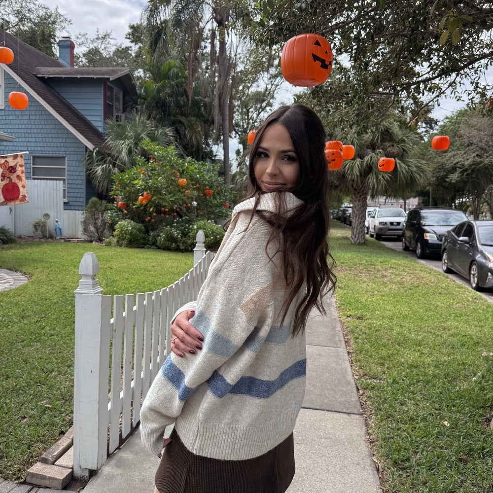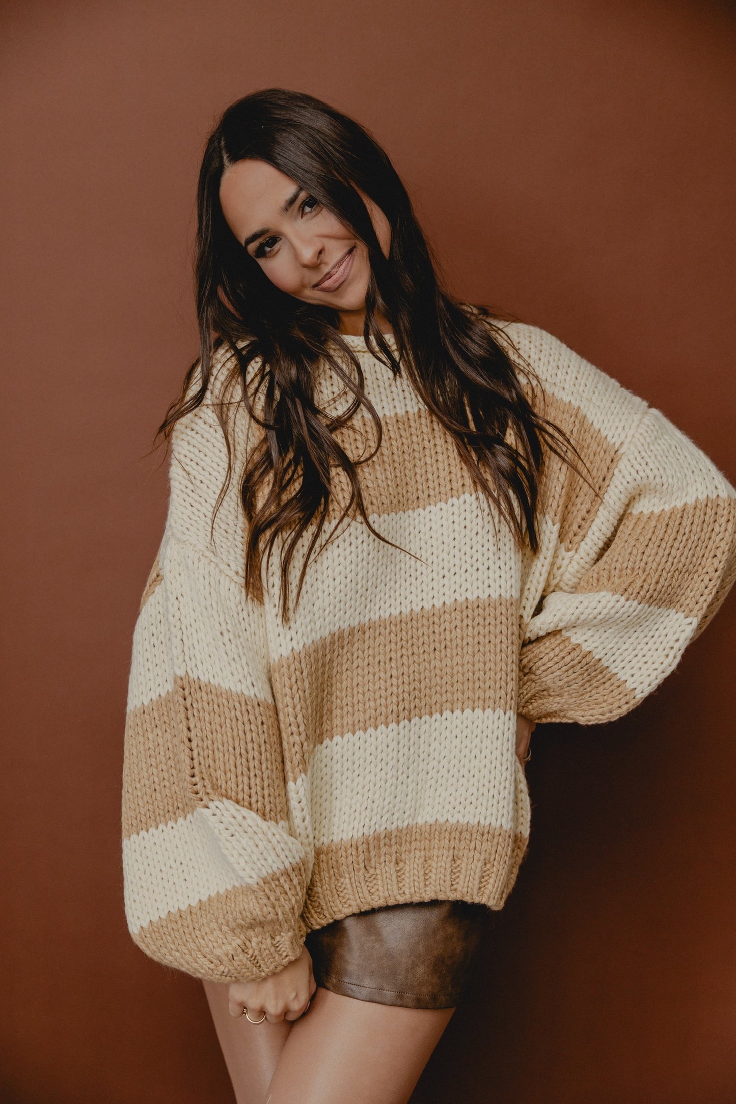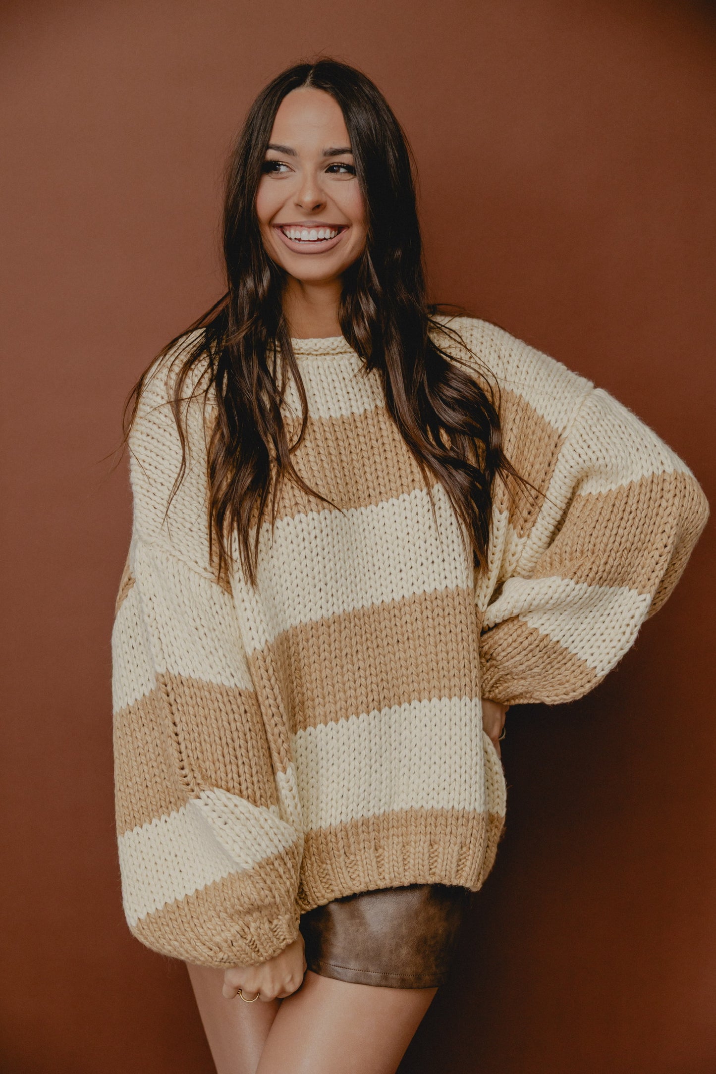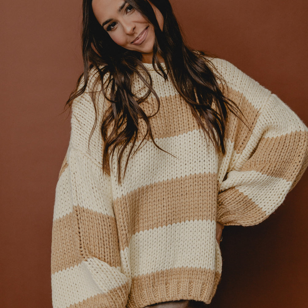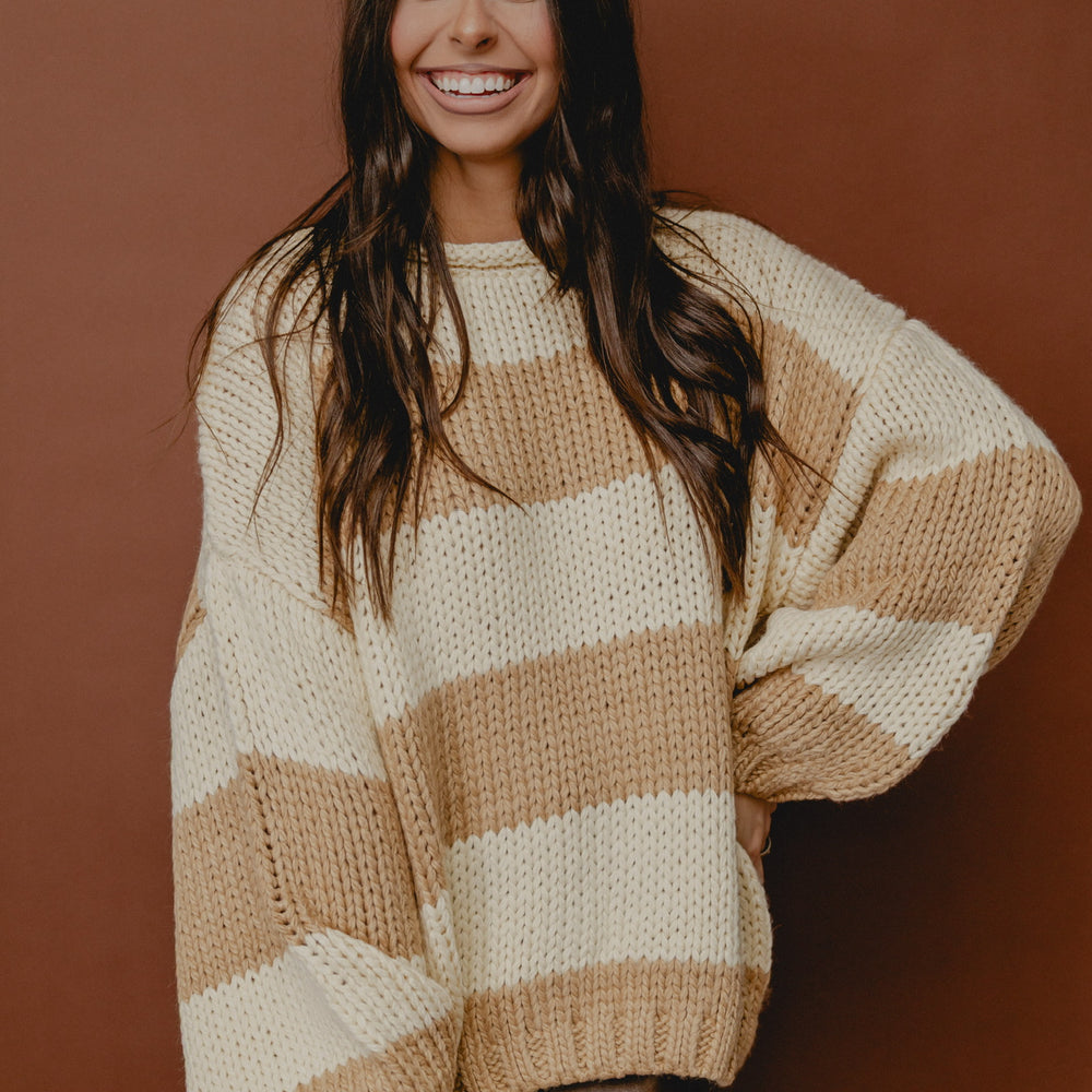 Winter Warmth Chunky Stripe Sweater Cream/Camel