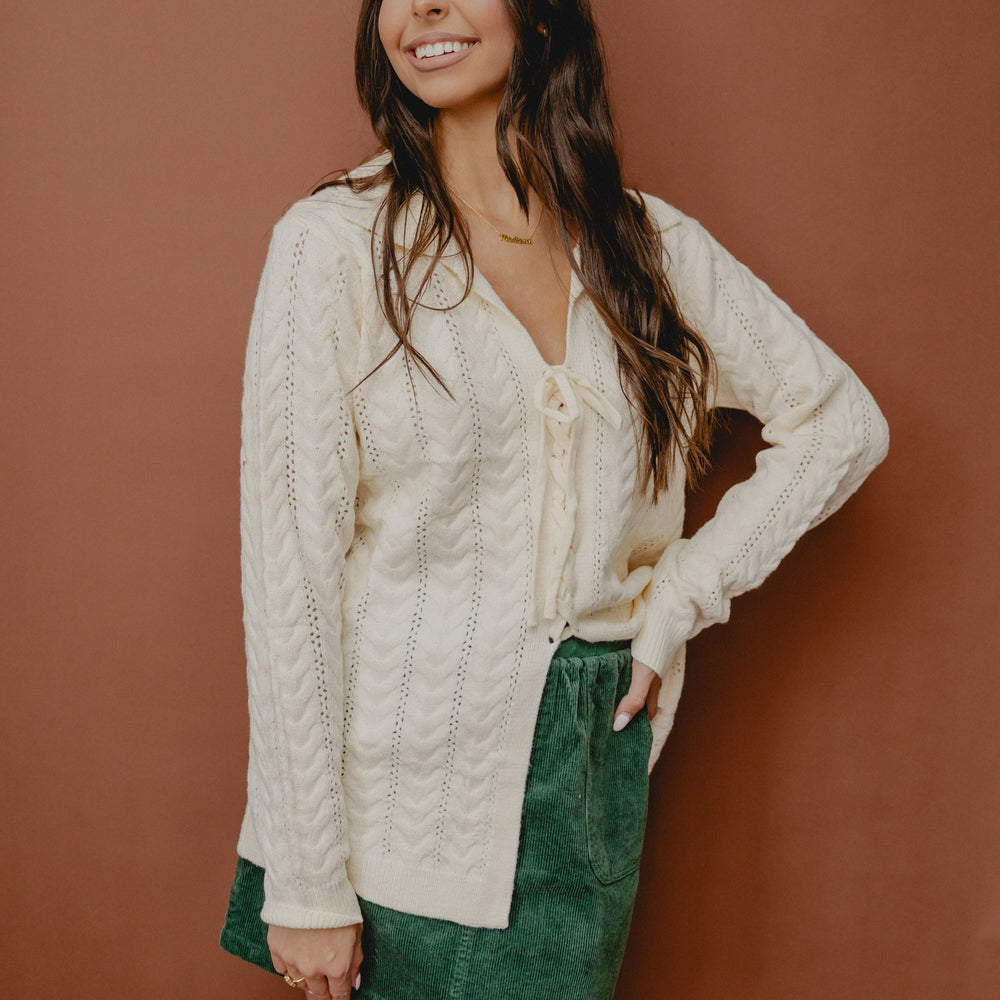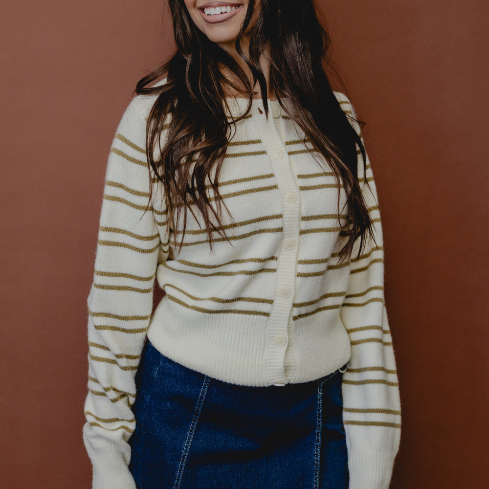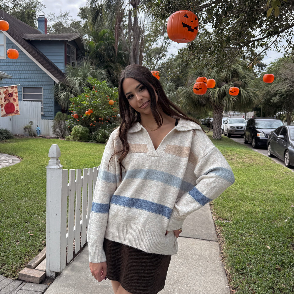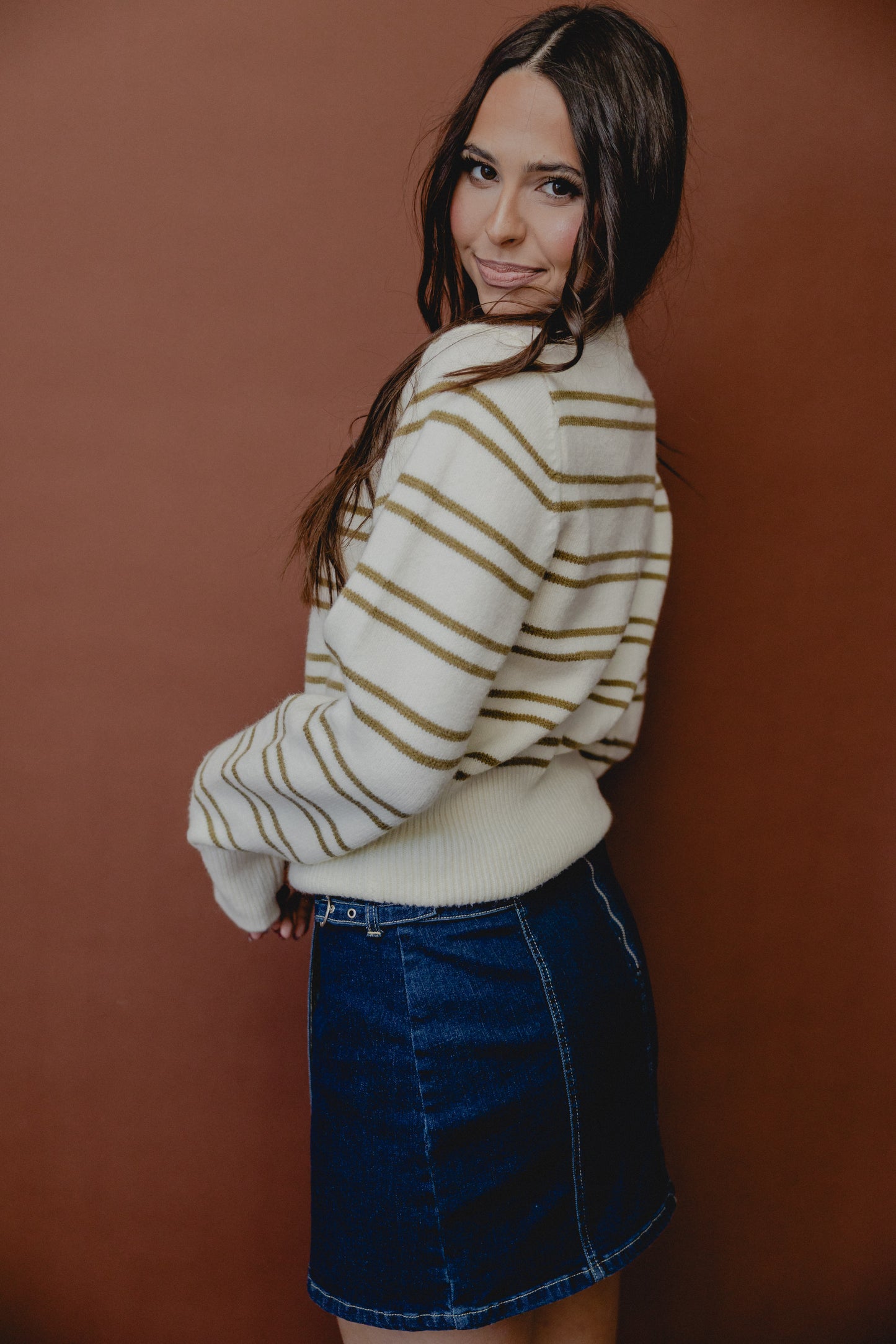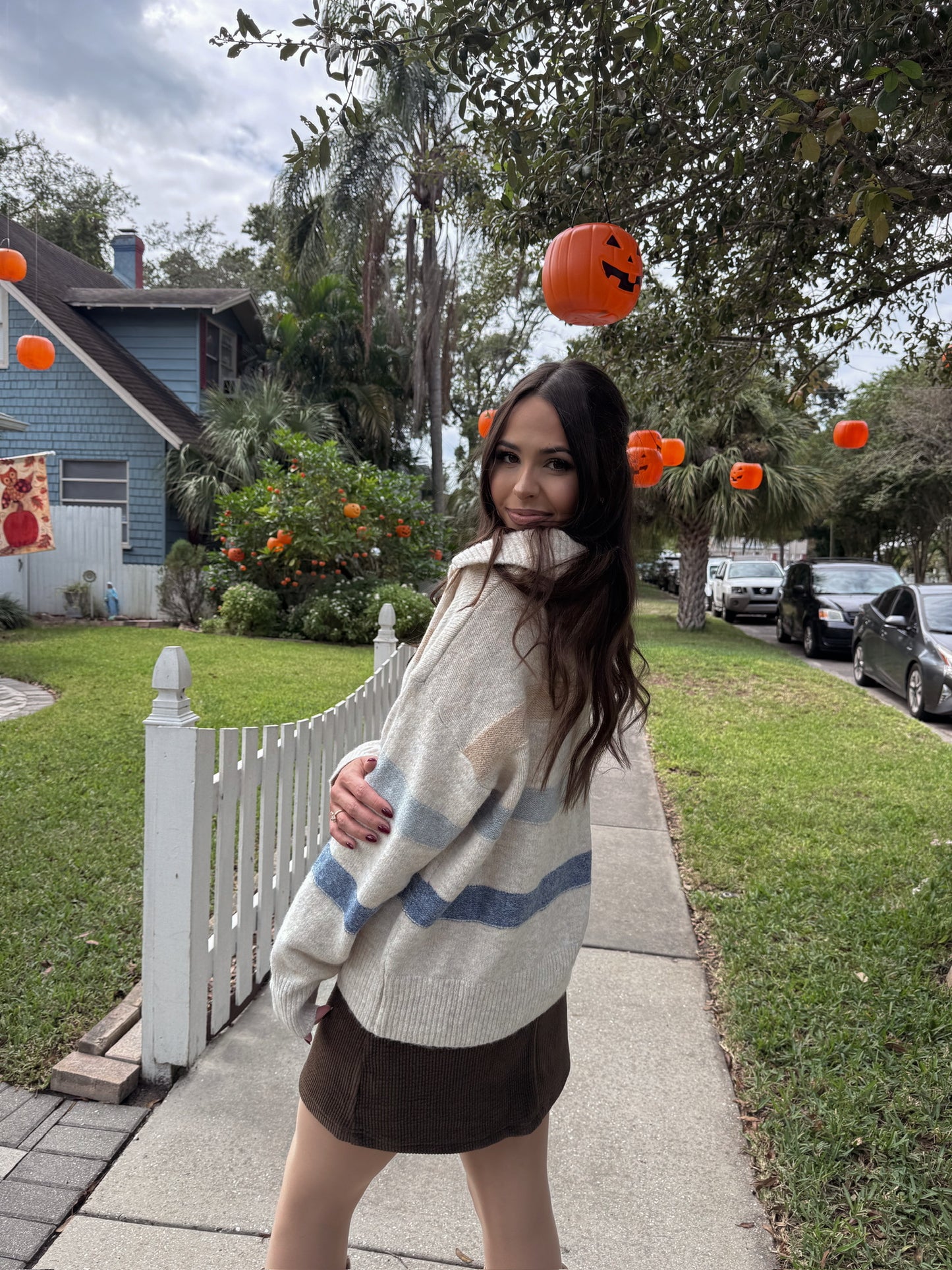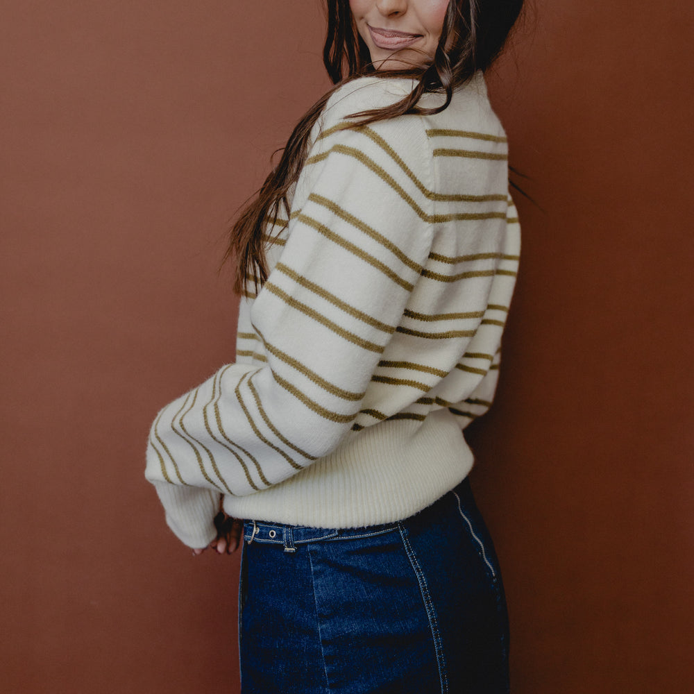 Winter Warmth Chunky Stripe Sweater Cream/Camel
