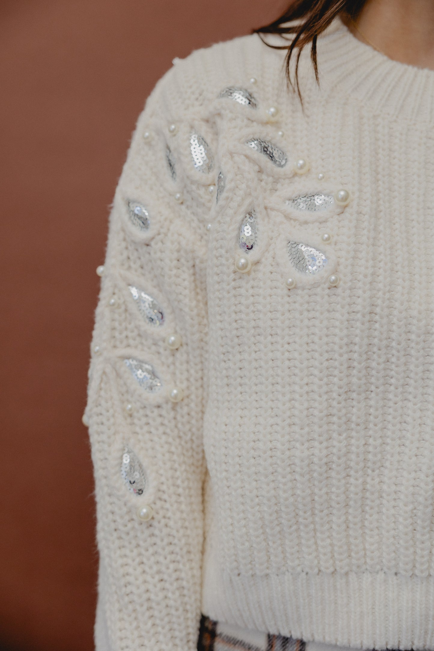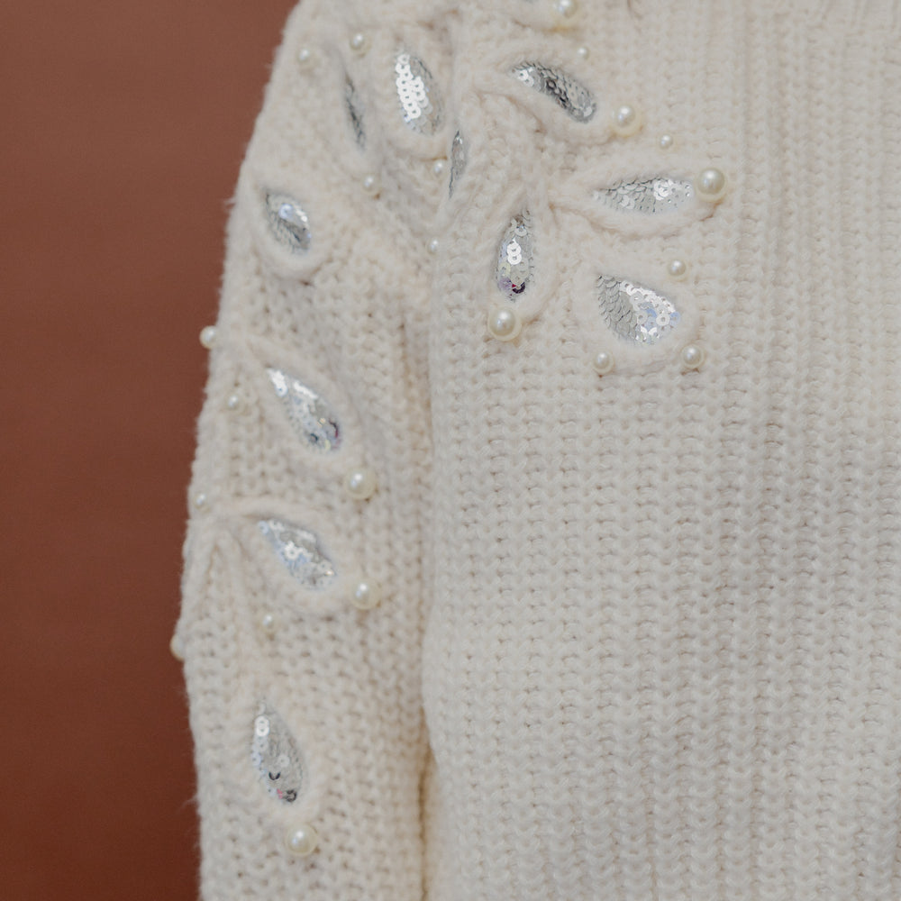 Monroe Leaf Cut Out Sweater Ivory/Silver
