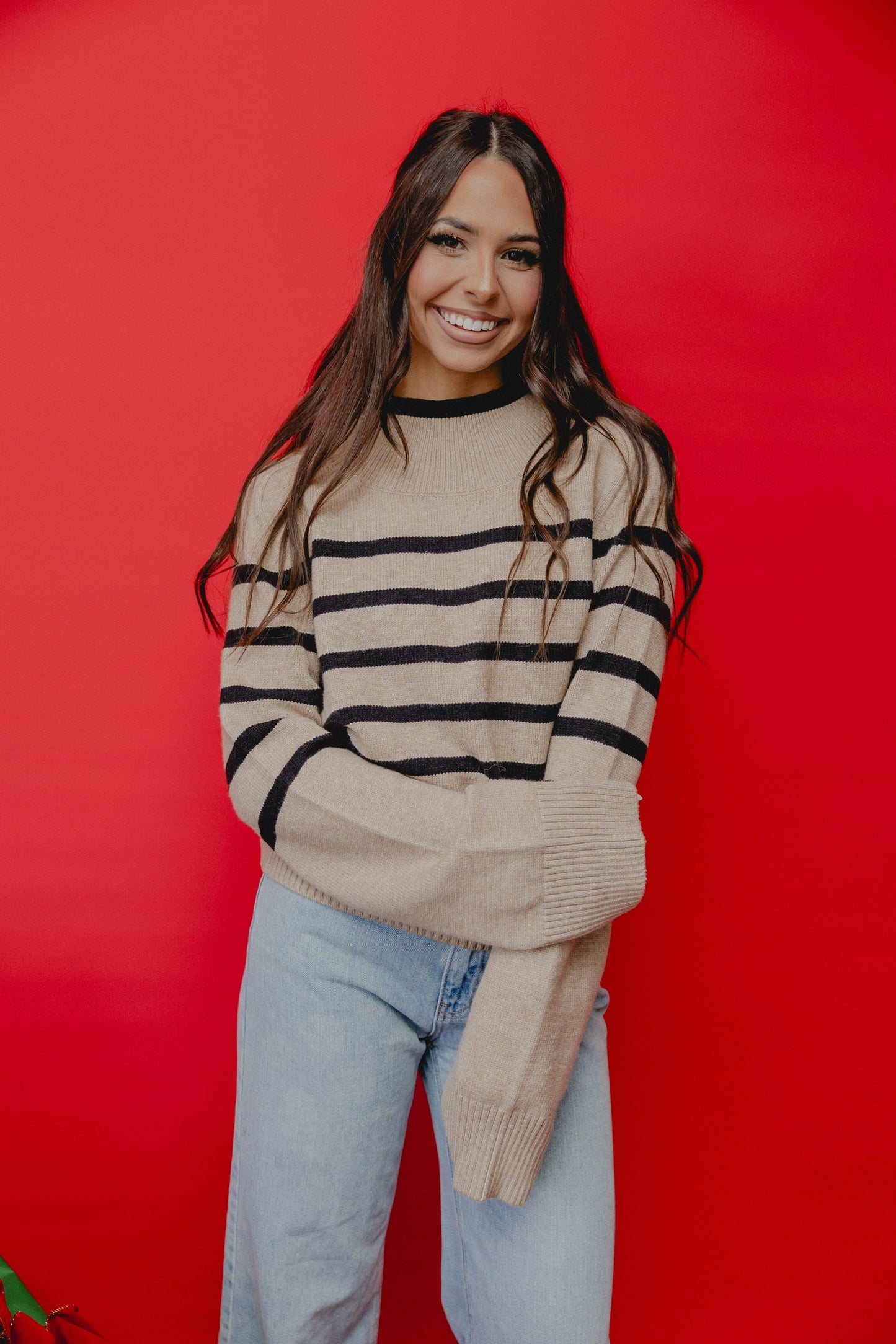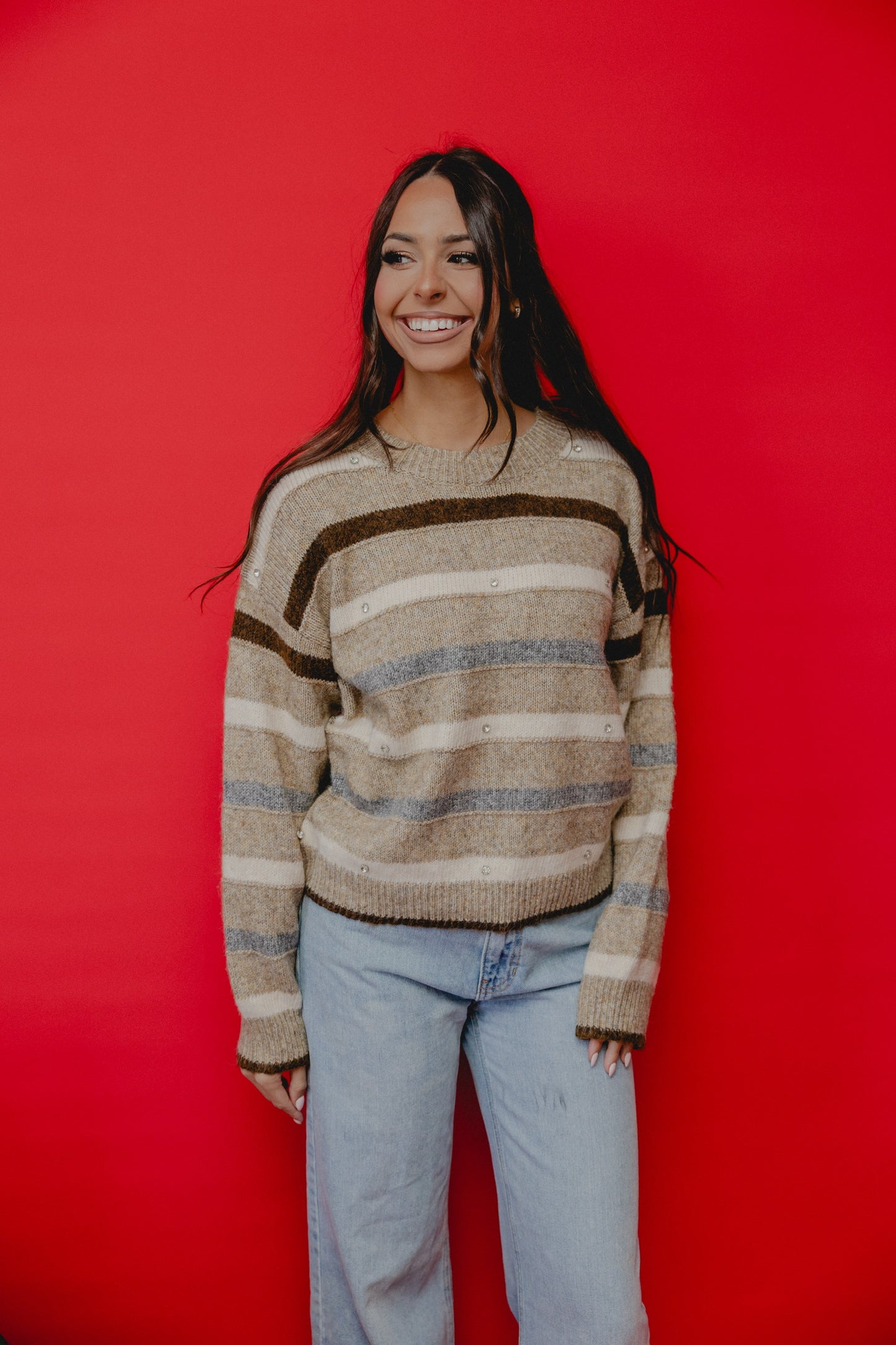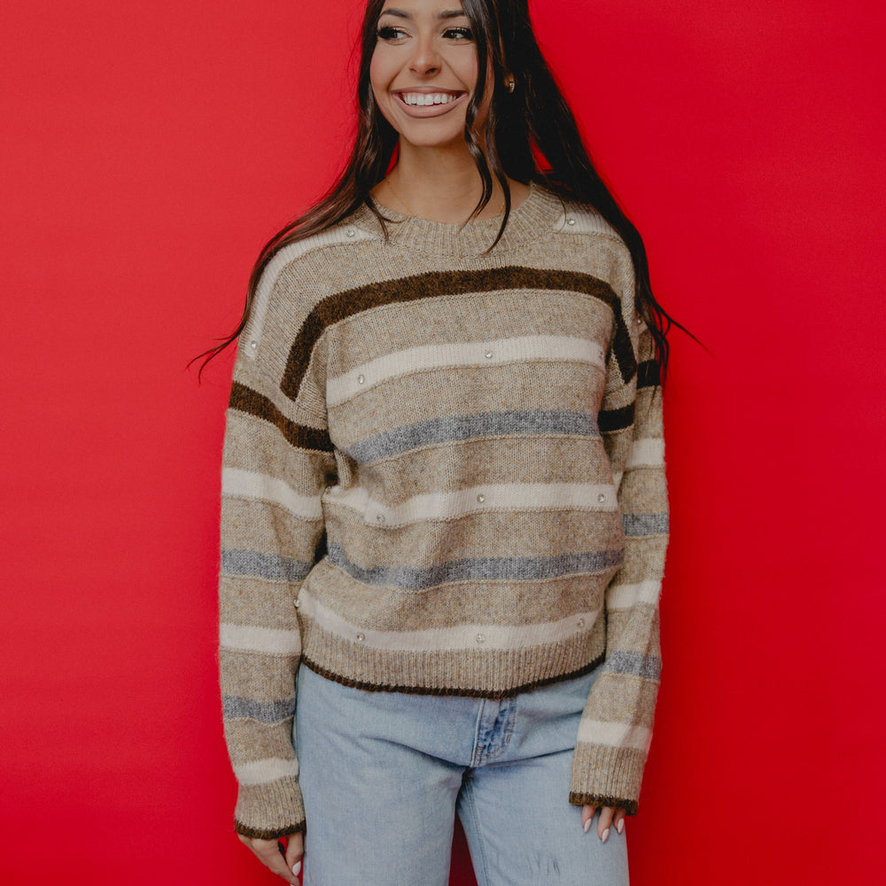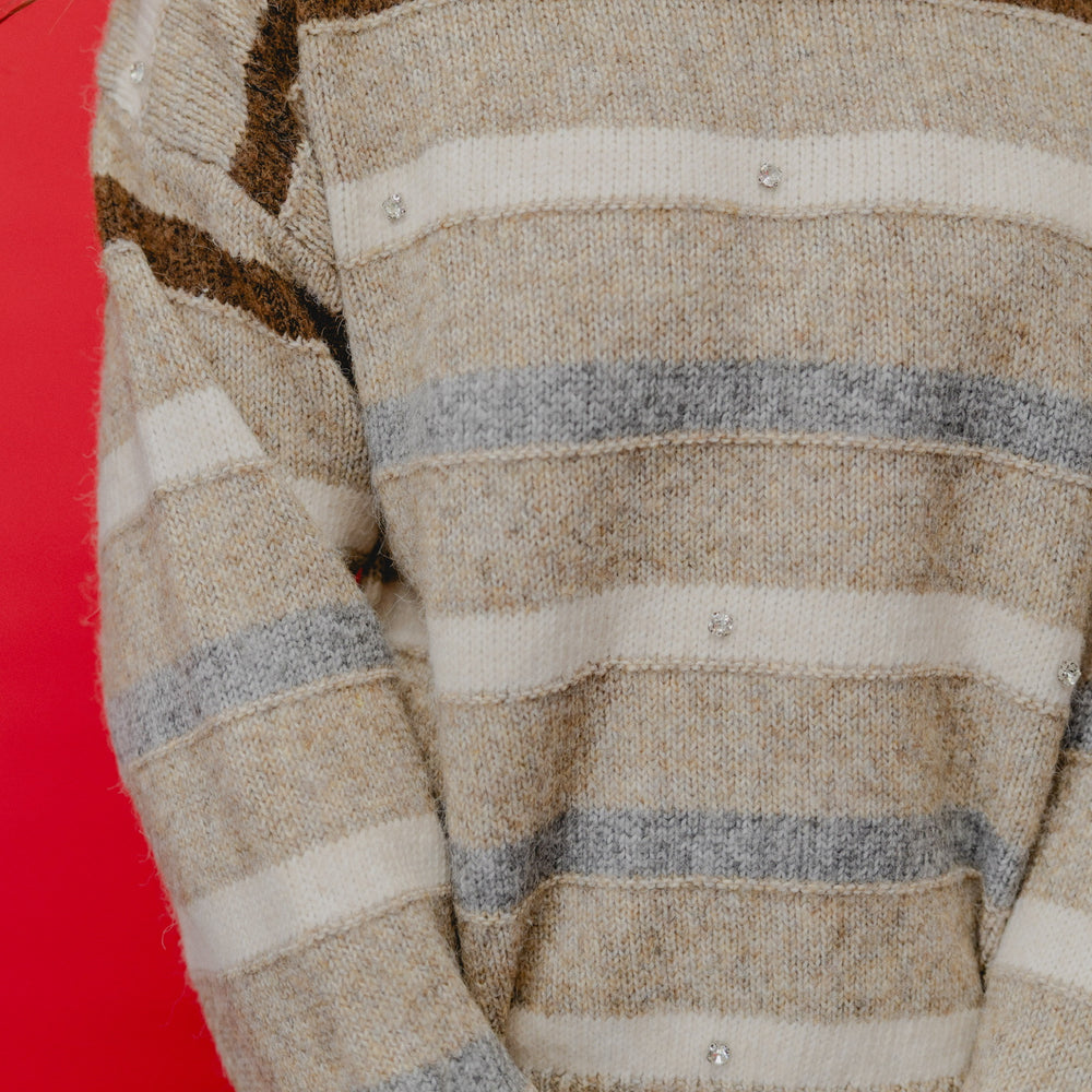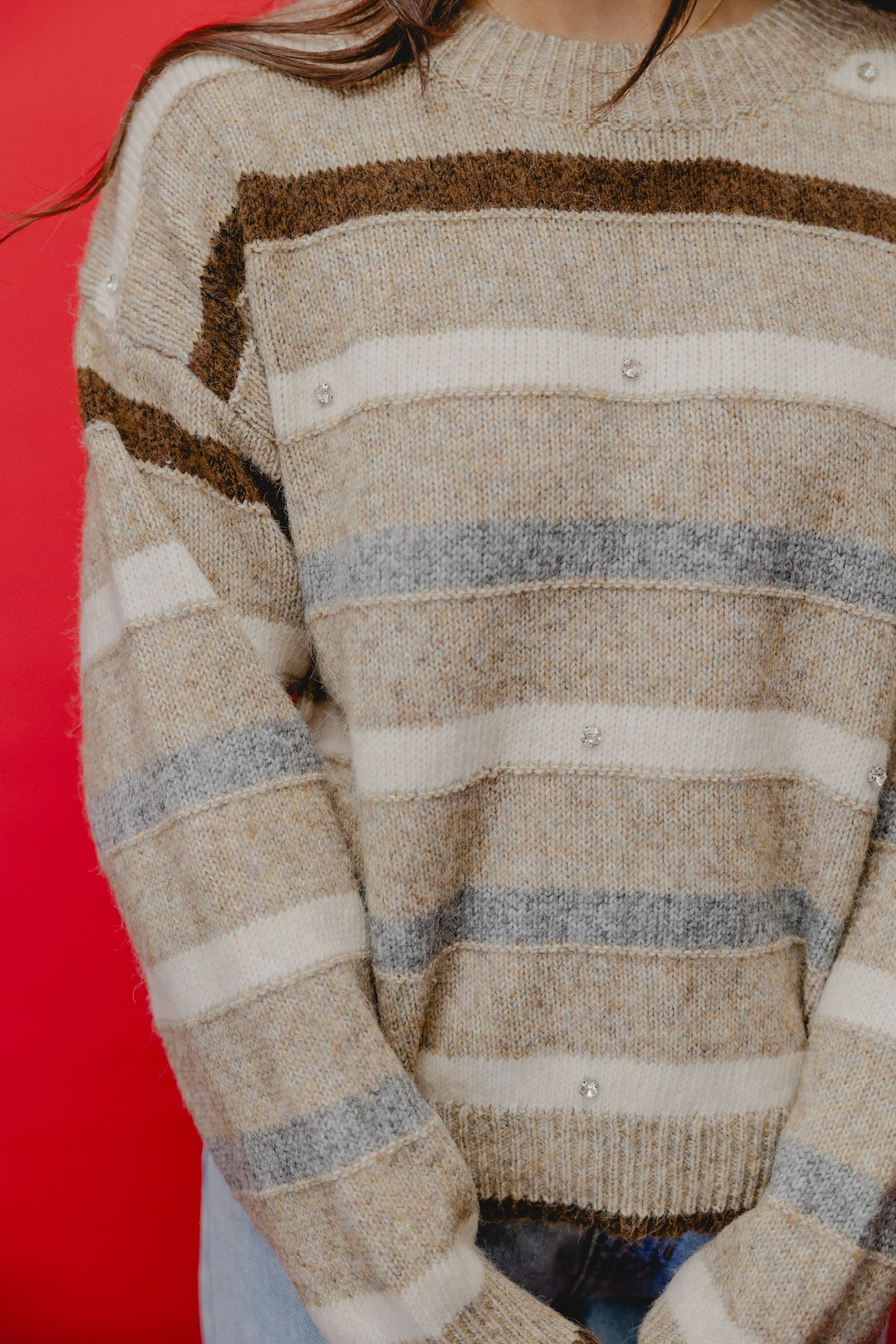 Noelle Stripe Rhinestone Trim Sweater Oat