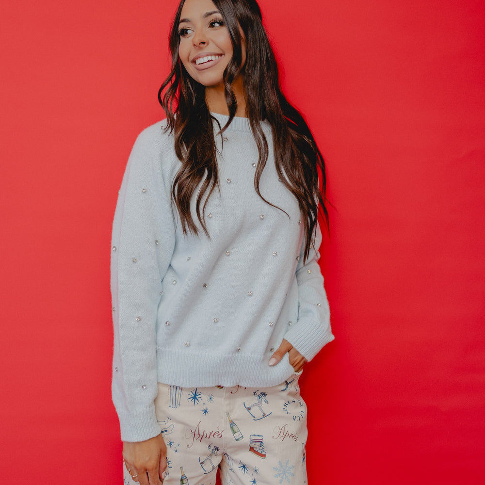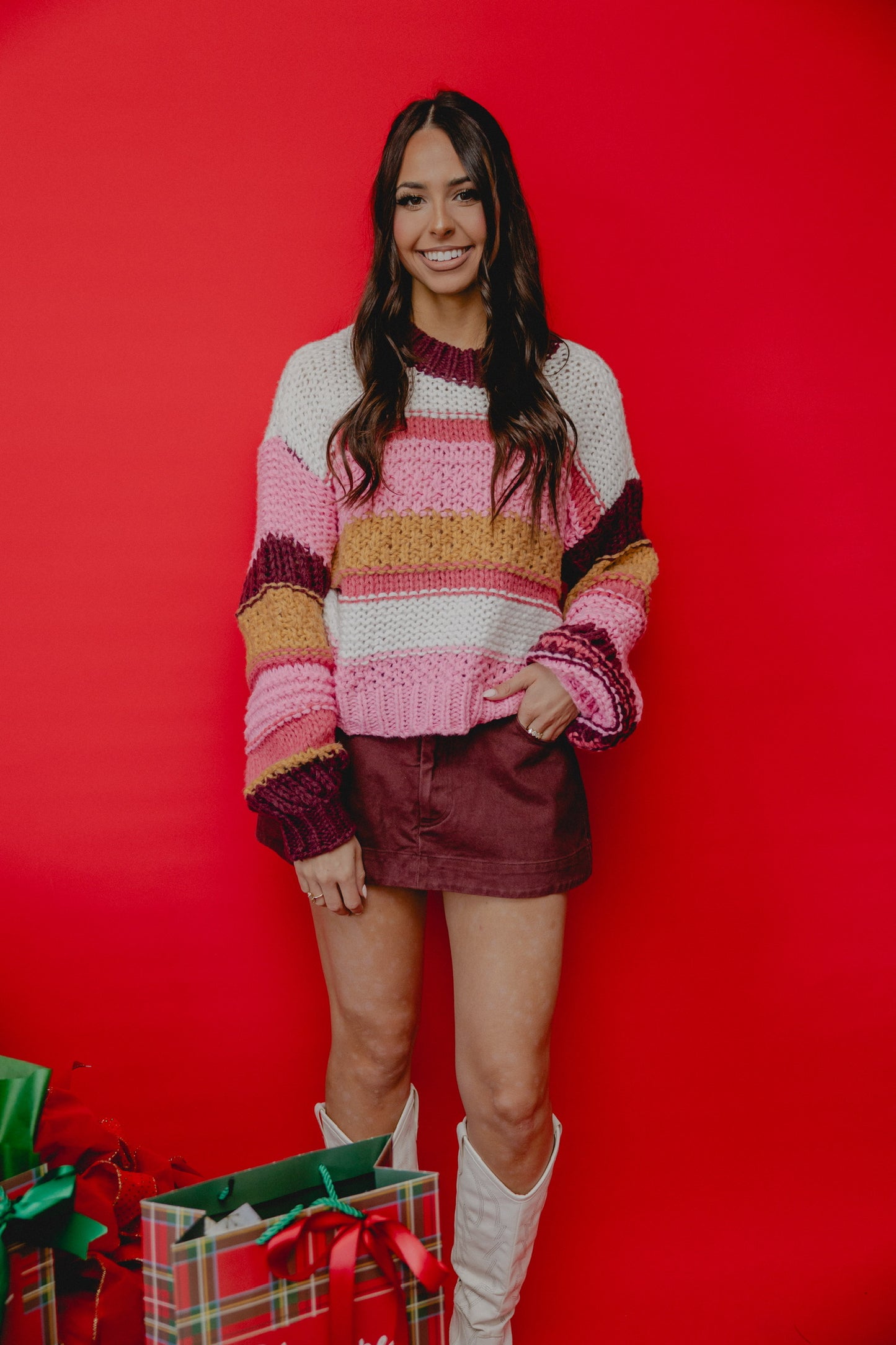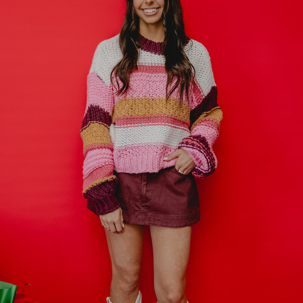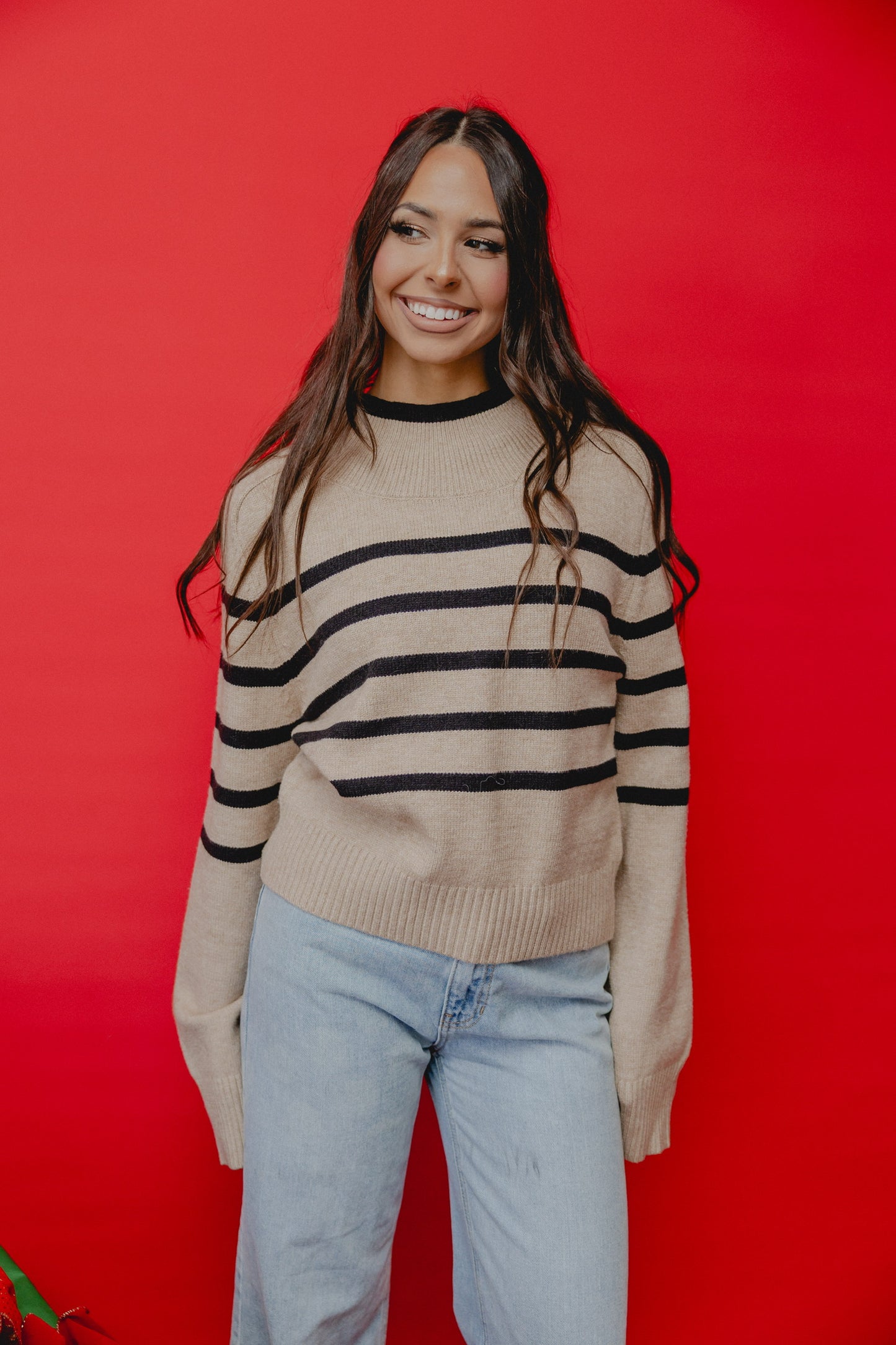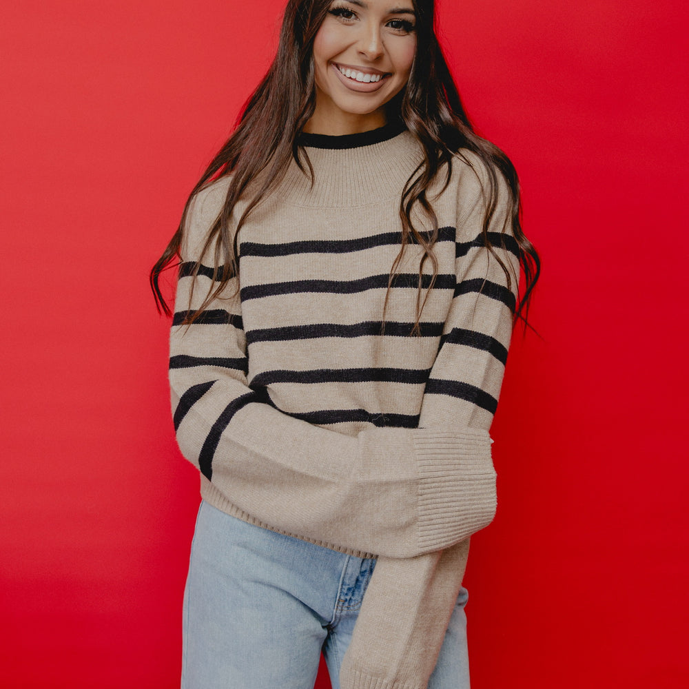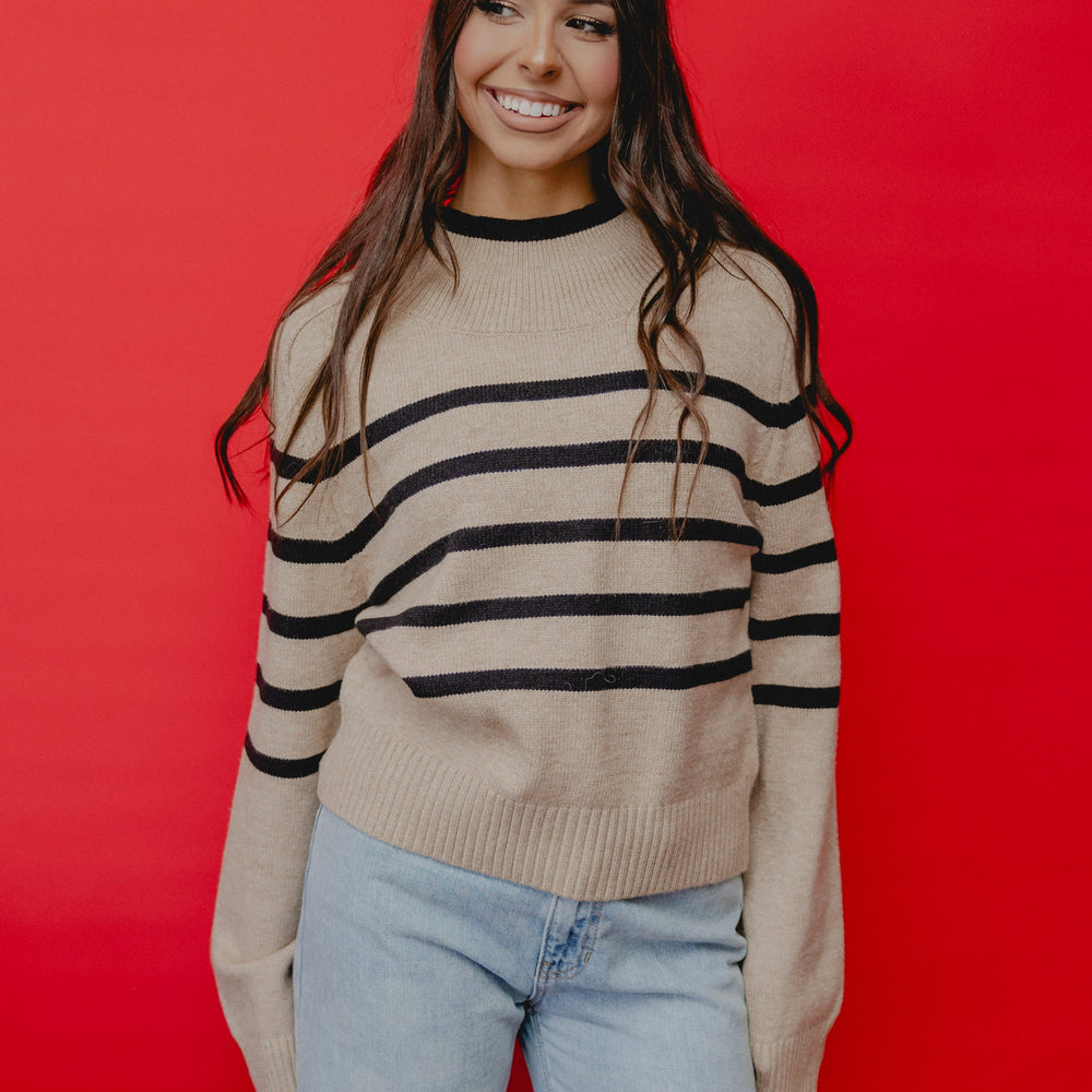 Noelle Stripe Rhinestone Trim Sweater Oat