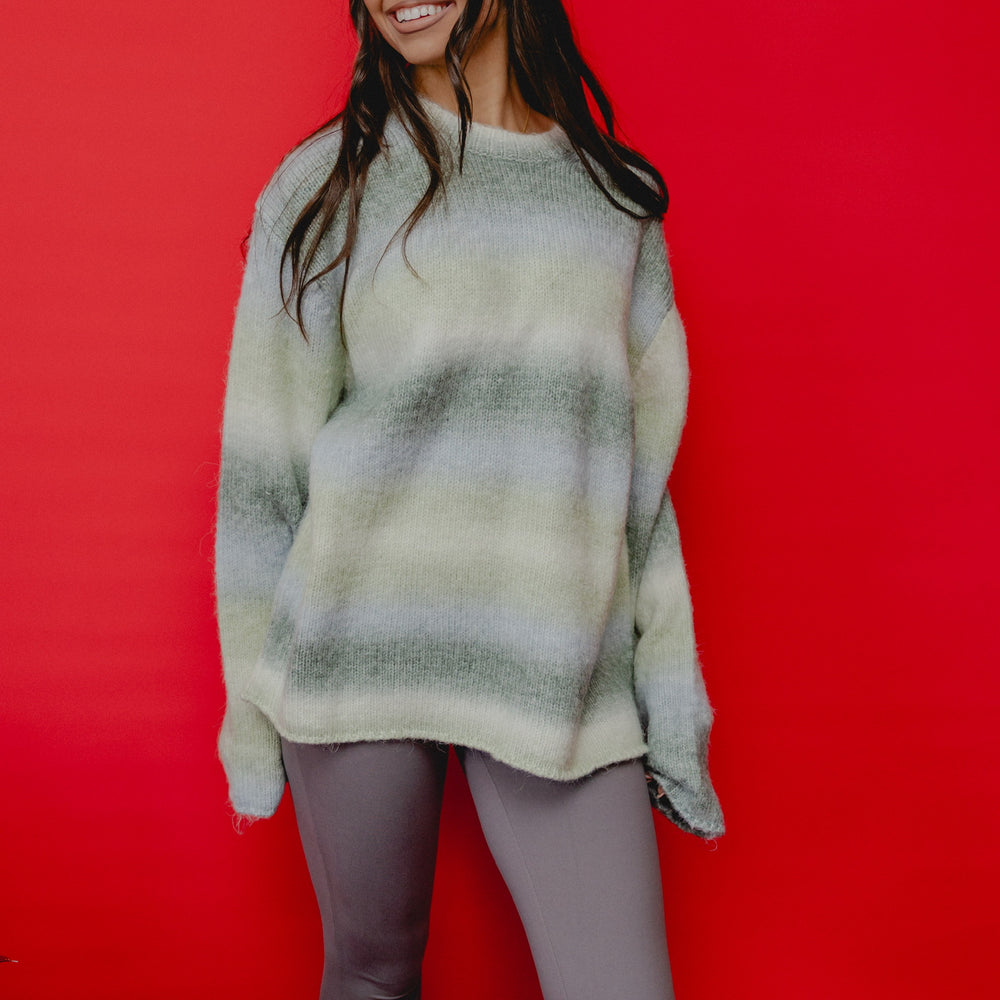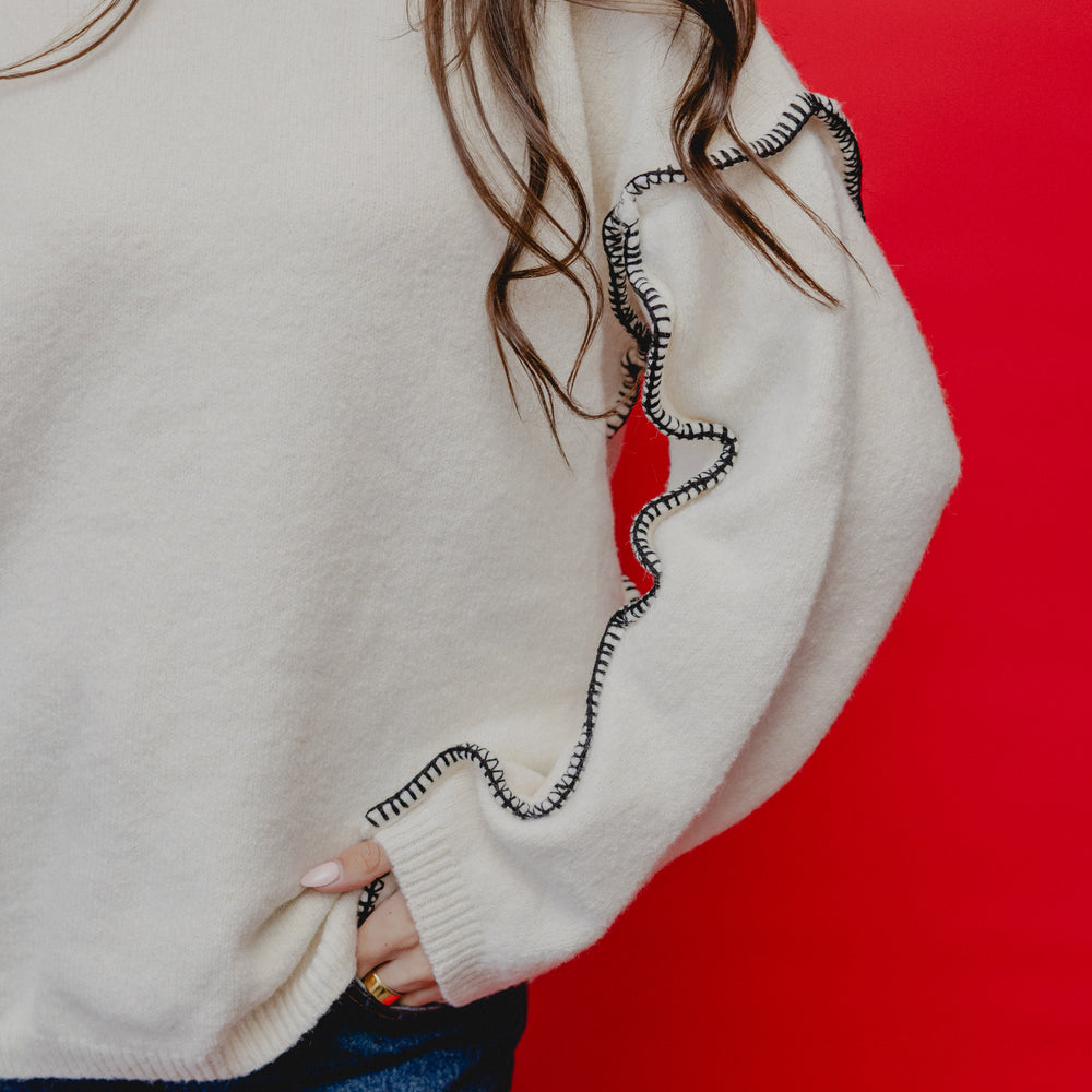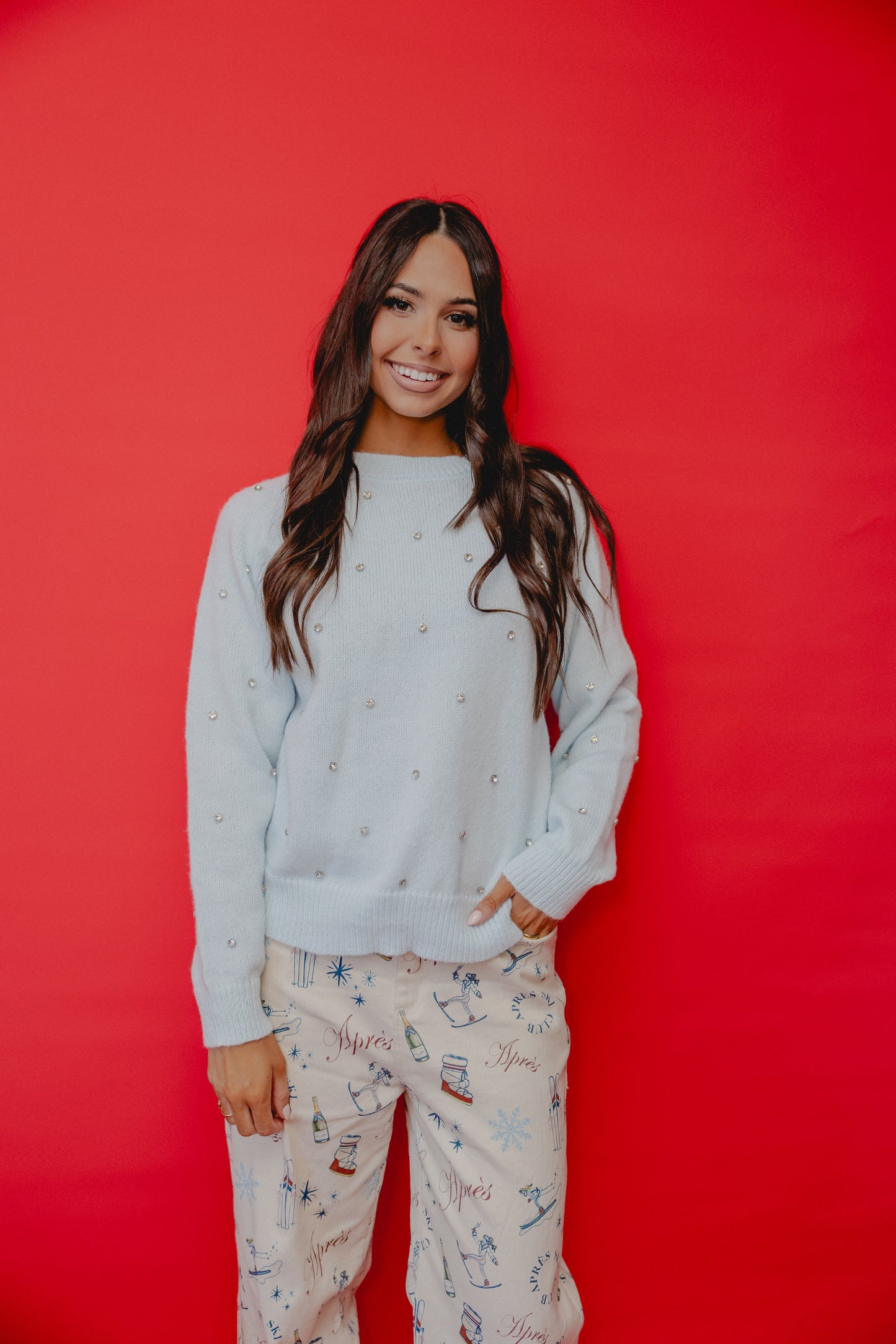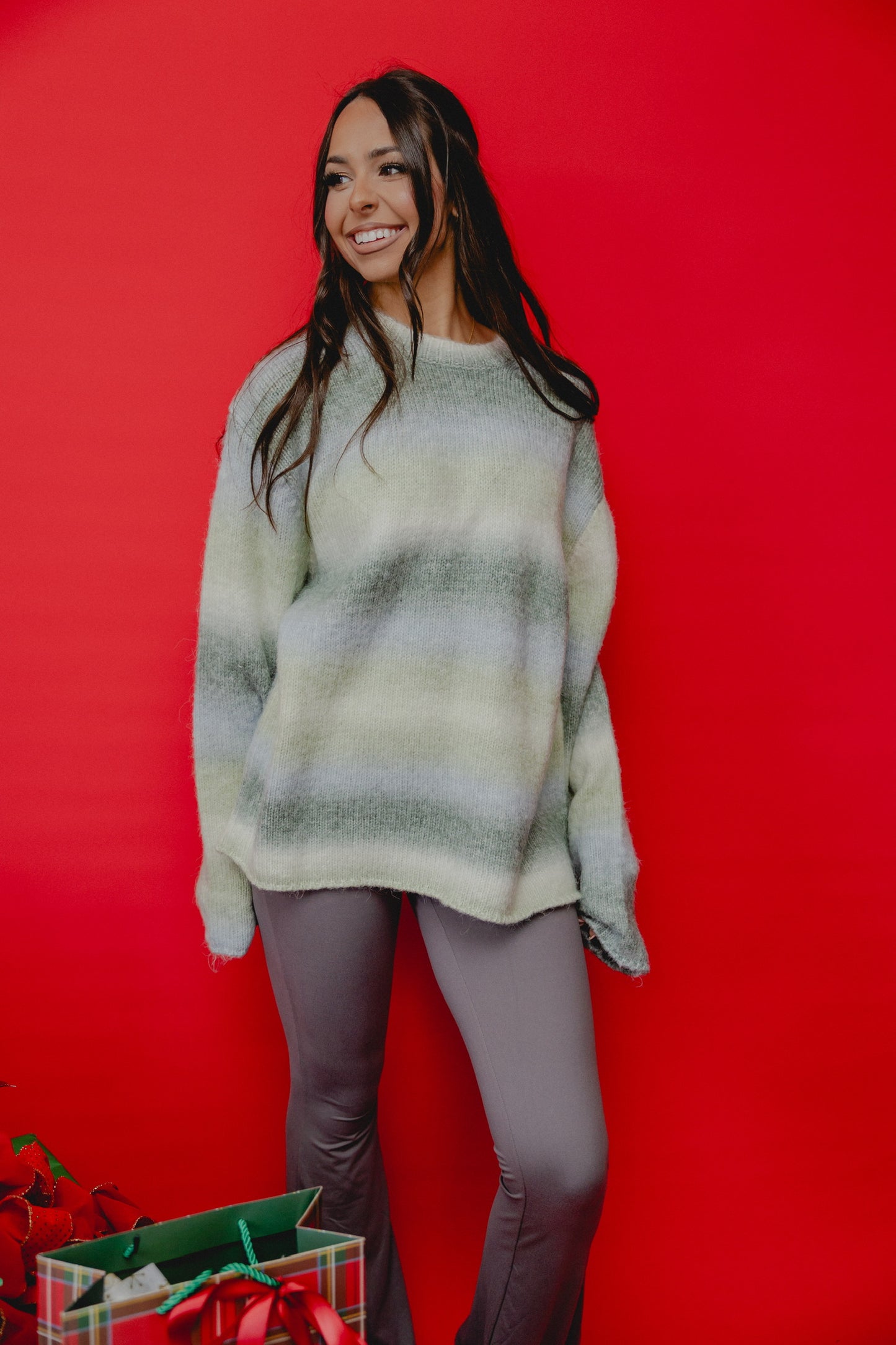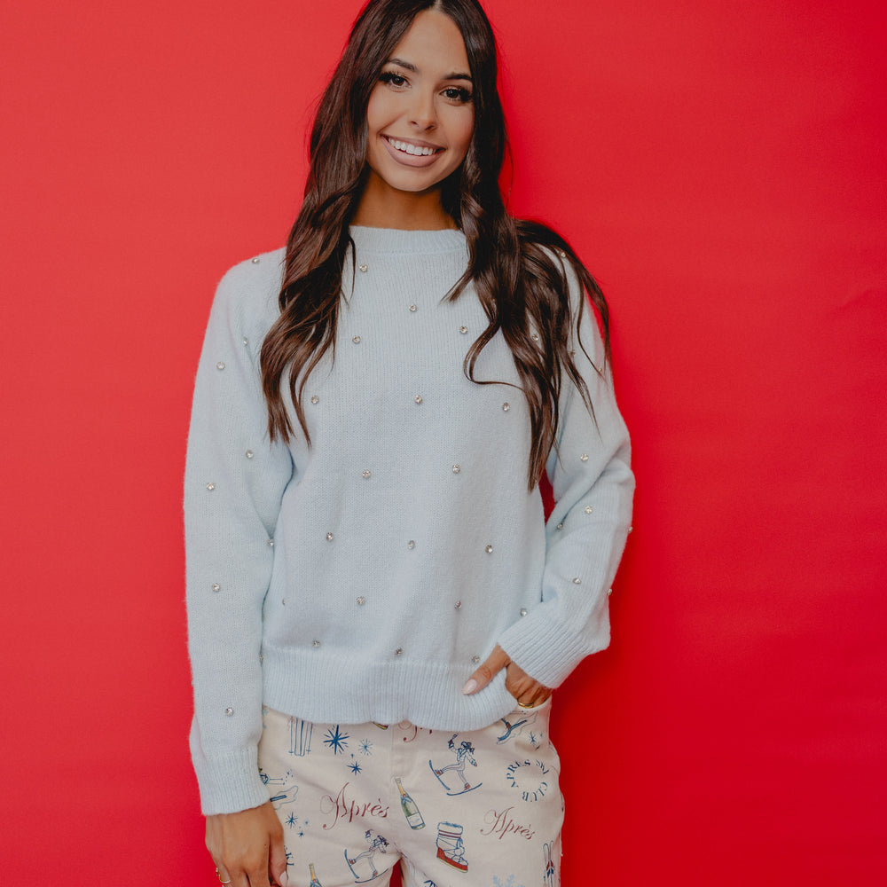 Noelle Stripe Rhinestone Trim Sweater Oat