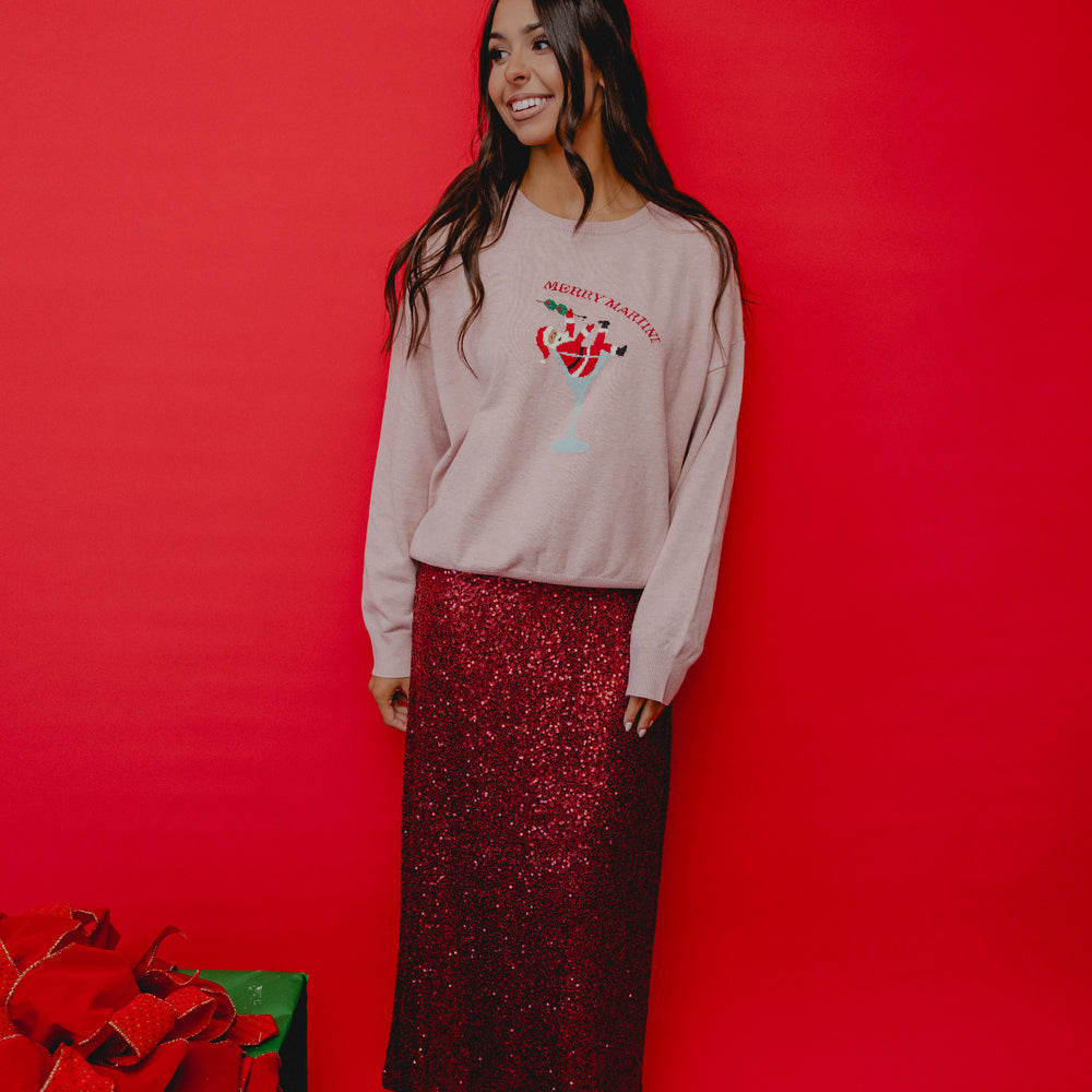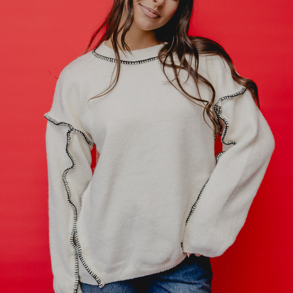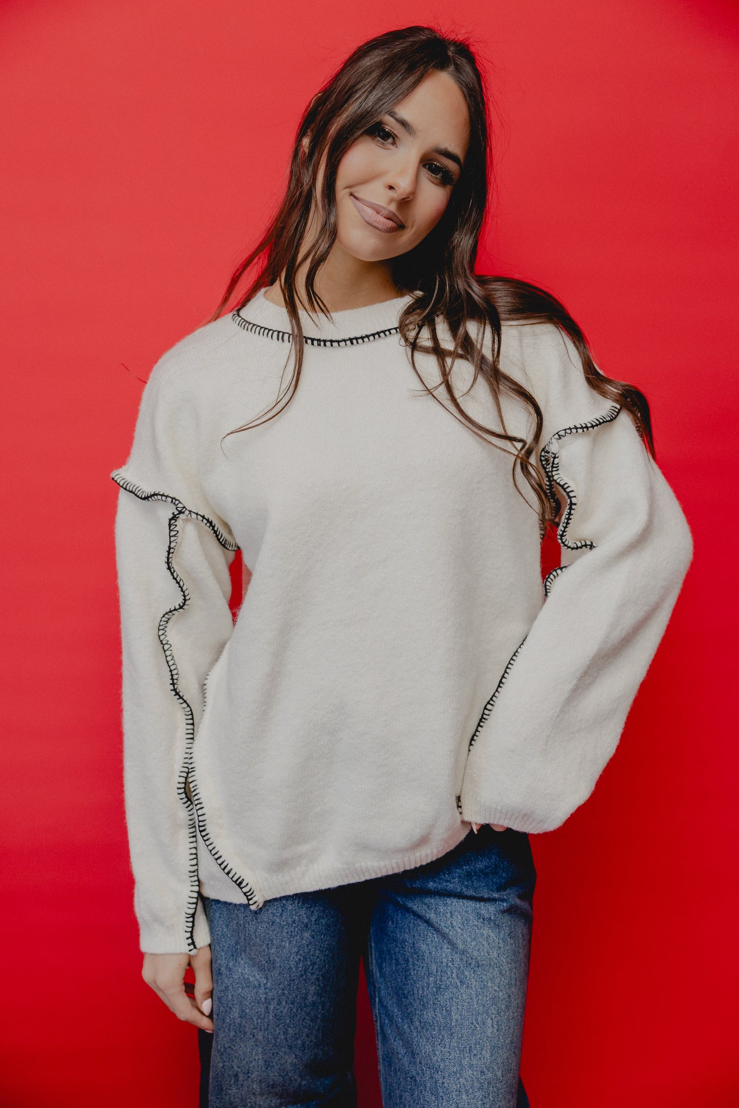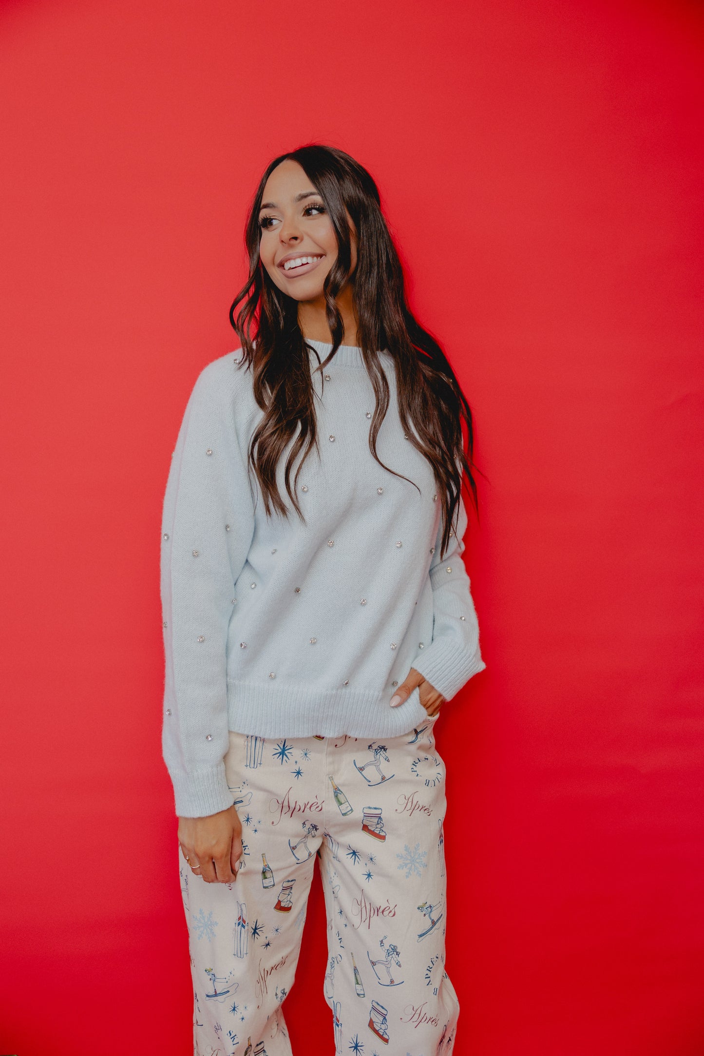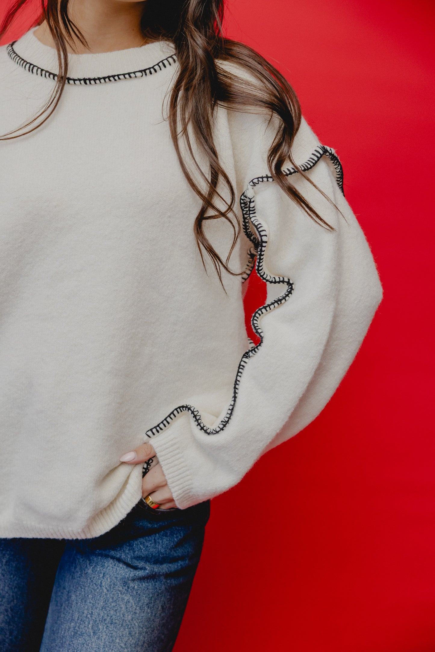 Noelle Stripe Rhinestone Trim Sweater Oat