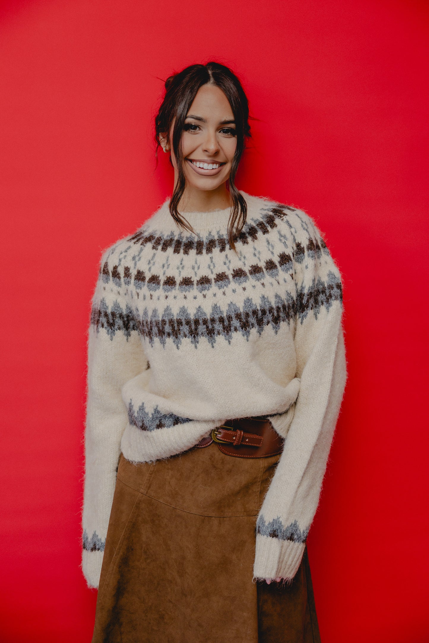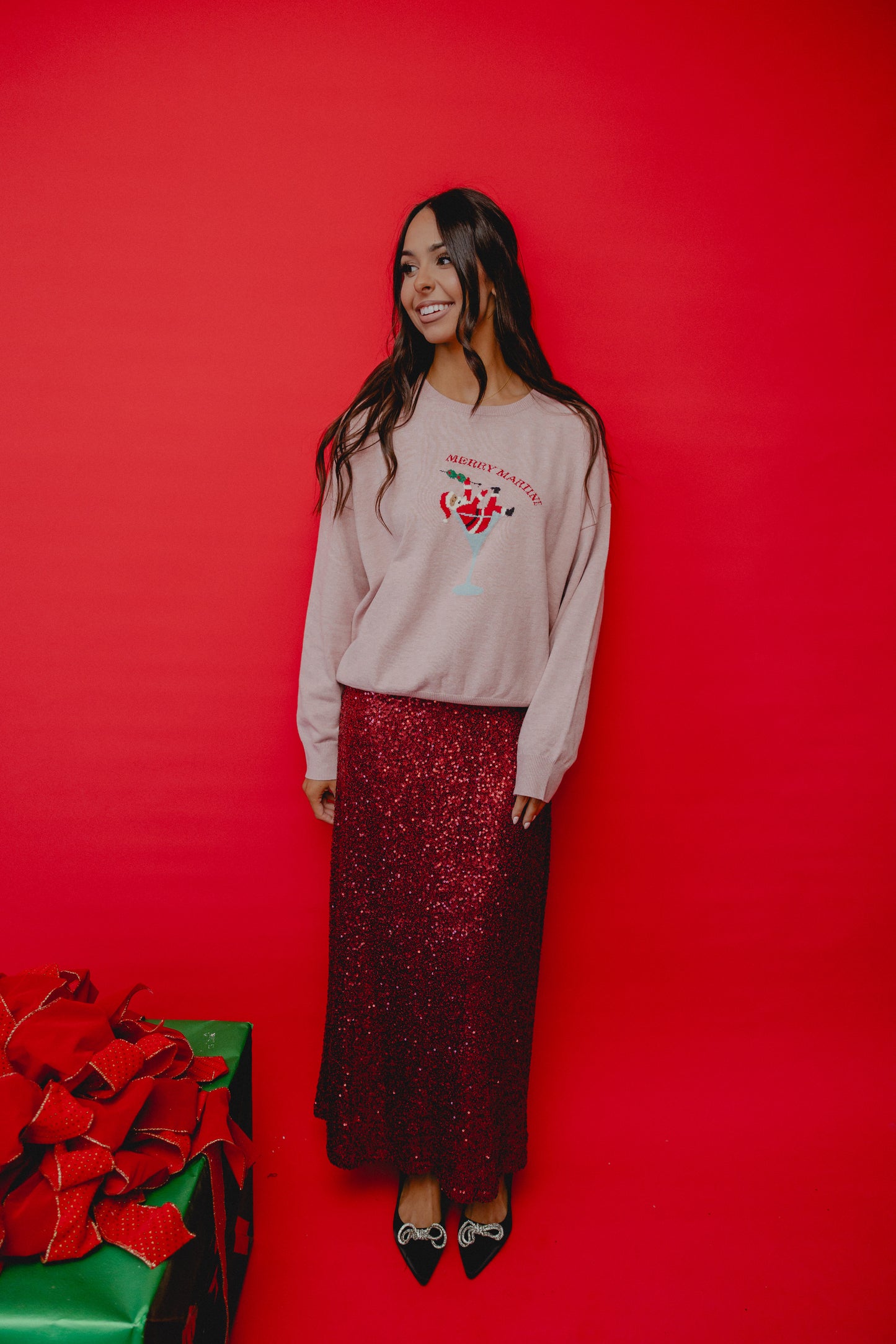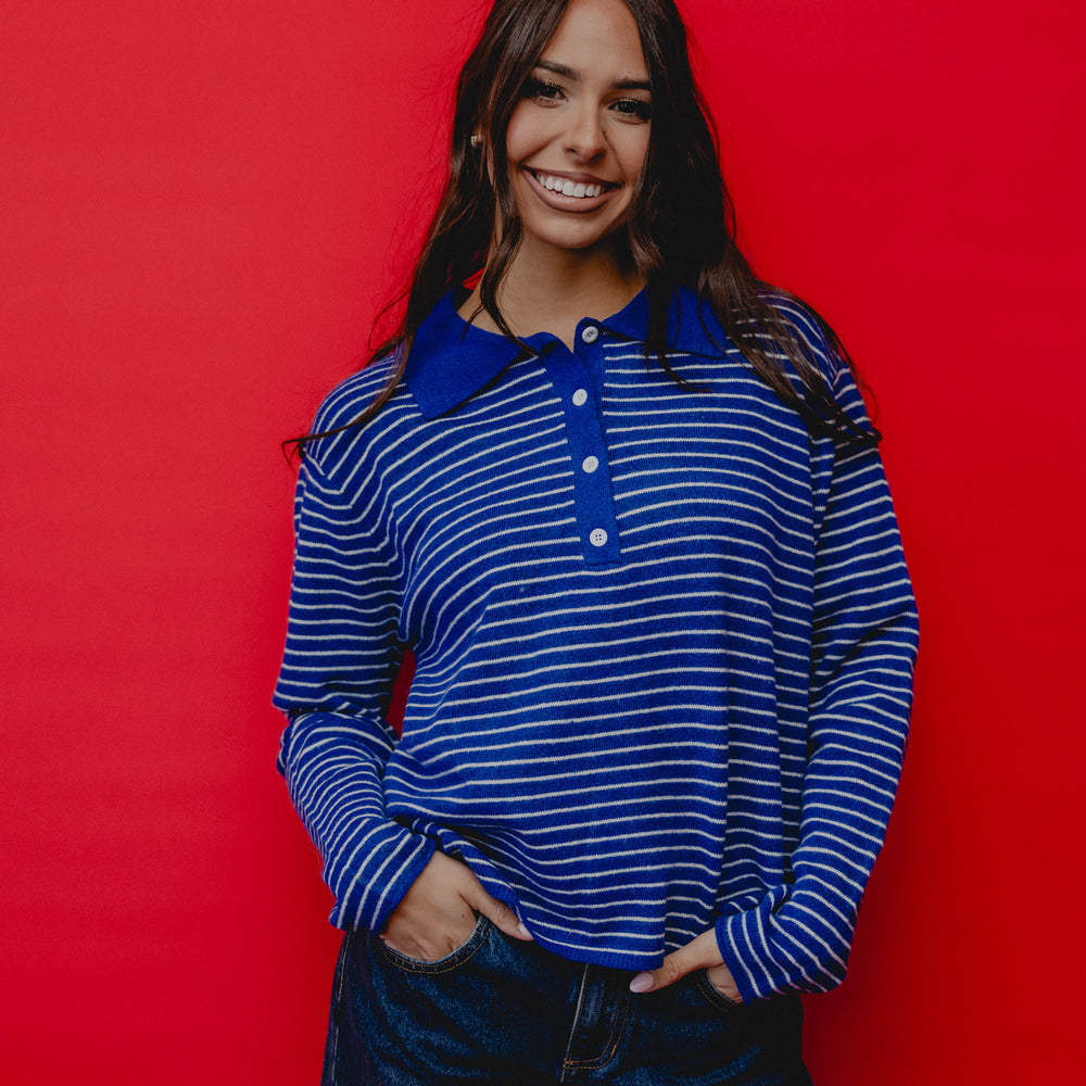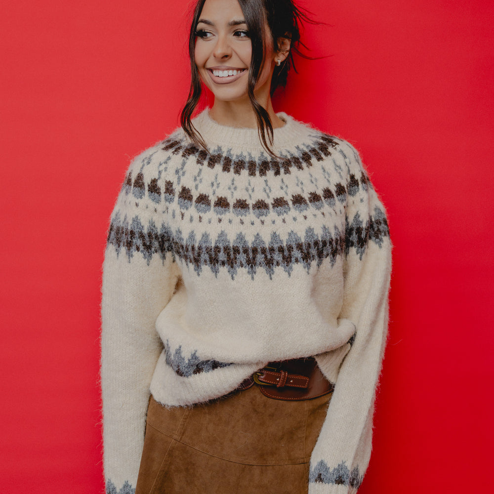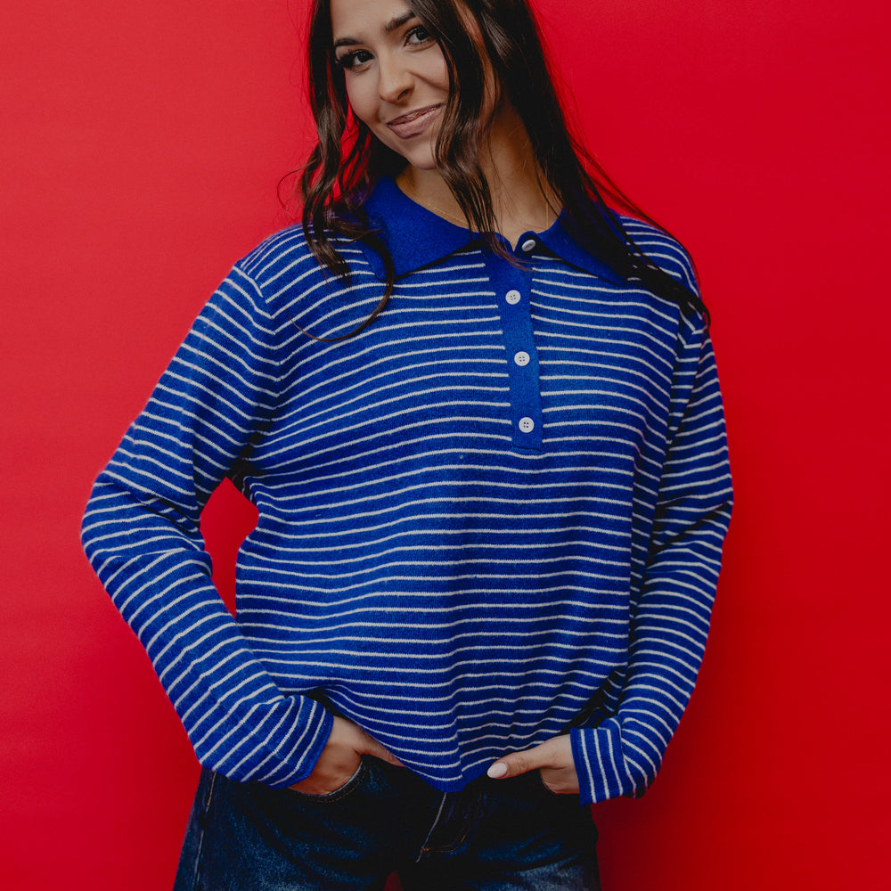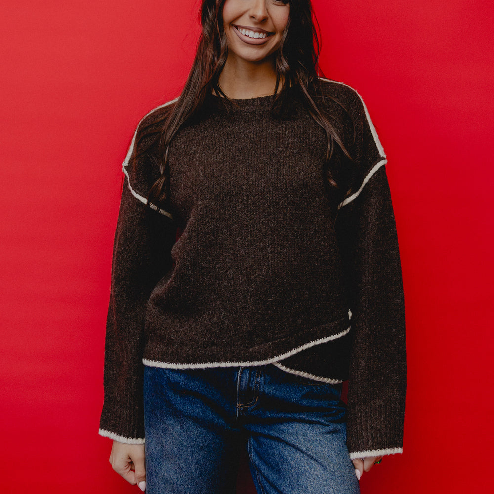 Noelle Stripe Rhinestone Trim Sweater Oat