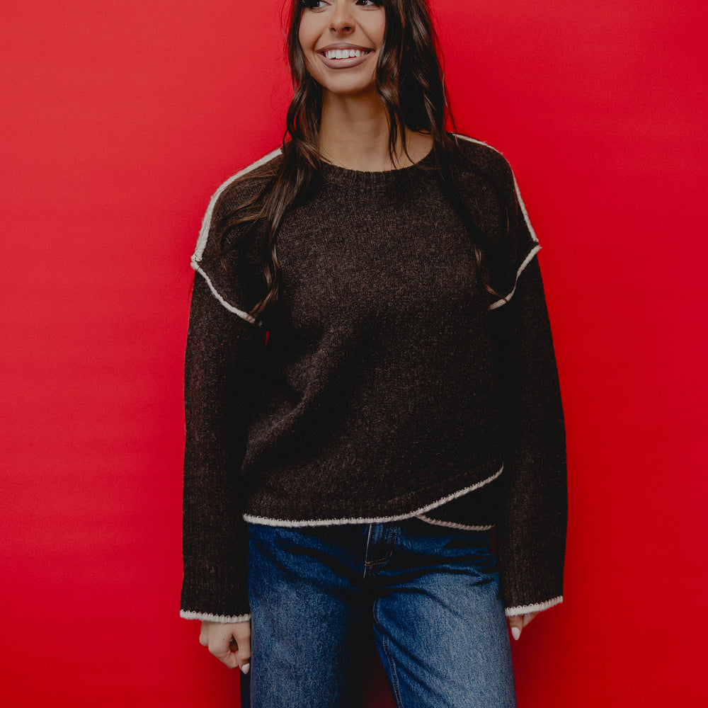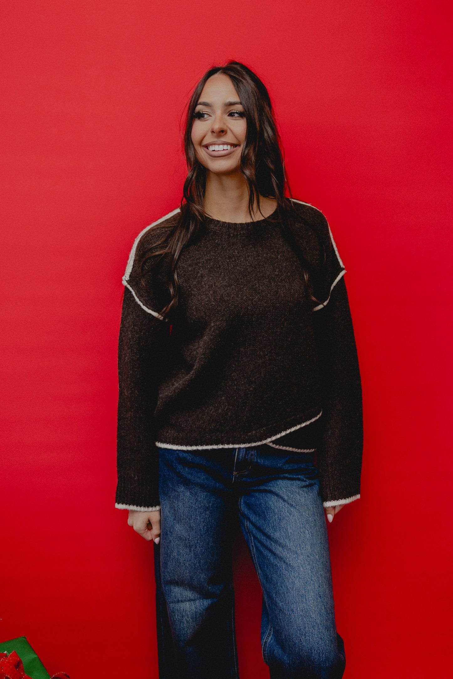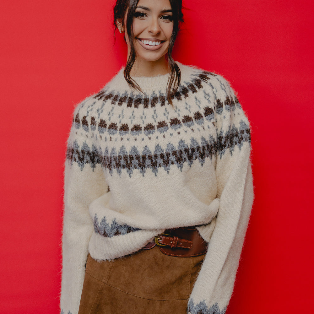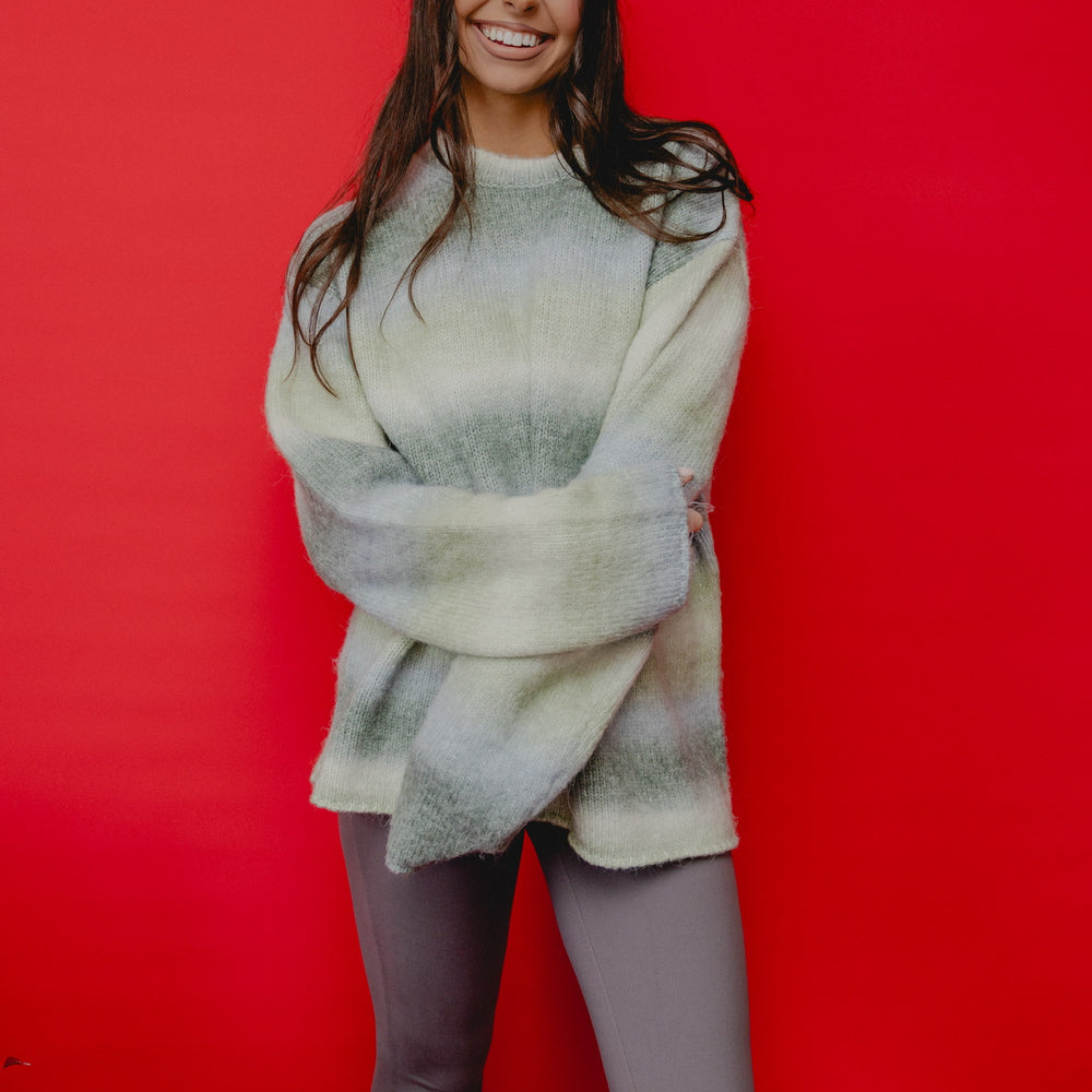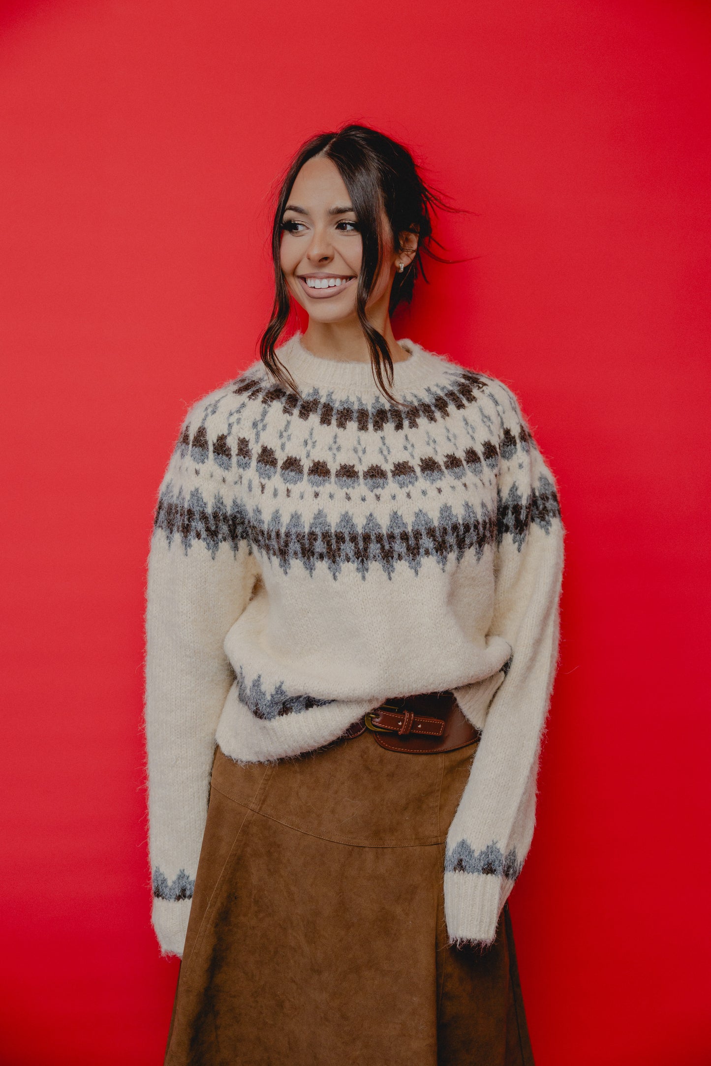 Noelle Stripe Rhinestone Trim Sweater Oat