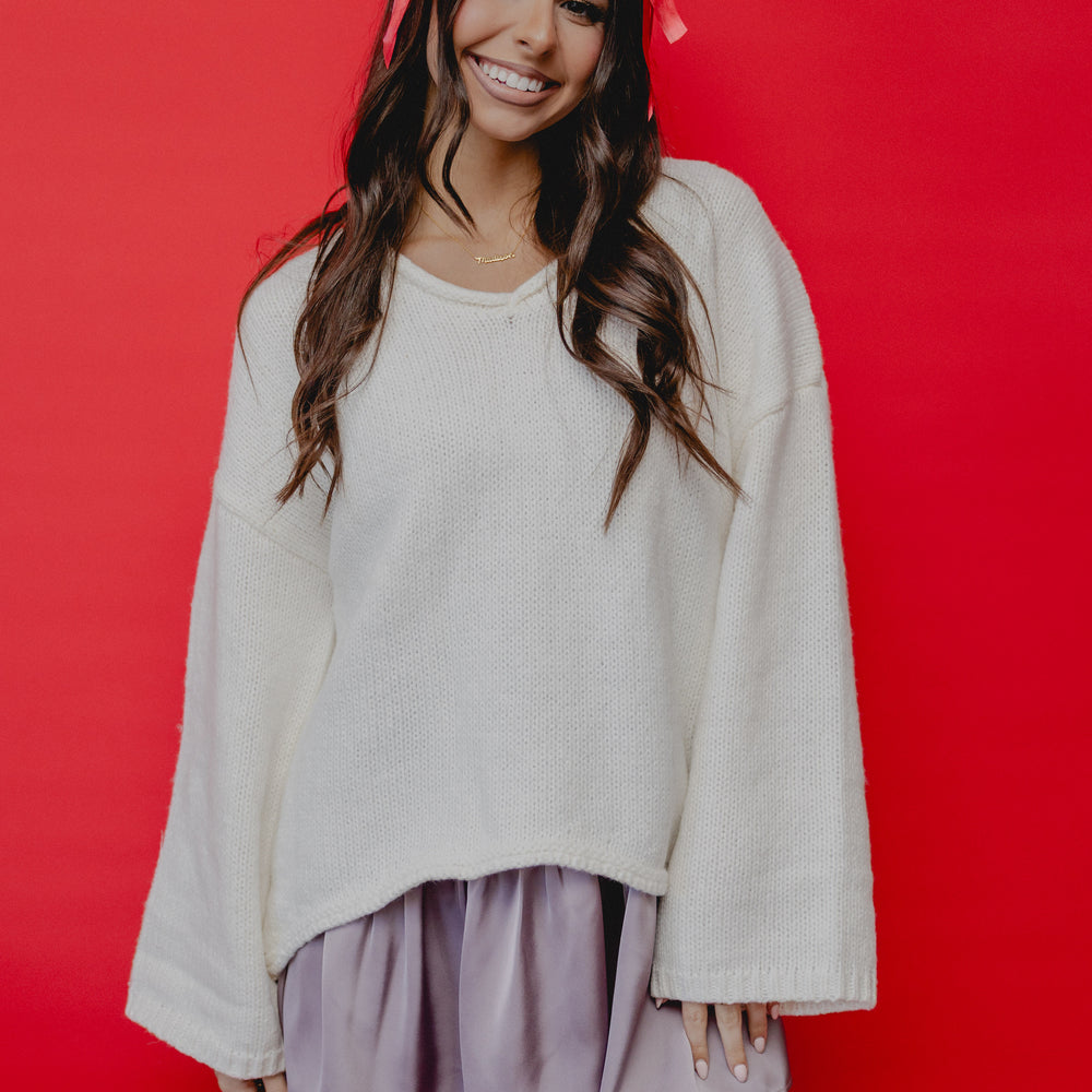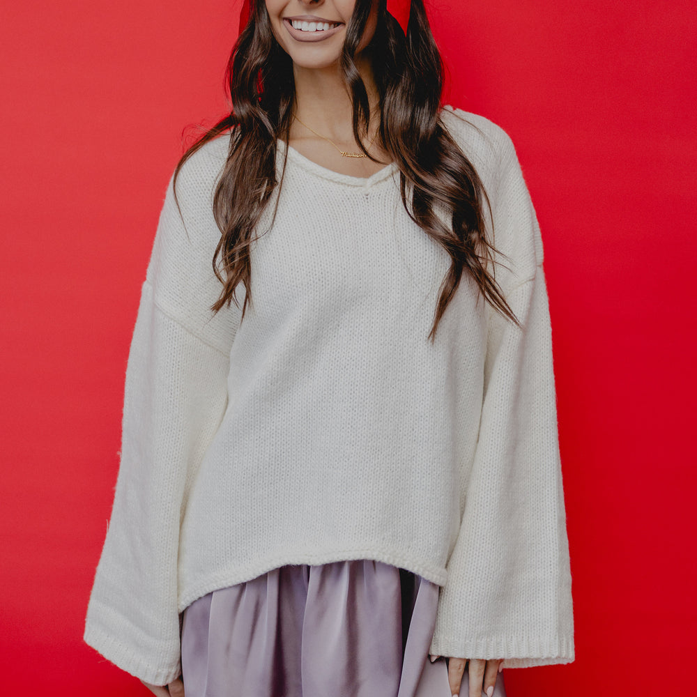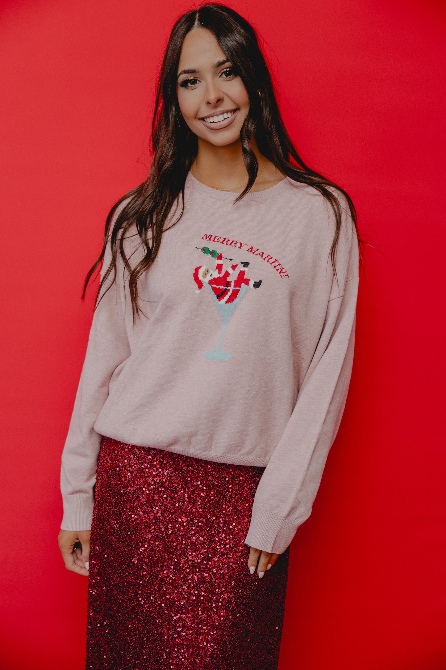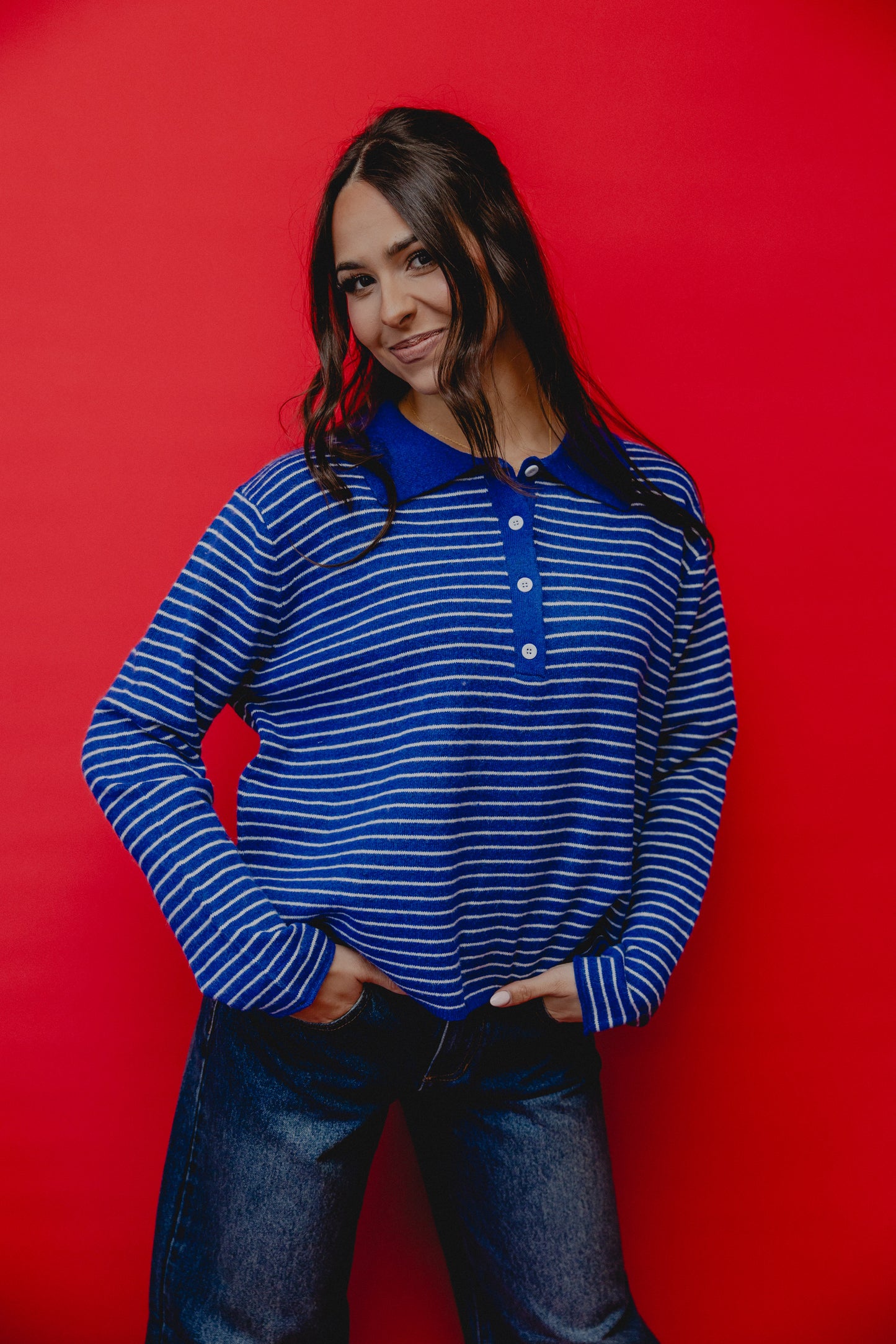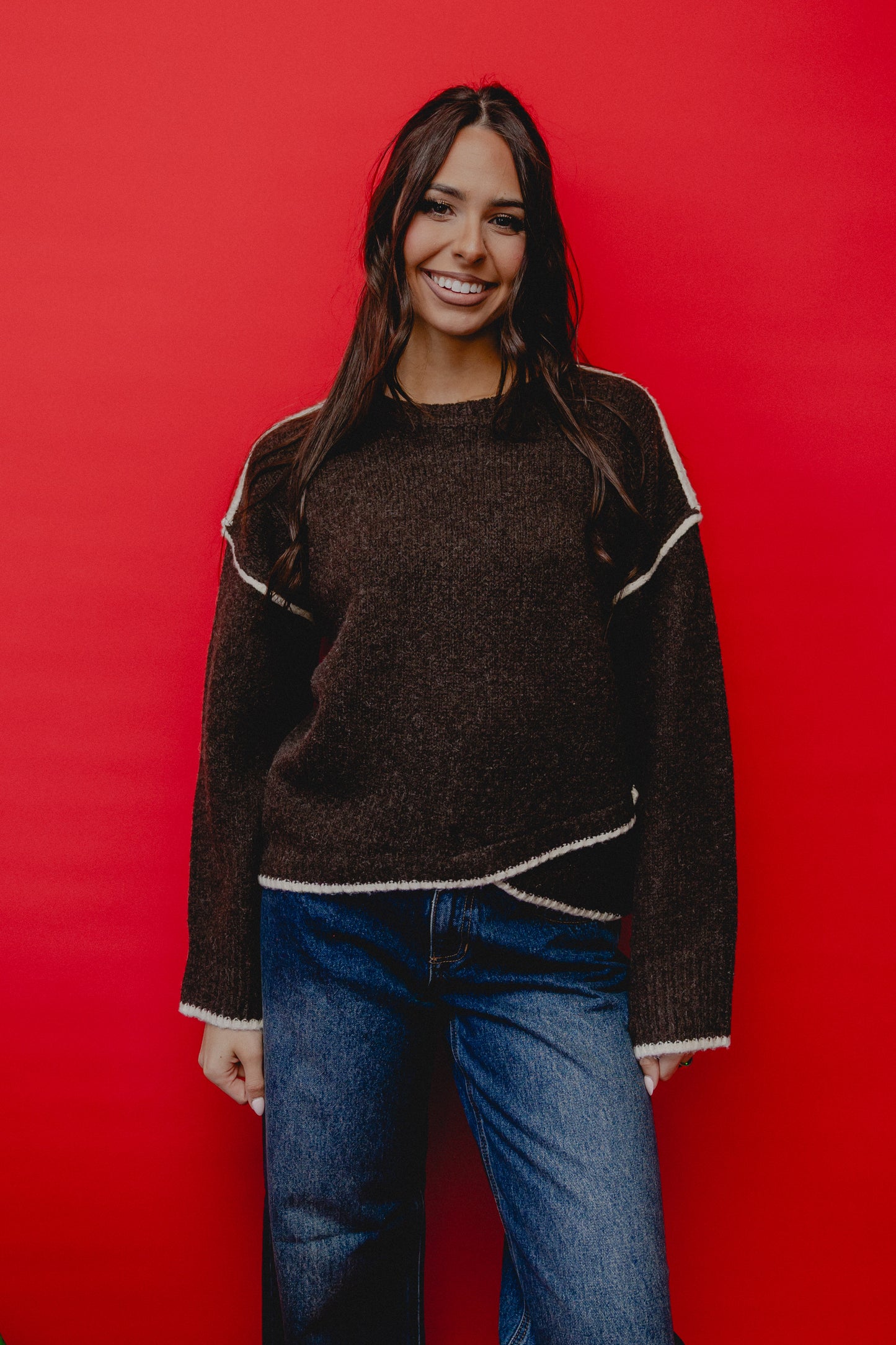 Noelle Stripe Rhinestone Trim Sweater Oat