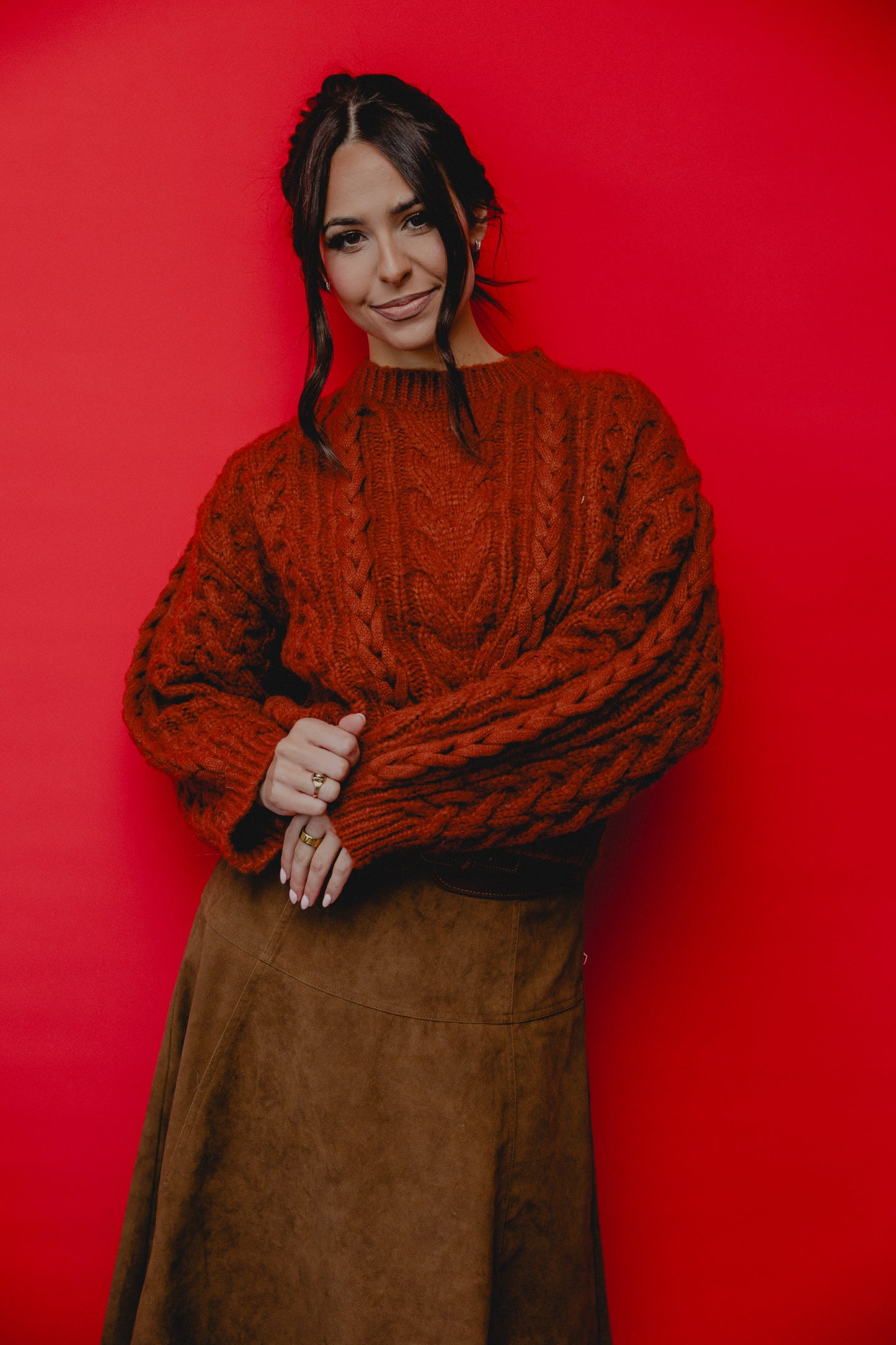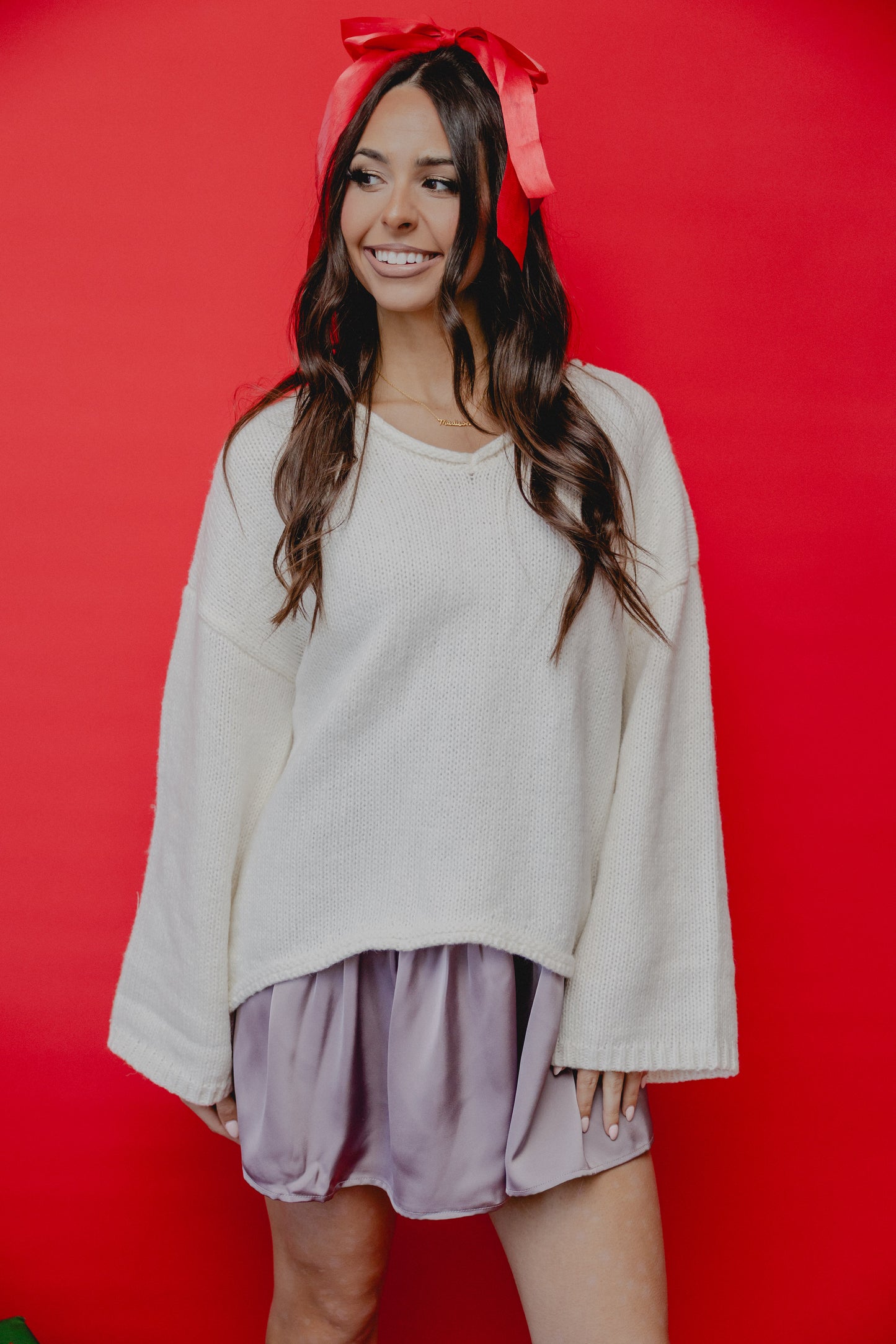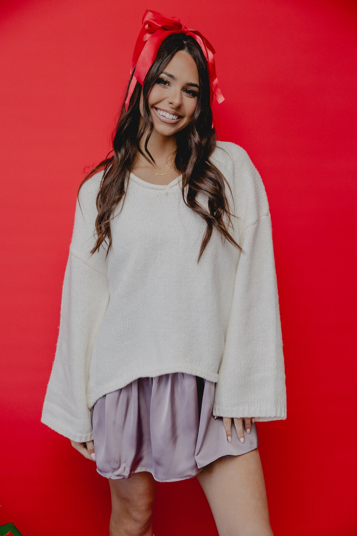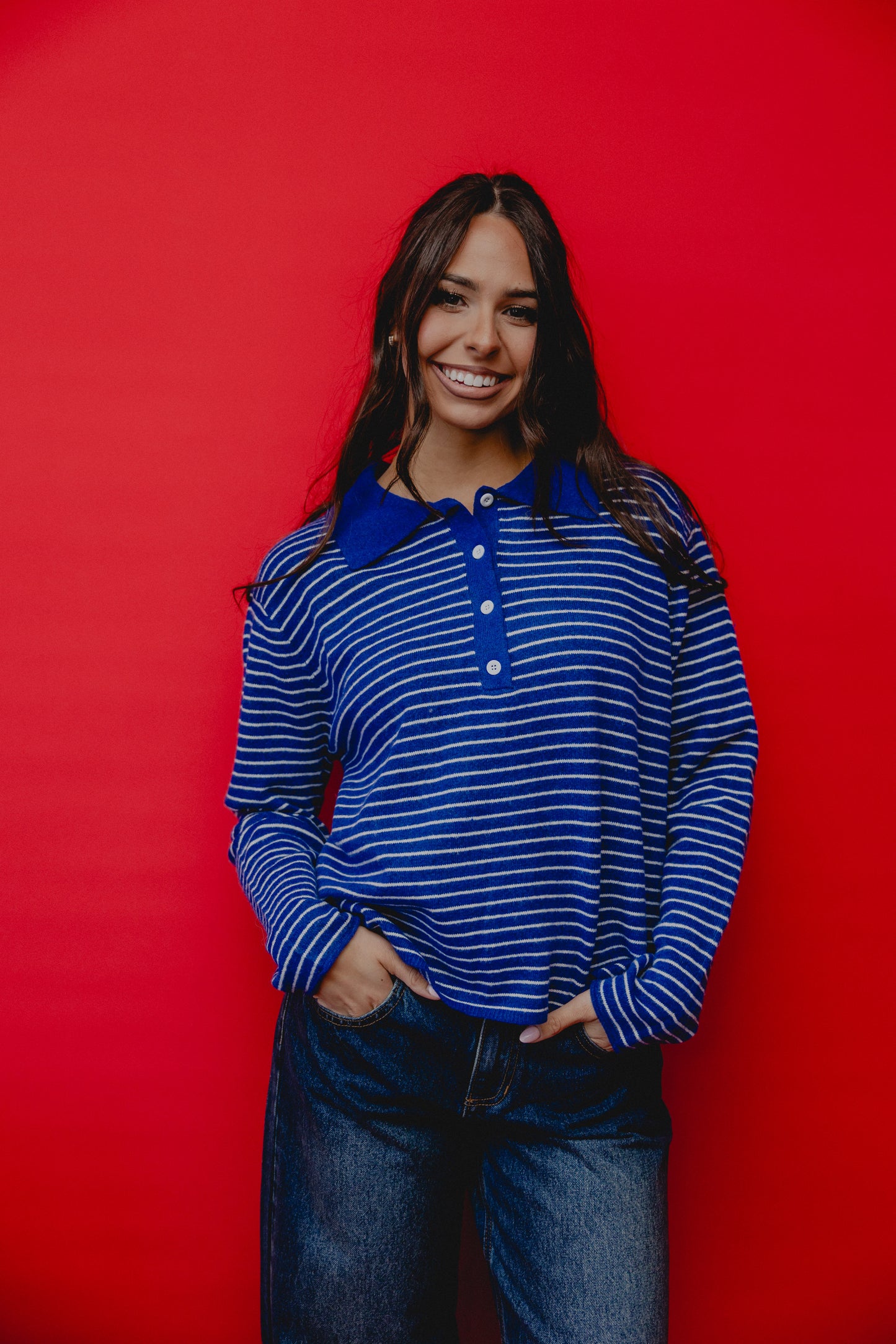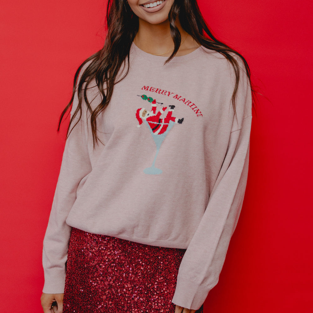 Noelle Stripe Rhinestone Trim Sweater Oat