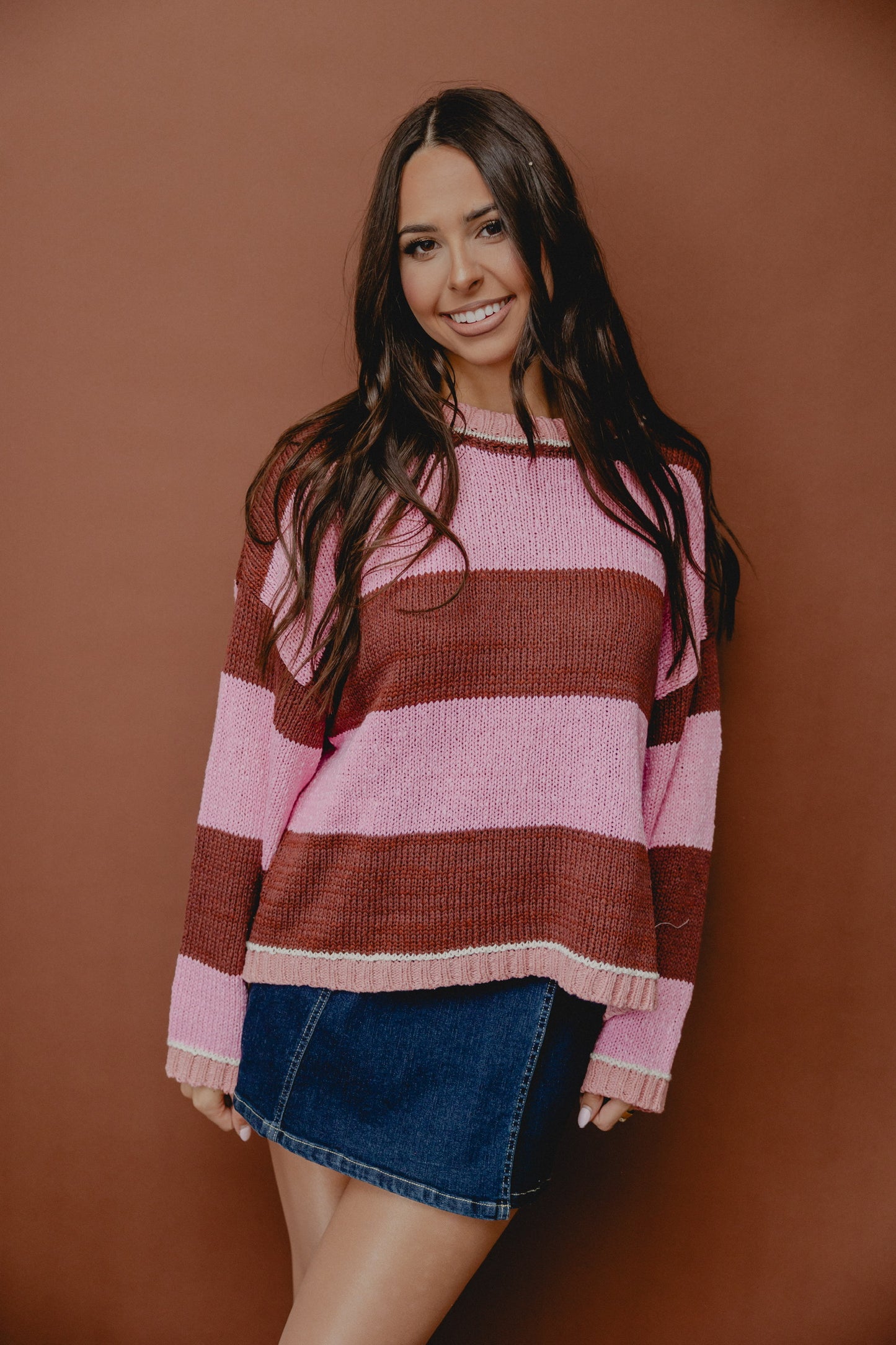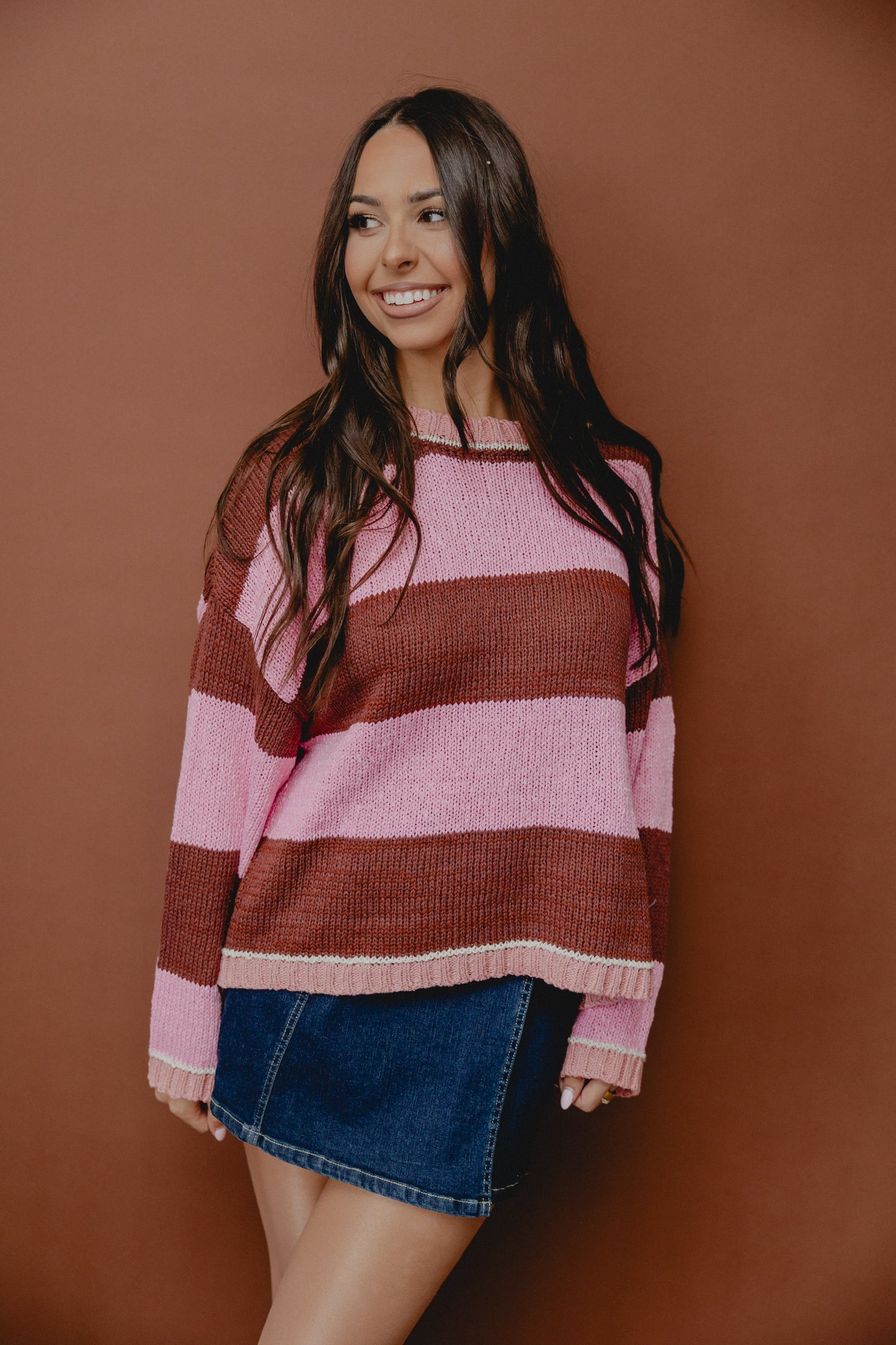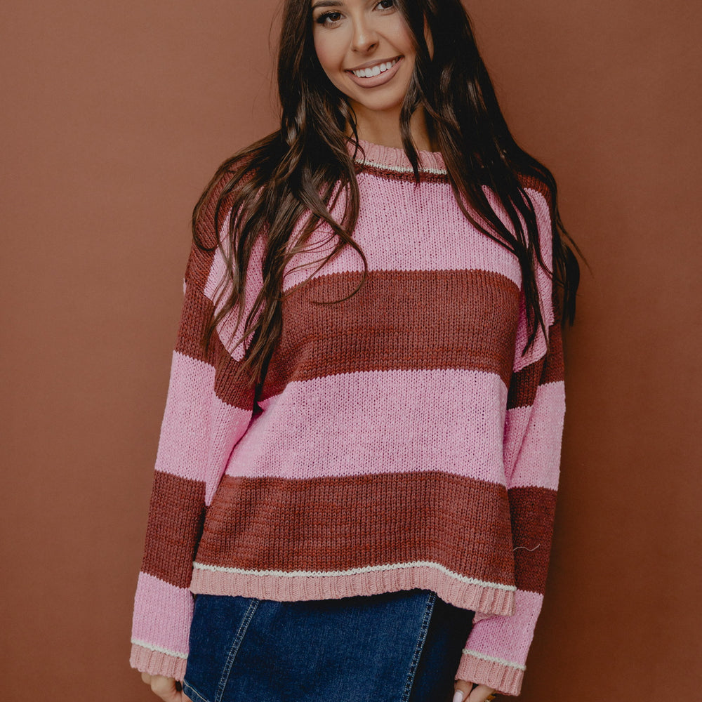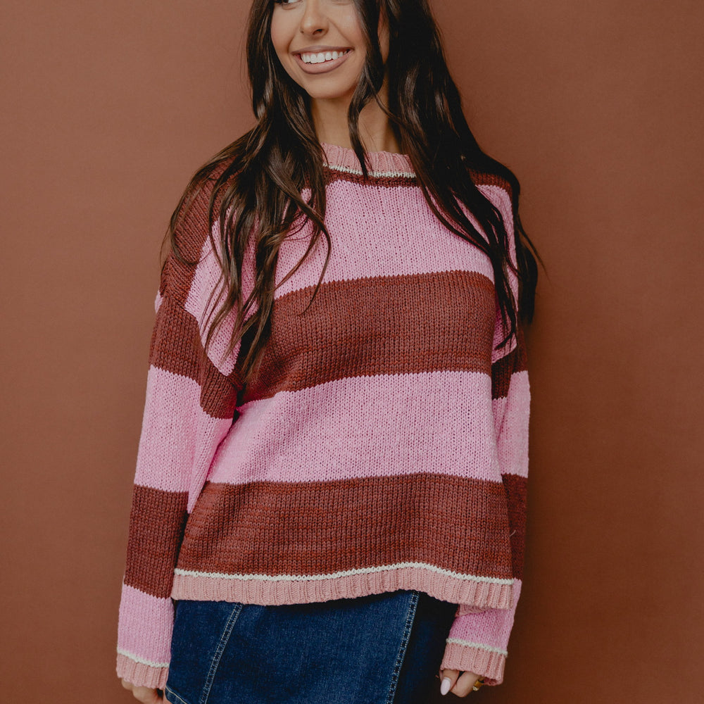 Sugar Cone Stripe Sweater Cocoa/Pink