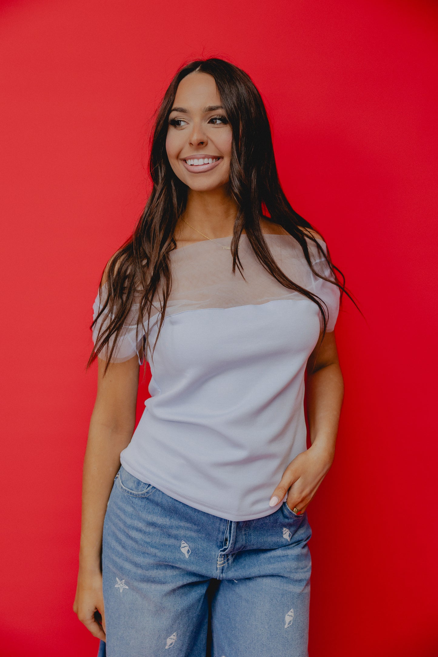 Fifth Dimension Tulle Contrast Tank Baby Blue