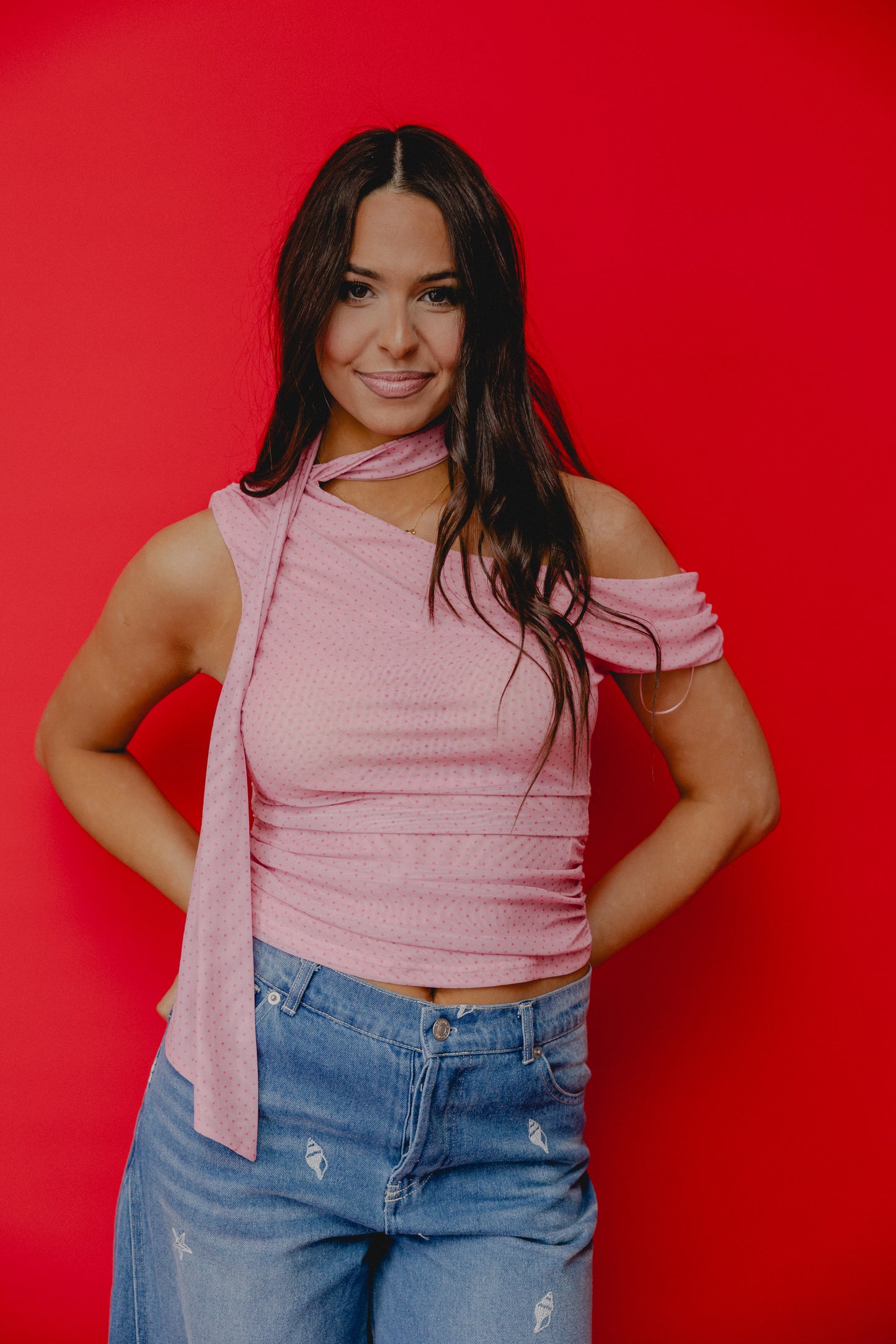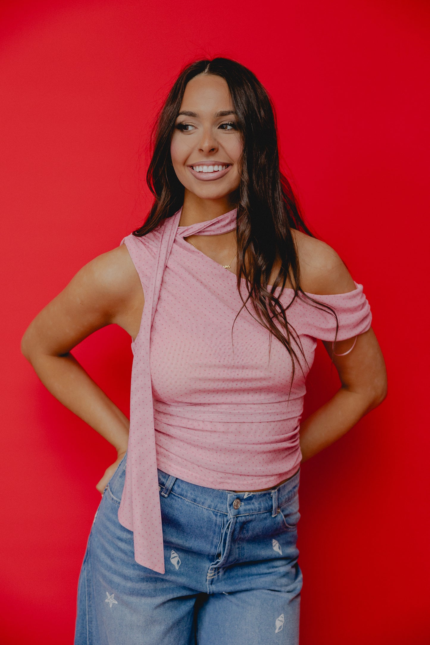 Bobbi Polka Dot Mesh Top + Scarf Pink