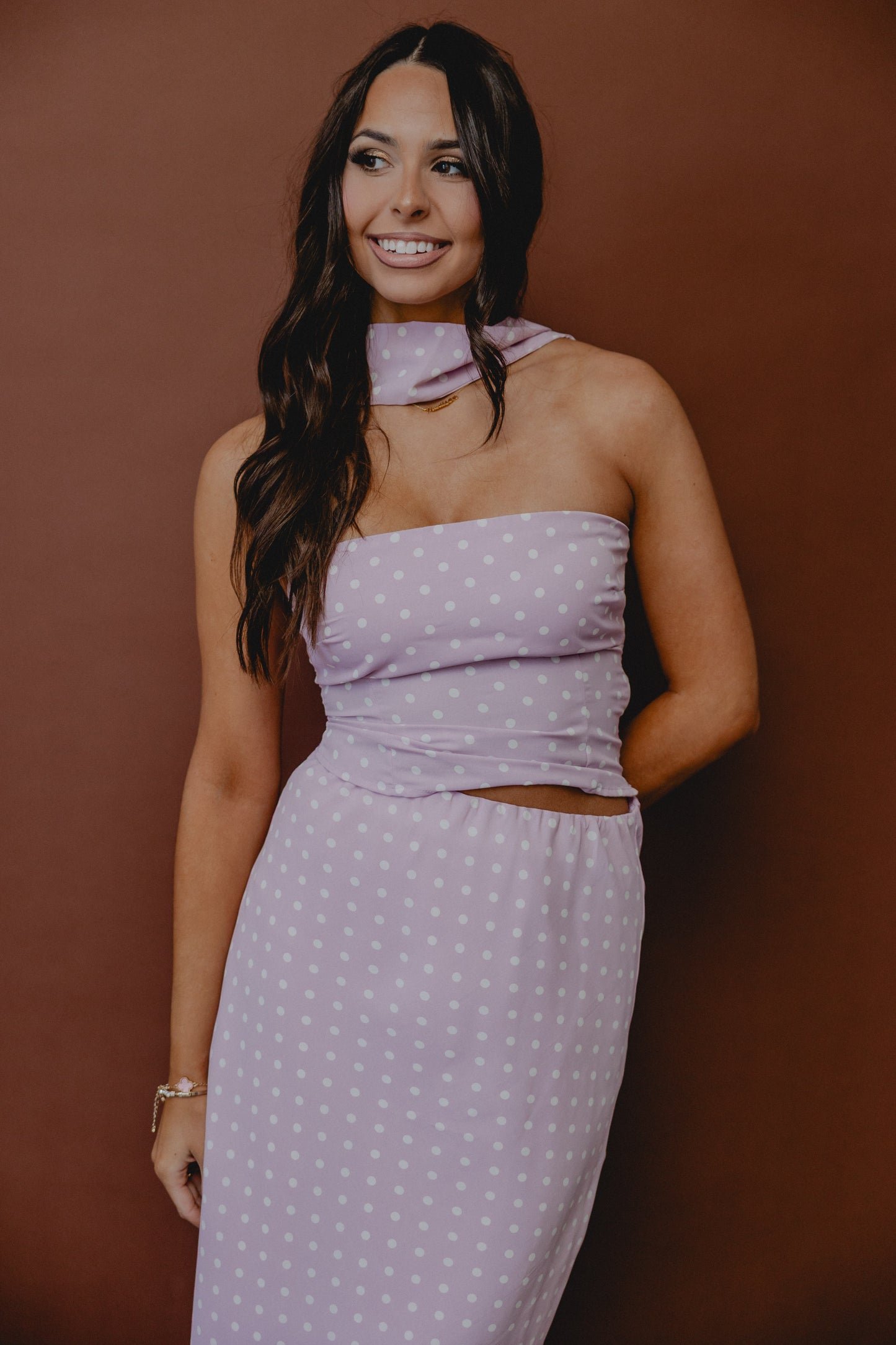 Destination Unknown Polka Dot Satin Top Dusty Lilac