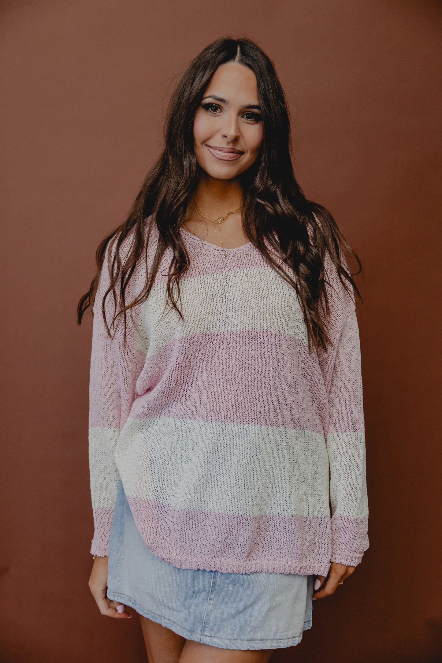 Into The Void Stripe Knit Top Pink Ivory