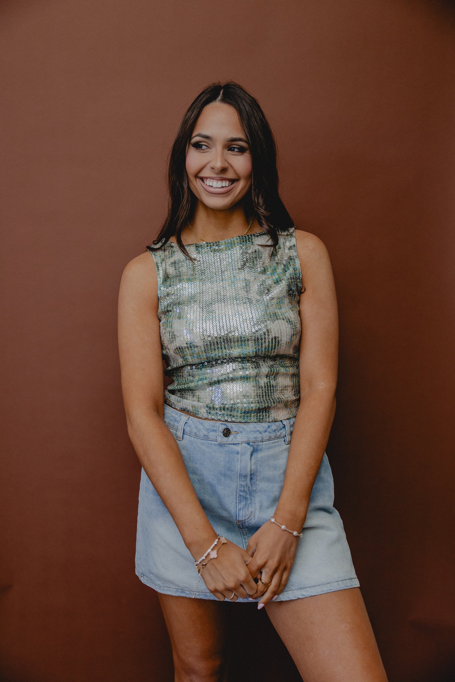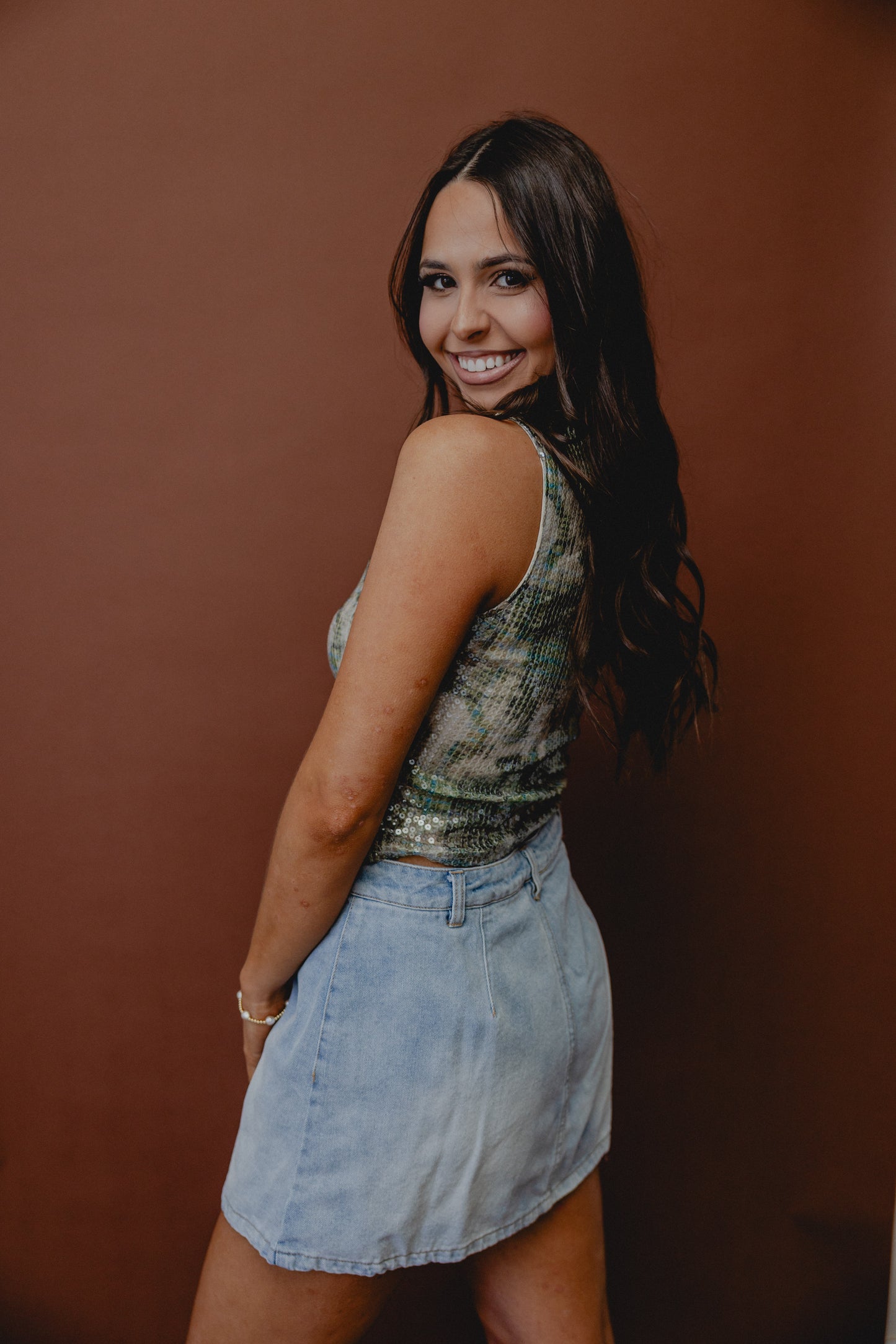 Spellbind Sequin Tank Sage