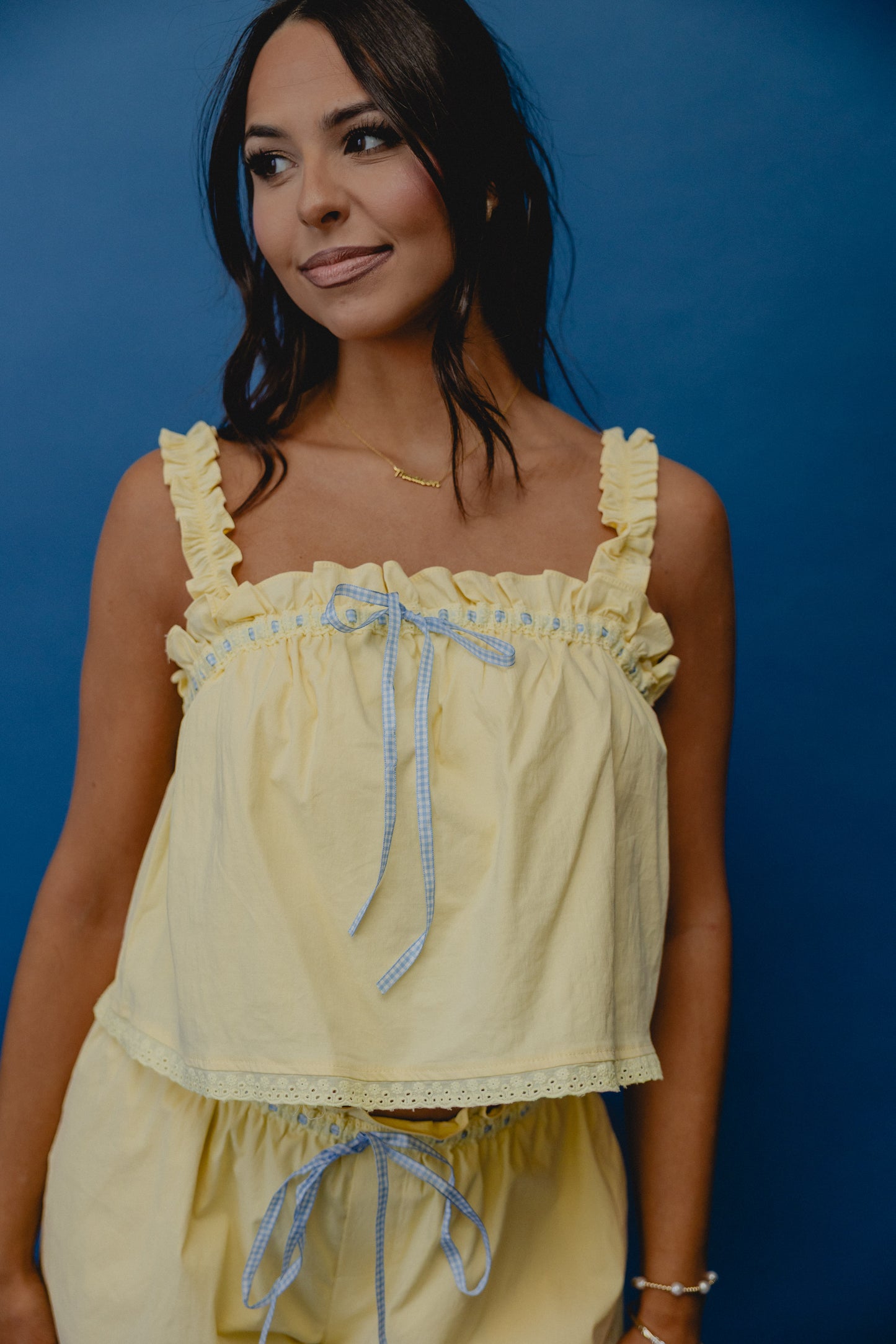 Blue Ridge Gingham Trim Tank Blue