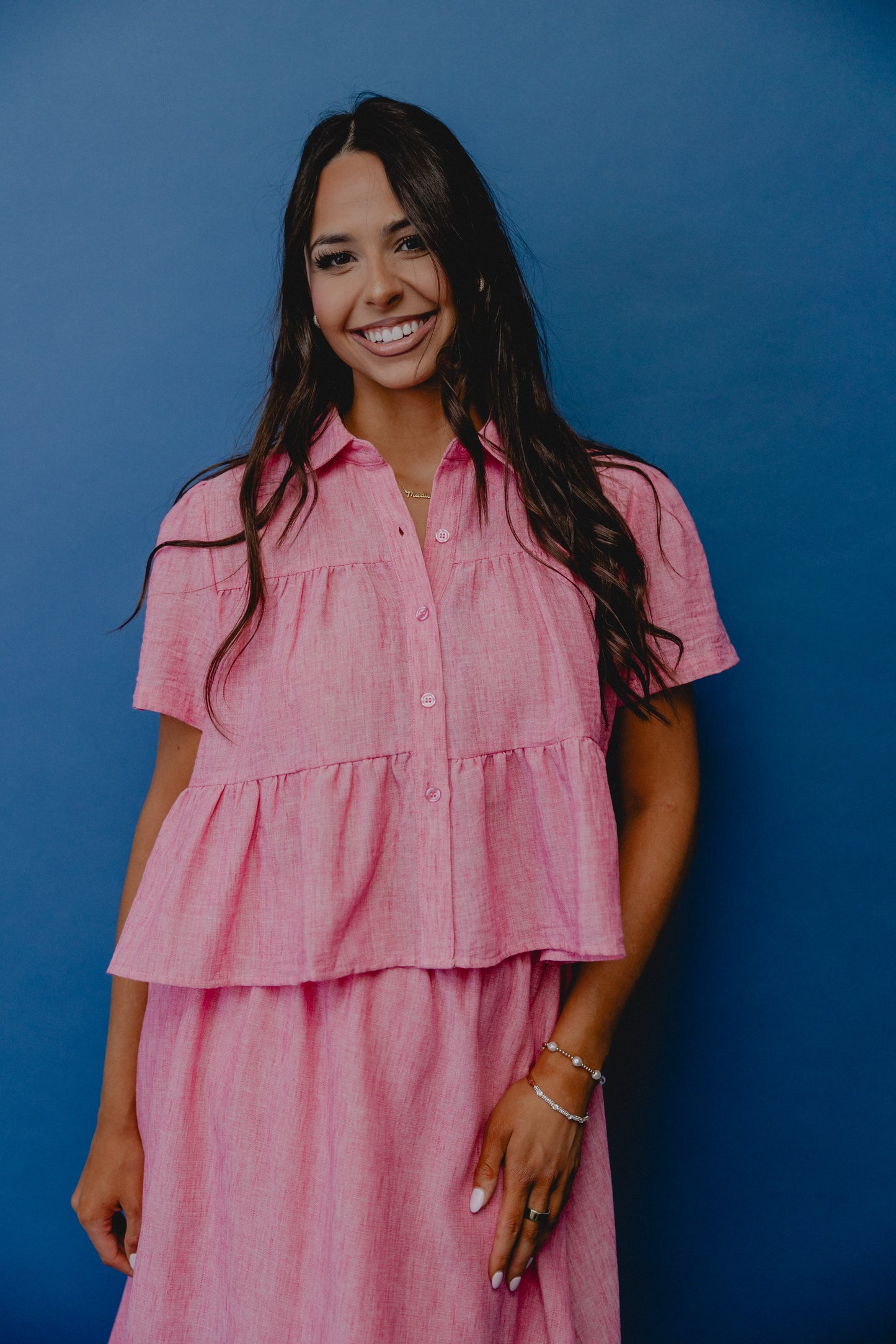 By The Sea Tiered Blouse Pink