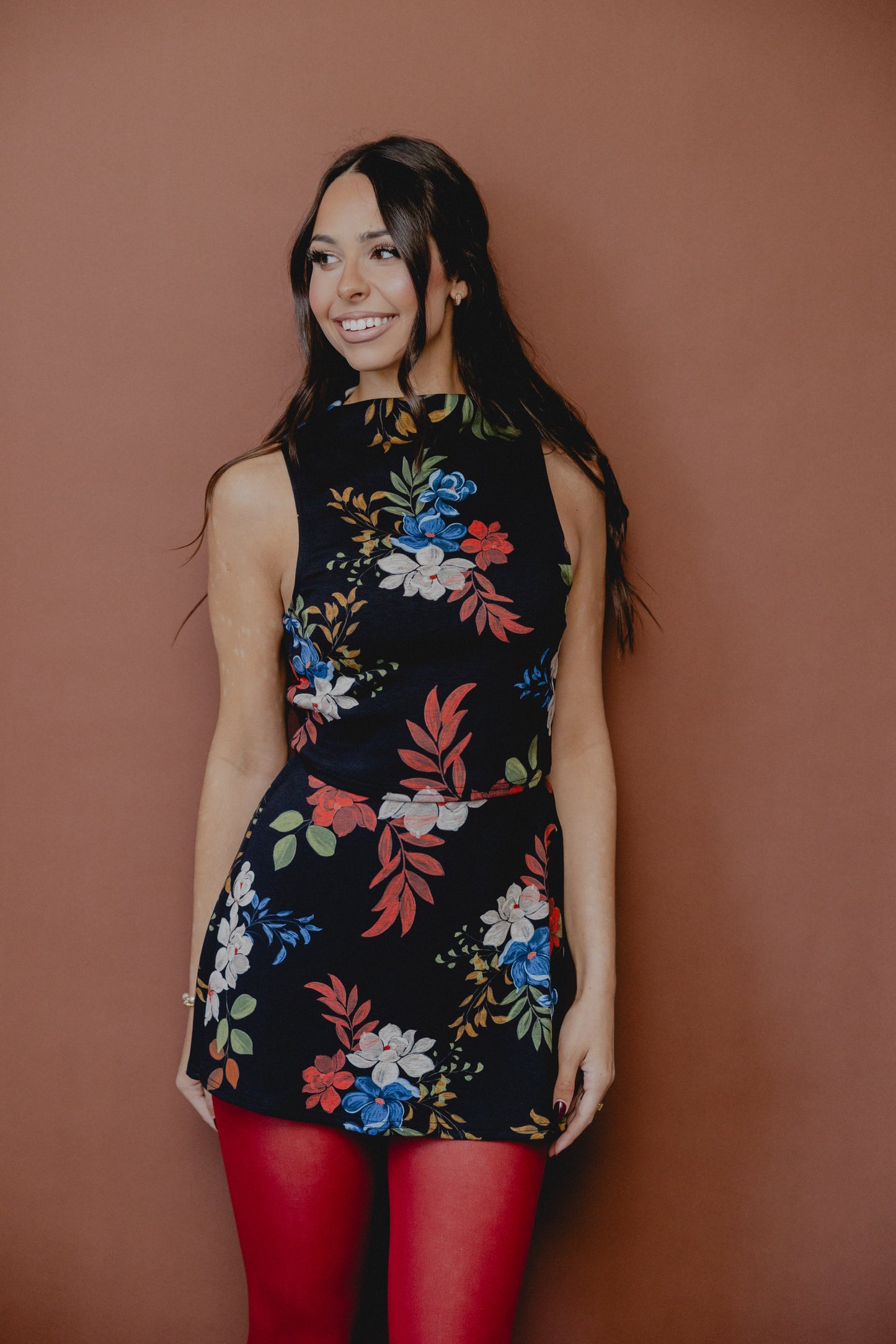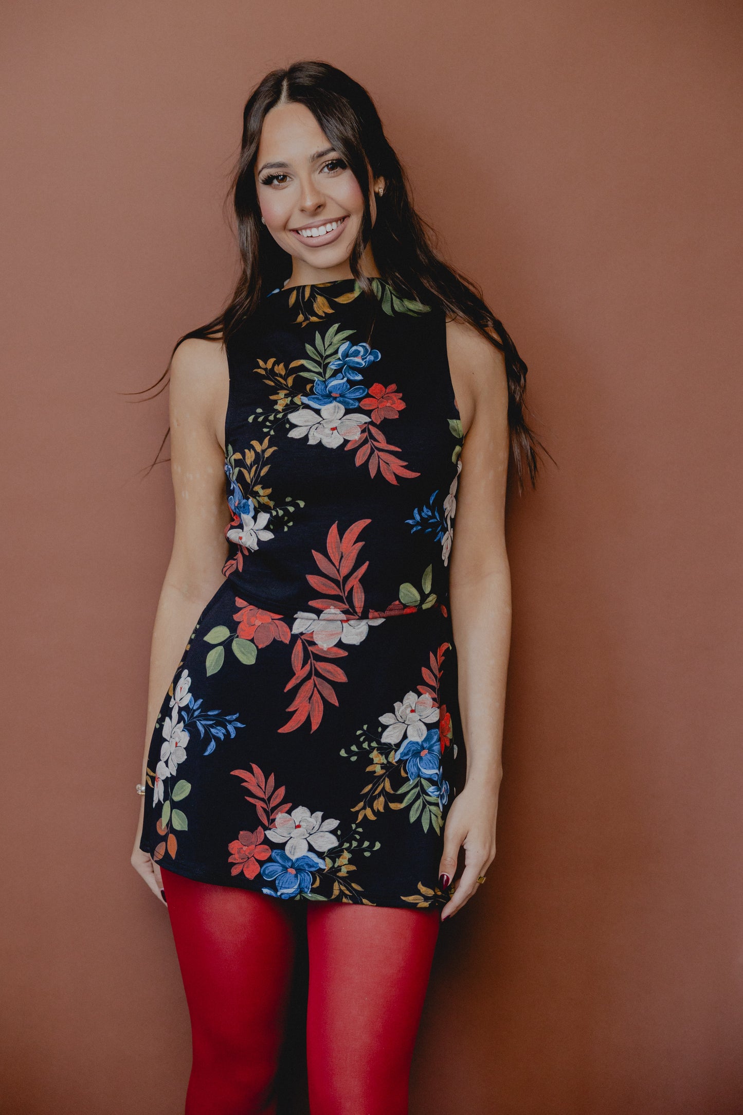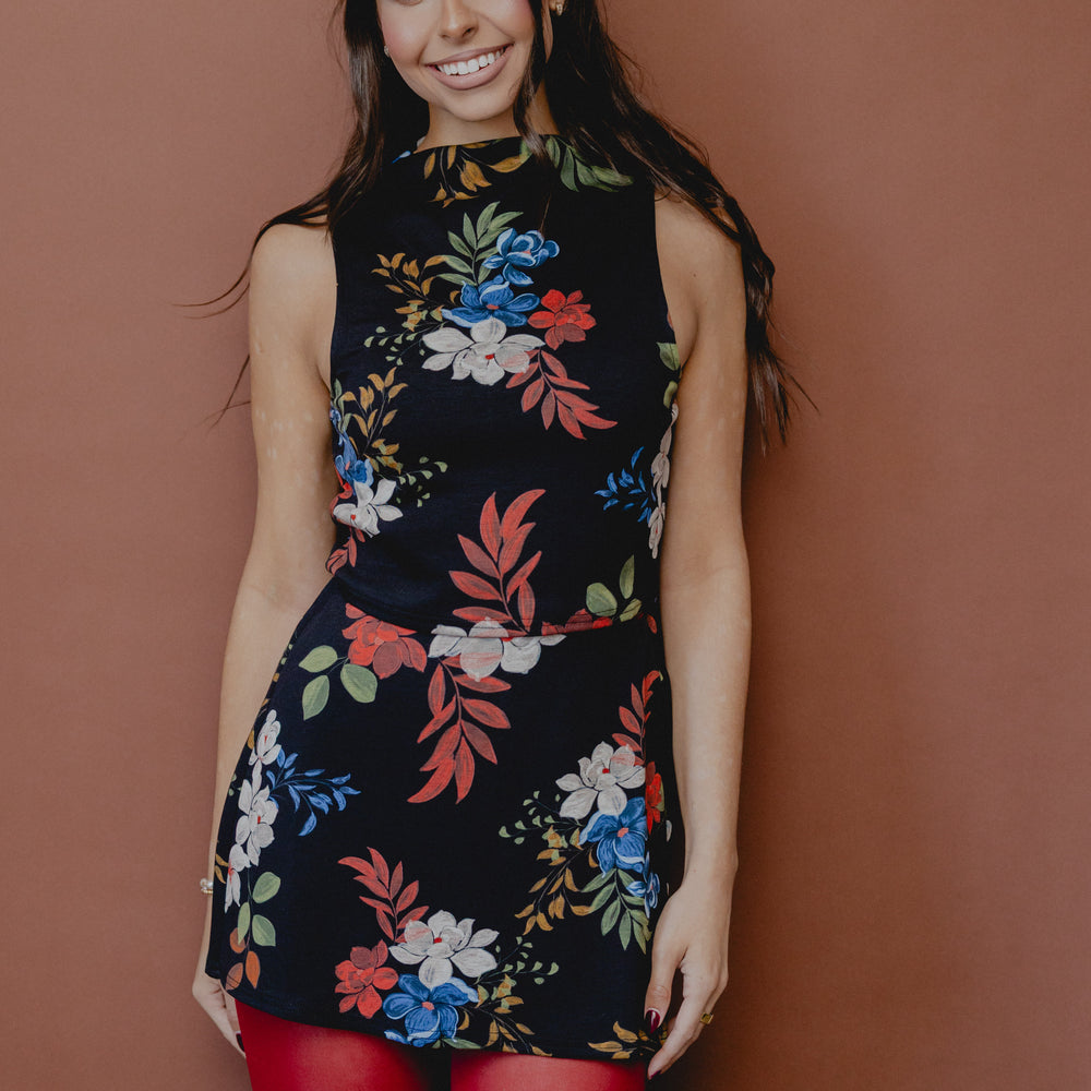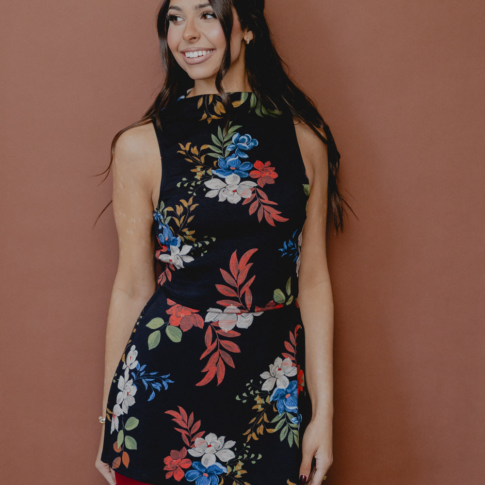 Four Seasons Floral Crop Tank Black Multi